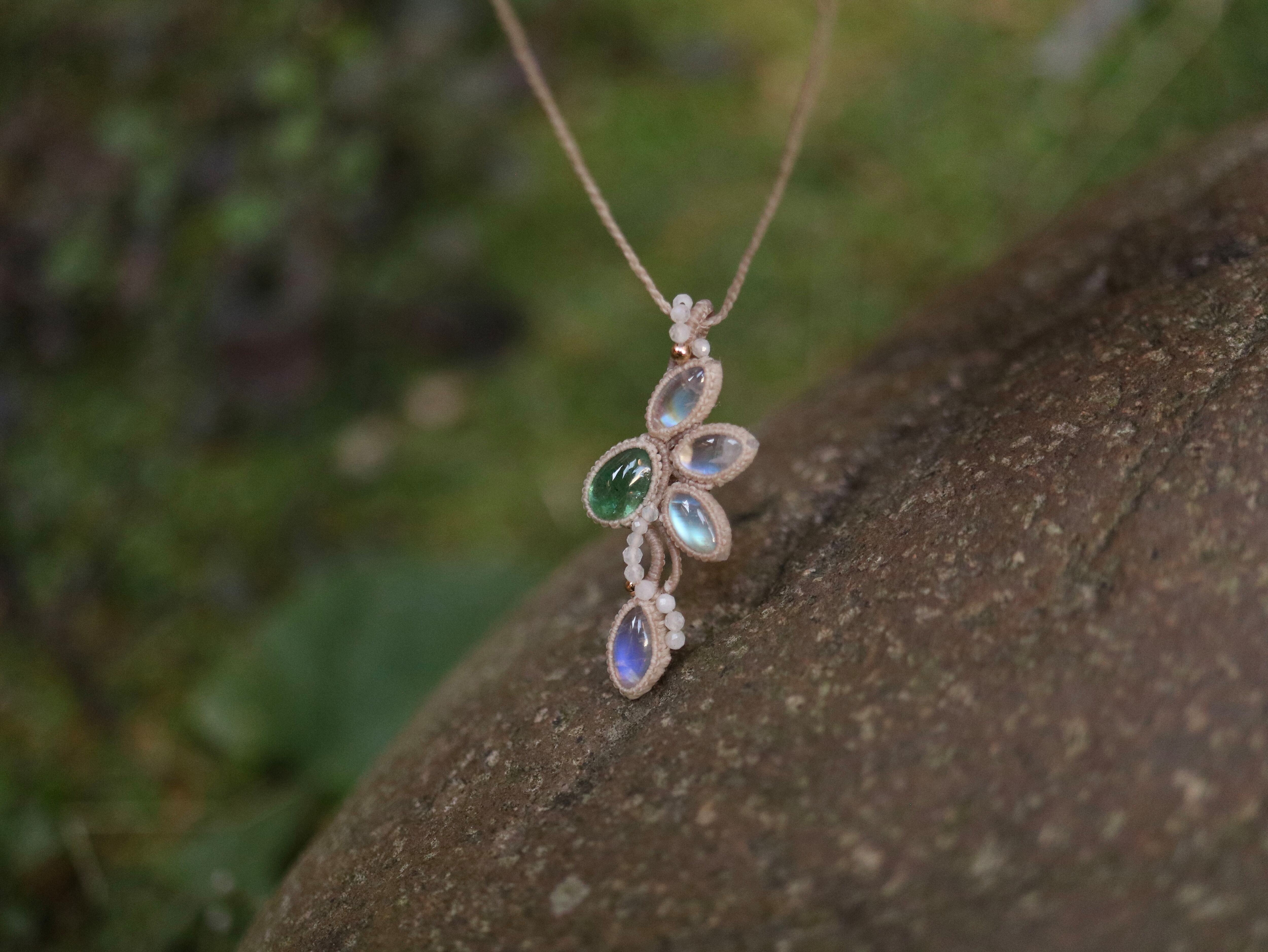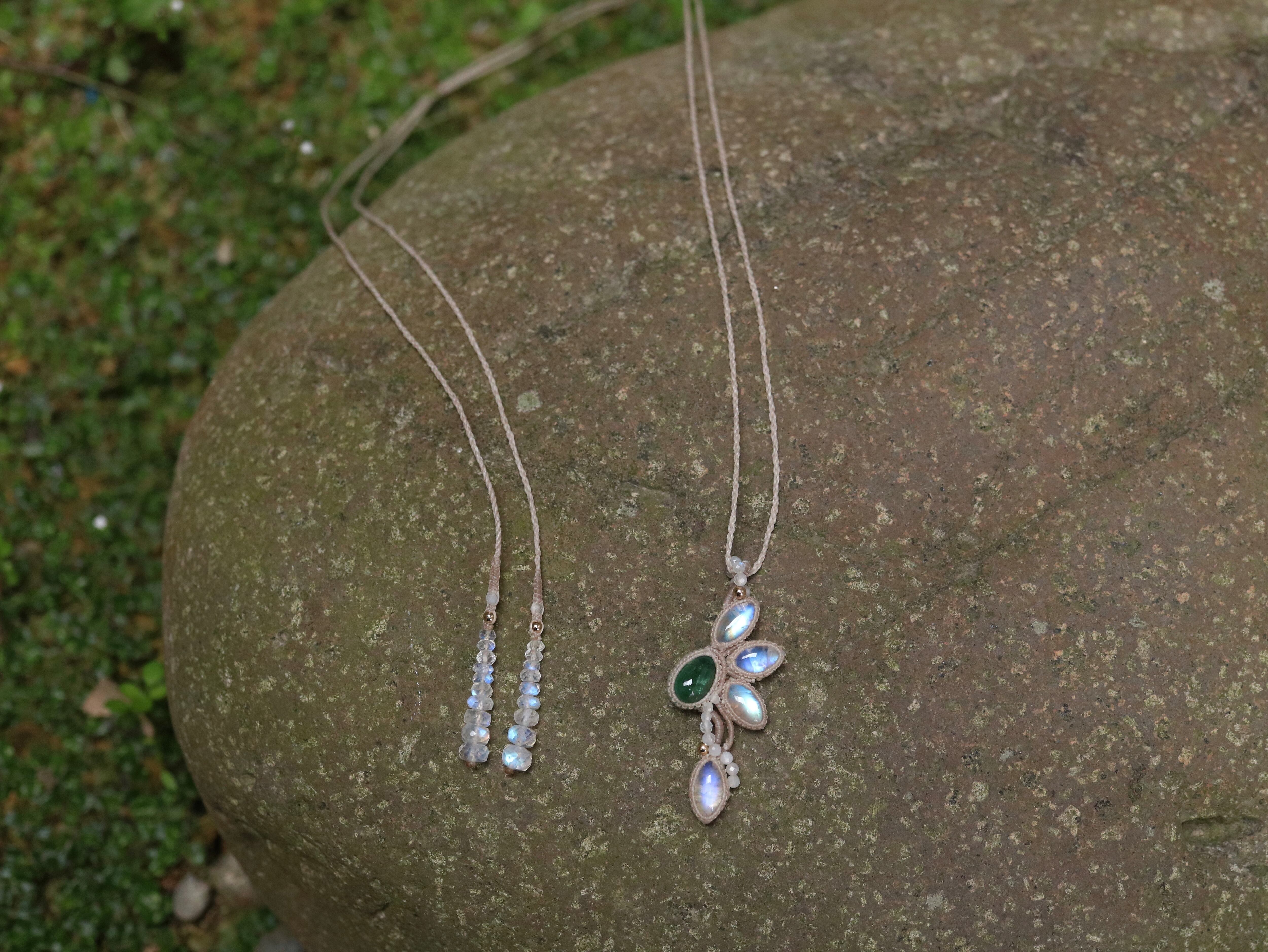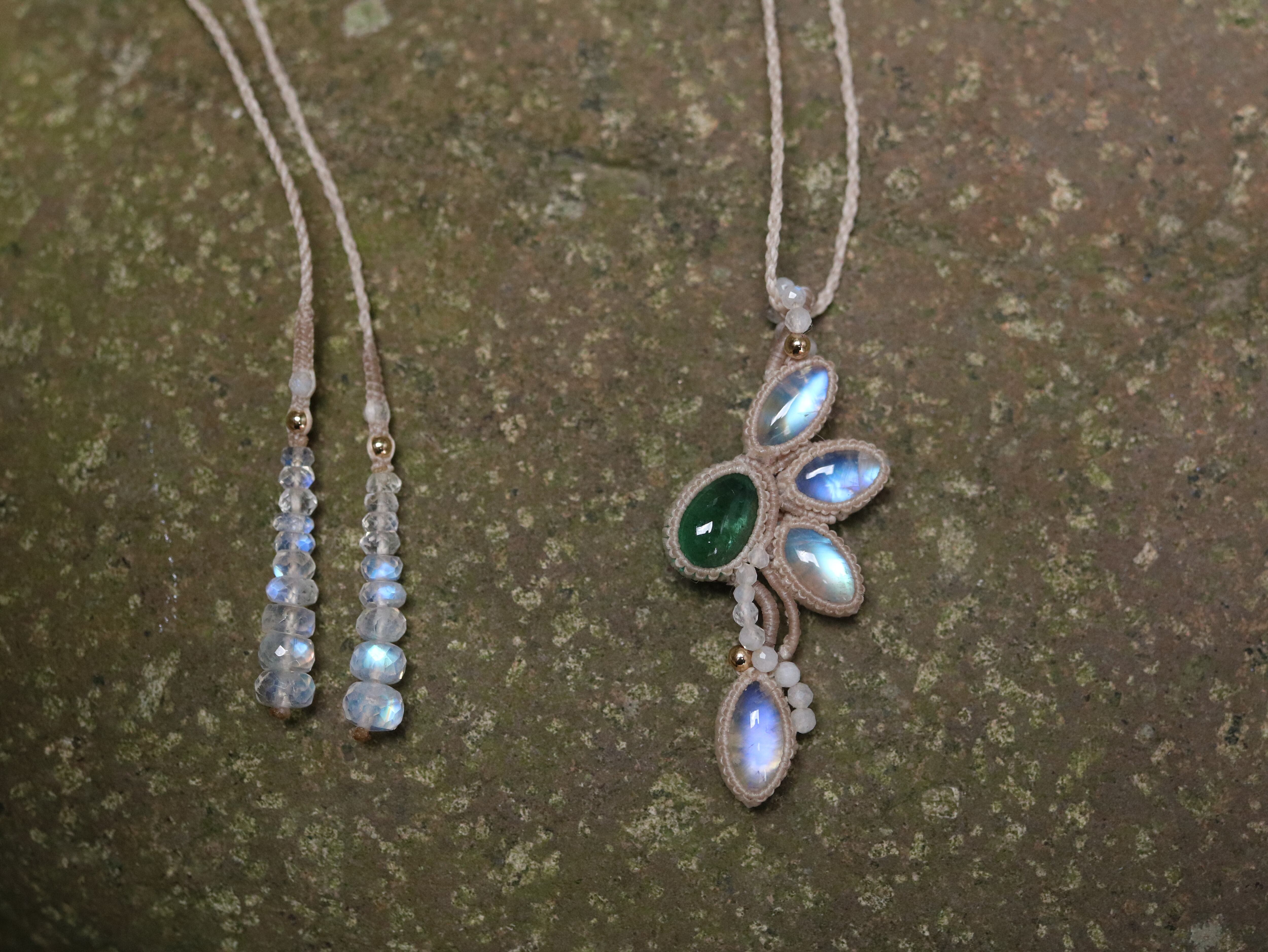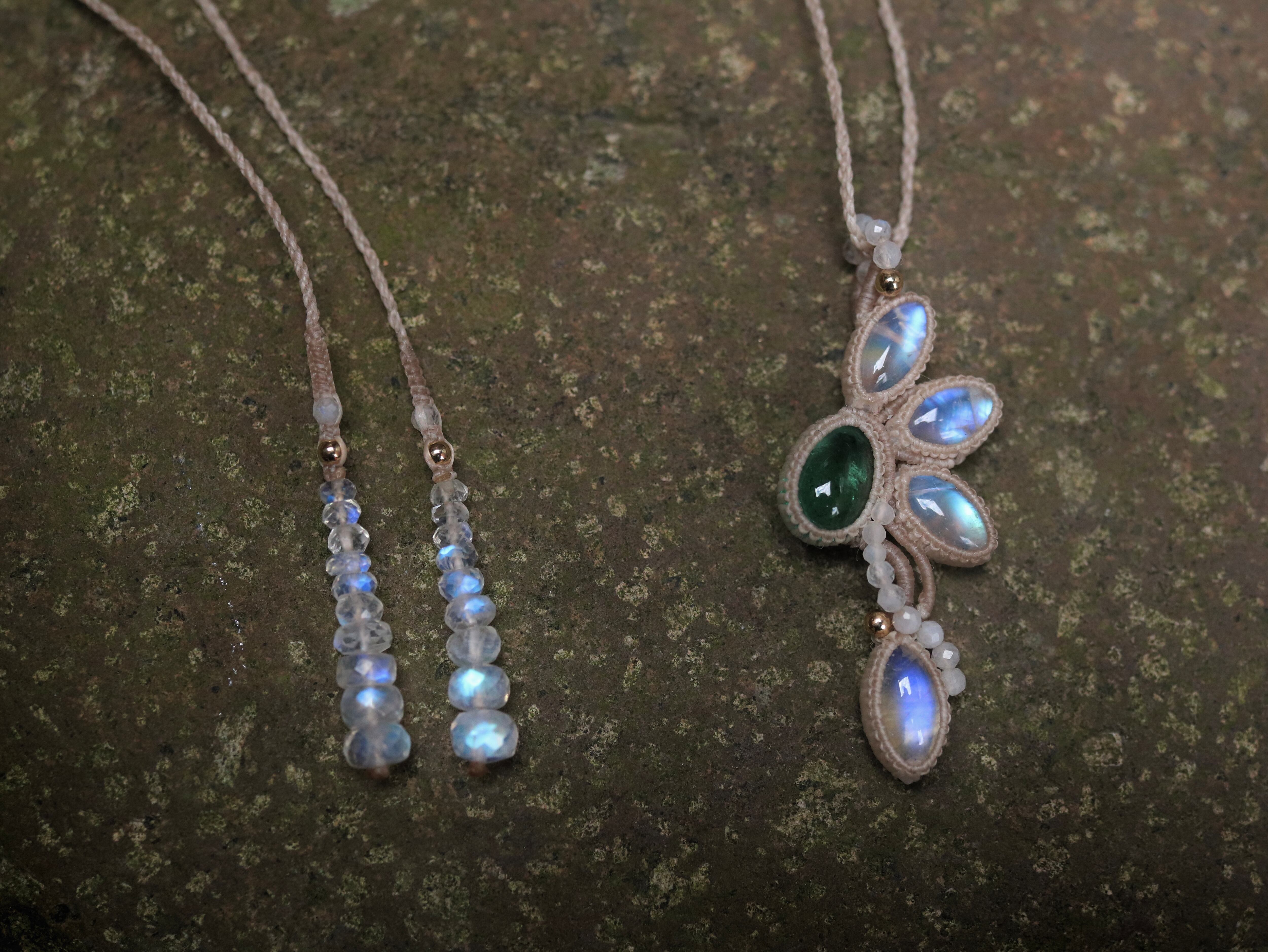 レインボームーンストーン × エメラルド ペンダント