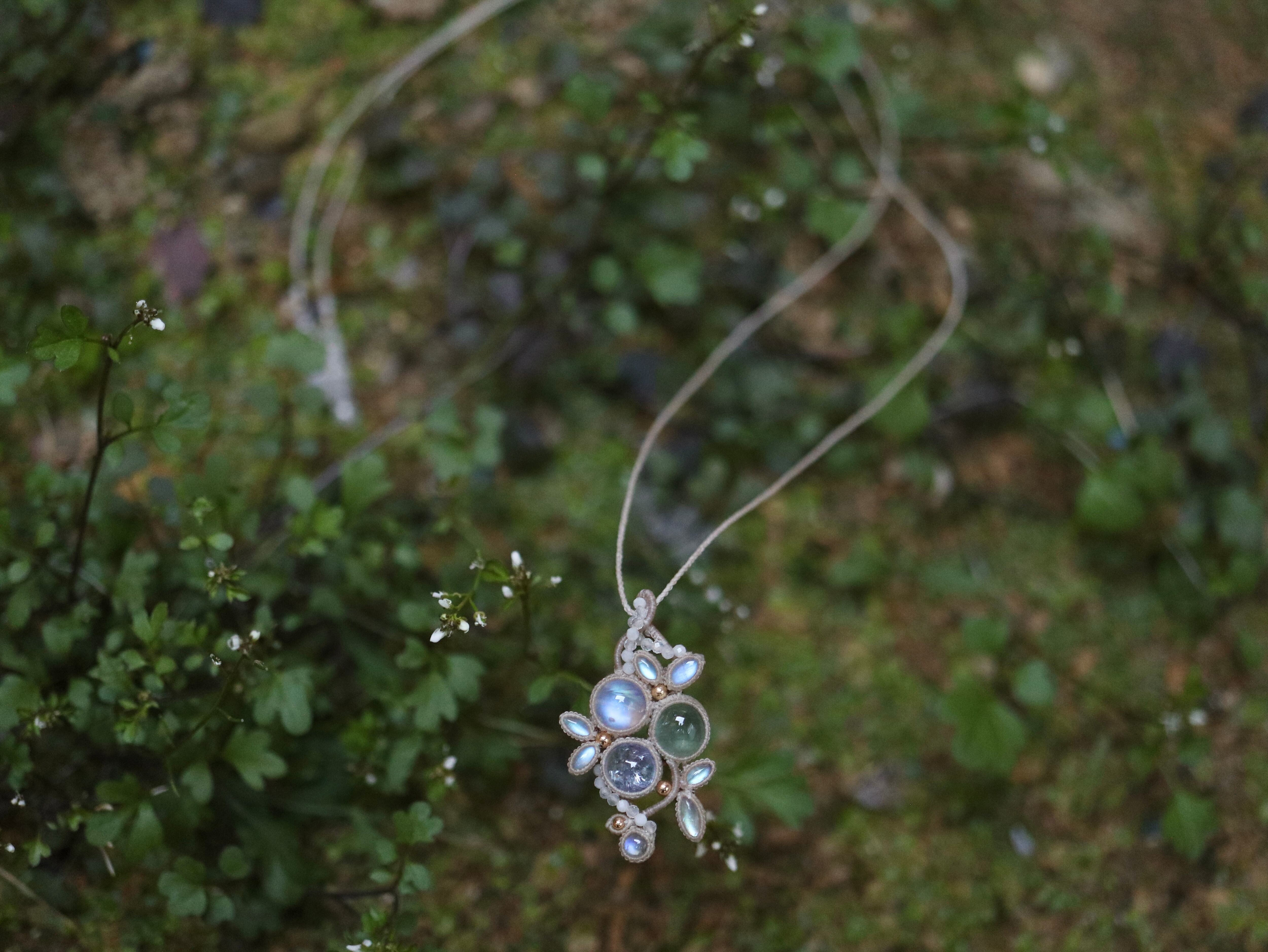 レインボームーンストーンを葉っぱの様にあしらいました