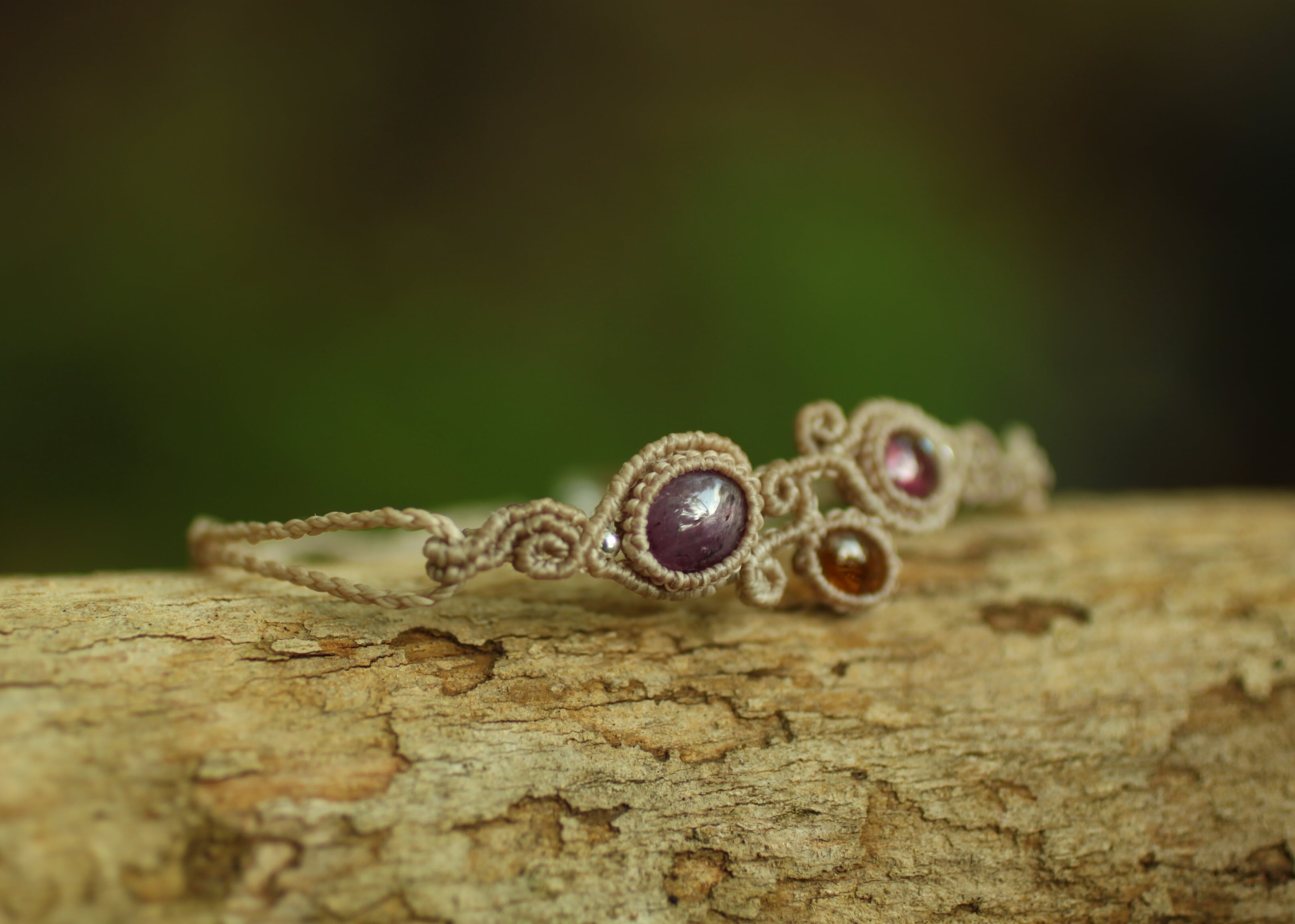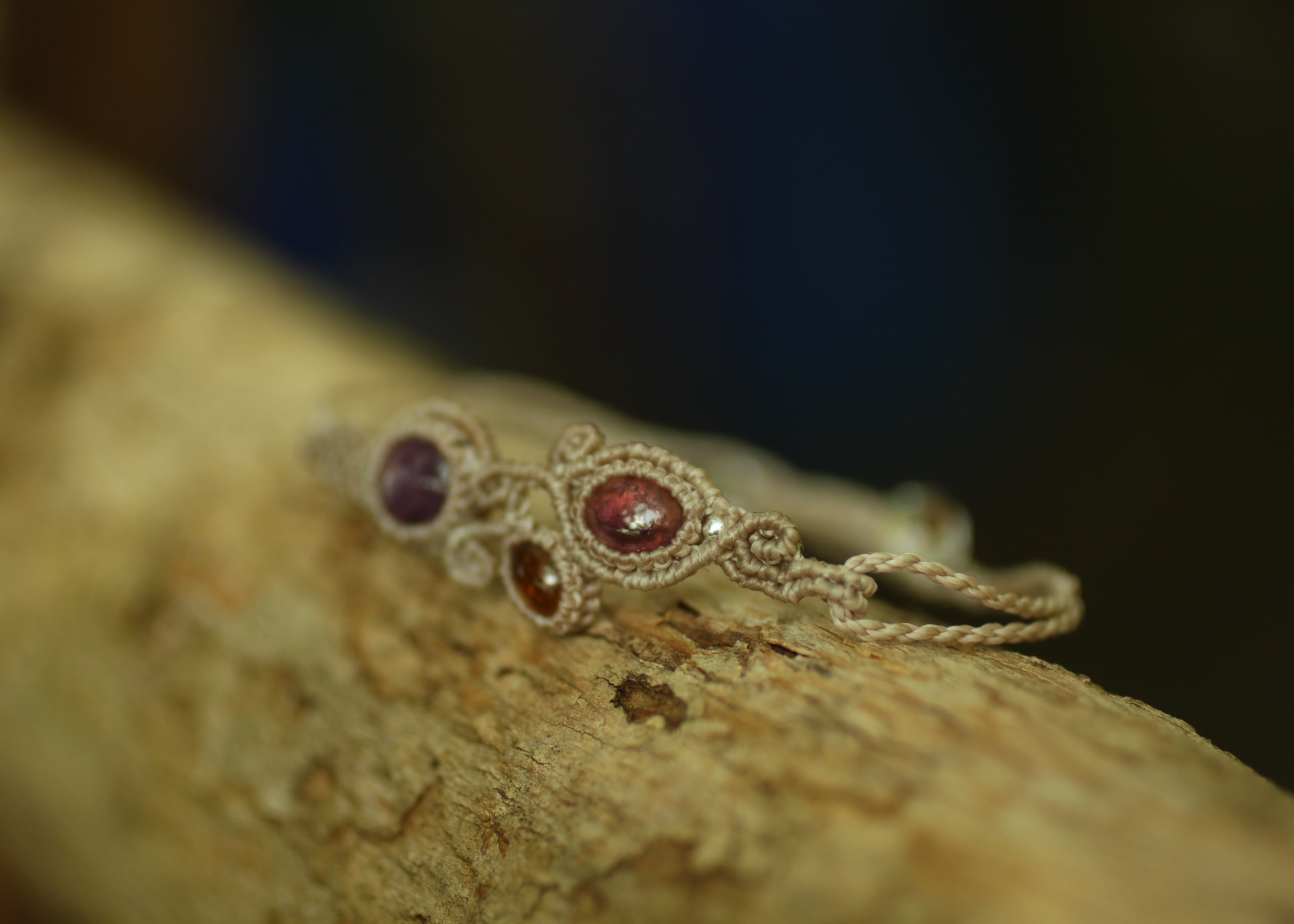 ※ 全ての天然石を包むマクラメ編みのコードは、手縫い糸ほどの細いコードを使い出来る限り天然石の表情を引き立たせる事を重視し時間をかけ丁寧に包みました。