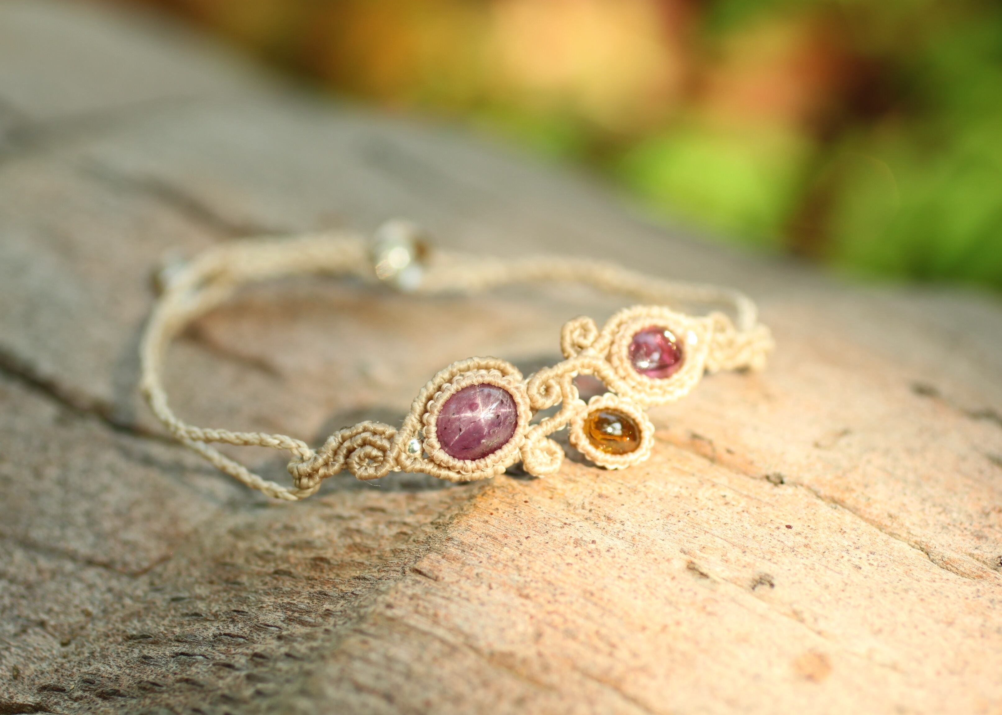 スタールビー × ピンク・イエロー トルマリン ブレスレット