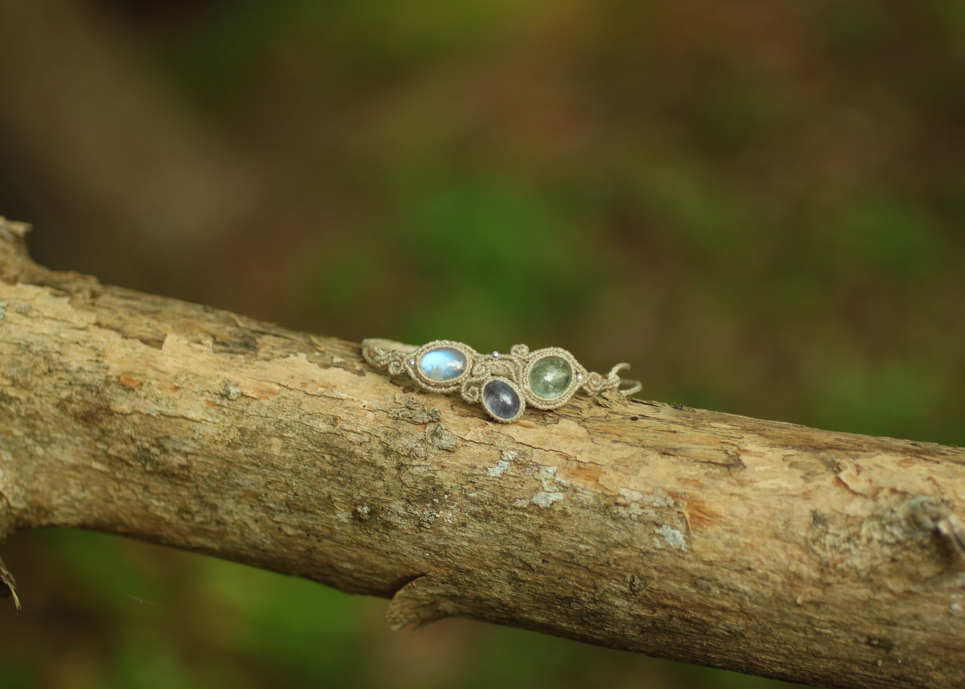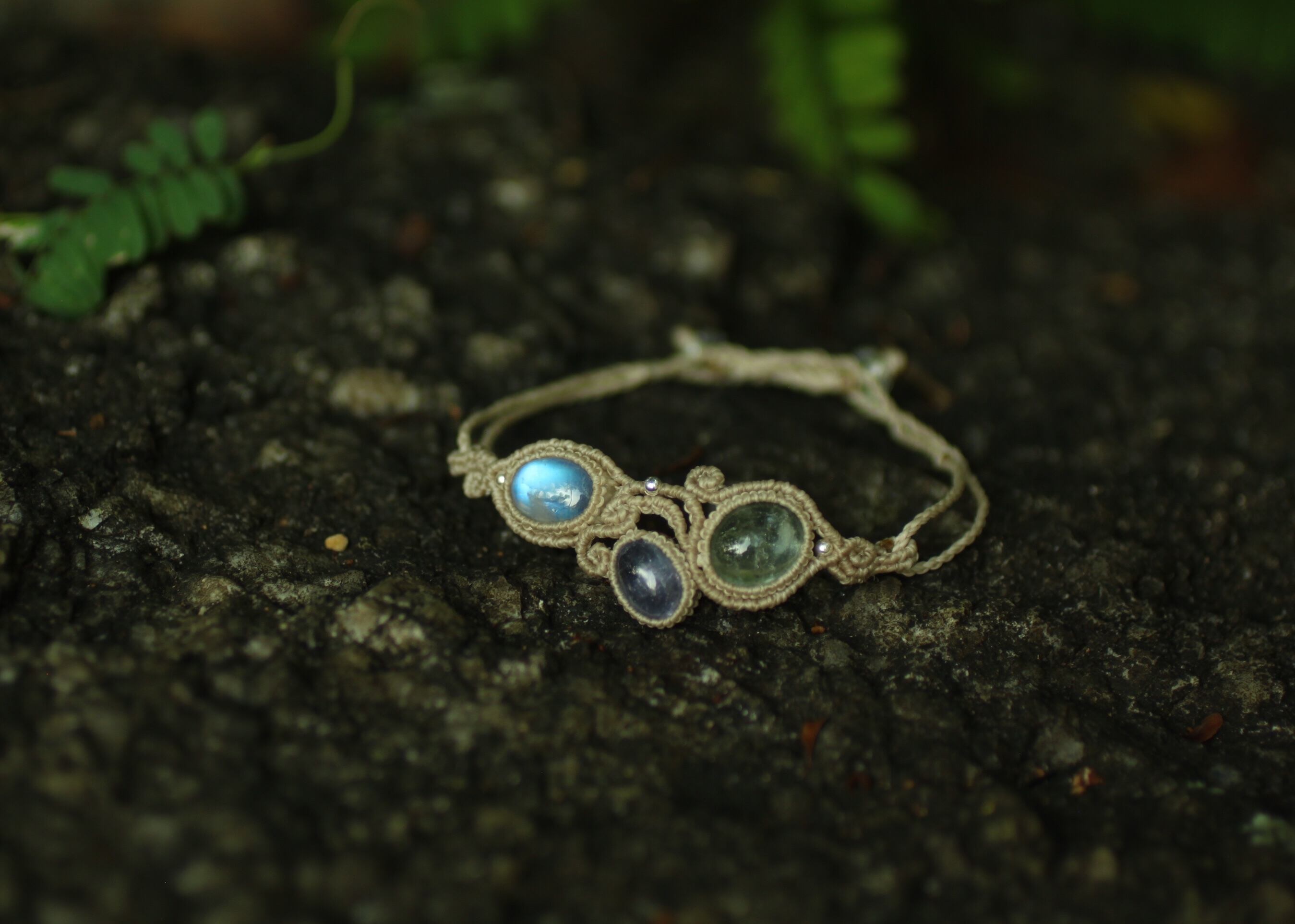 ※ 全ての天然石を包むマクラメ編みのコードは、手縫い糸ほどの細いコードを使い出来る限り天然石の表情を引き立たせる事を重視し時間をかけ丁寧に包みました。