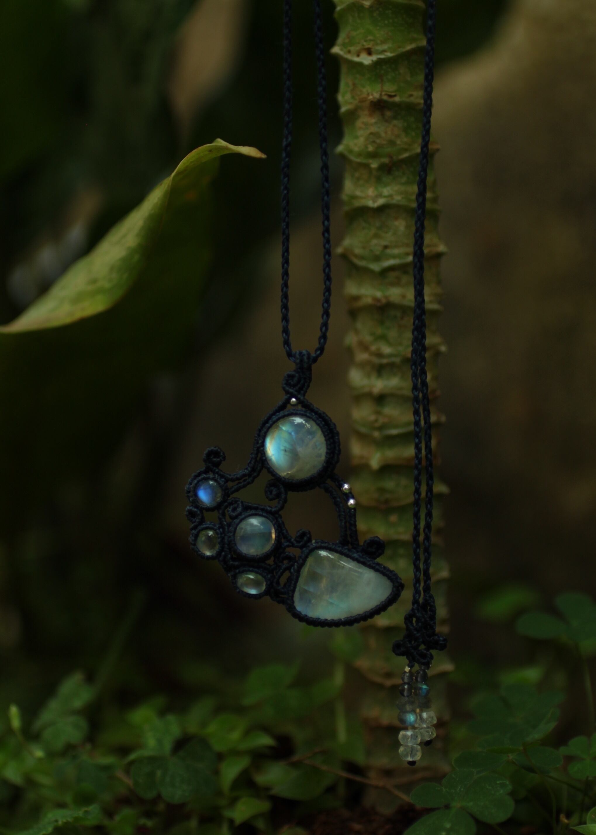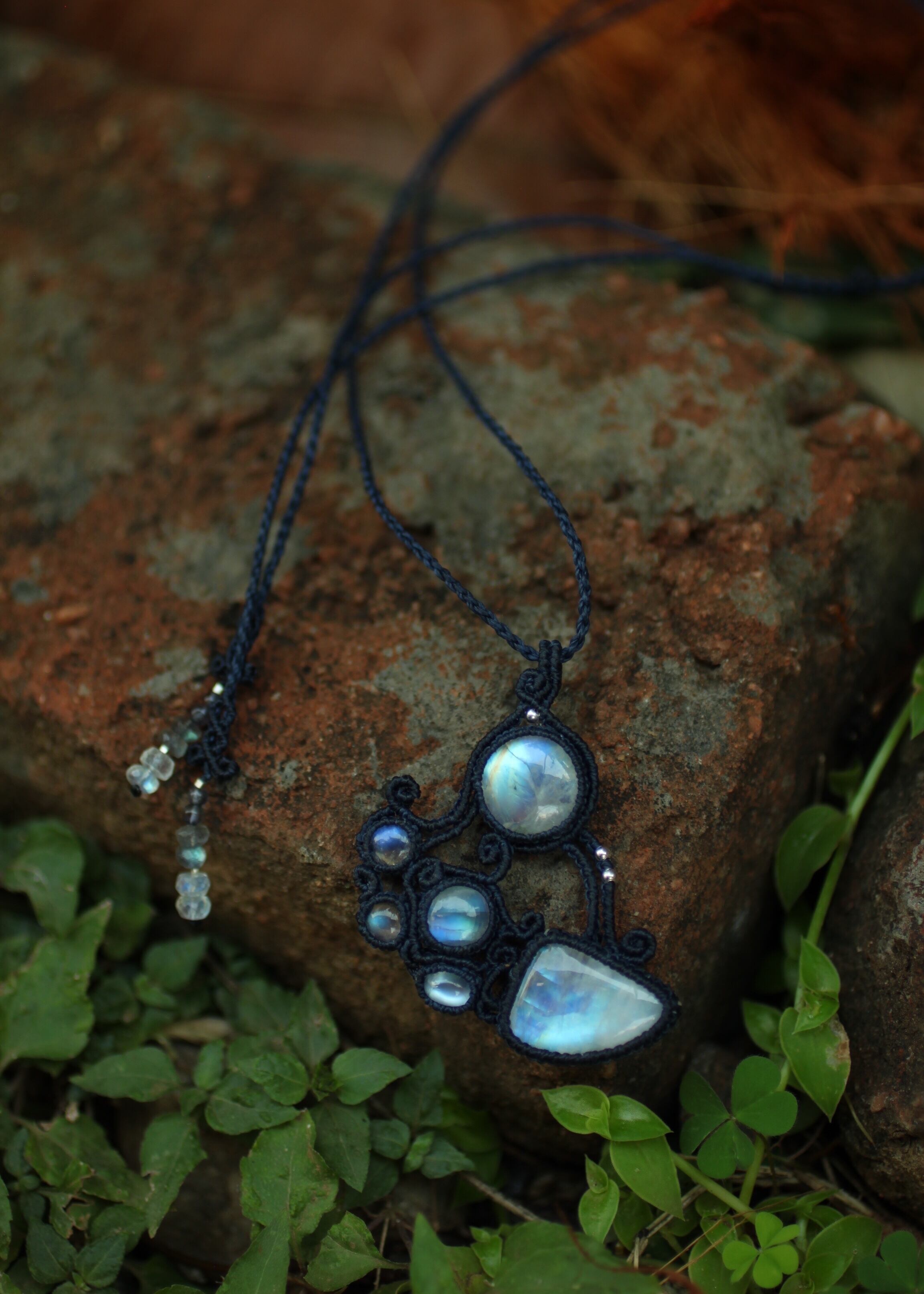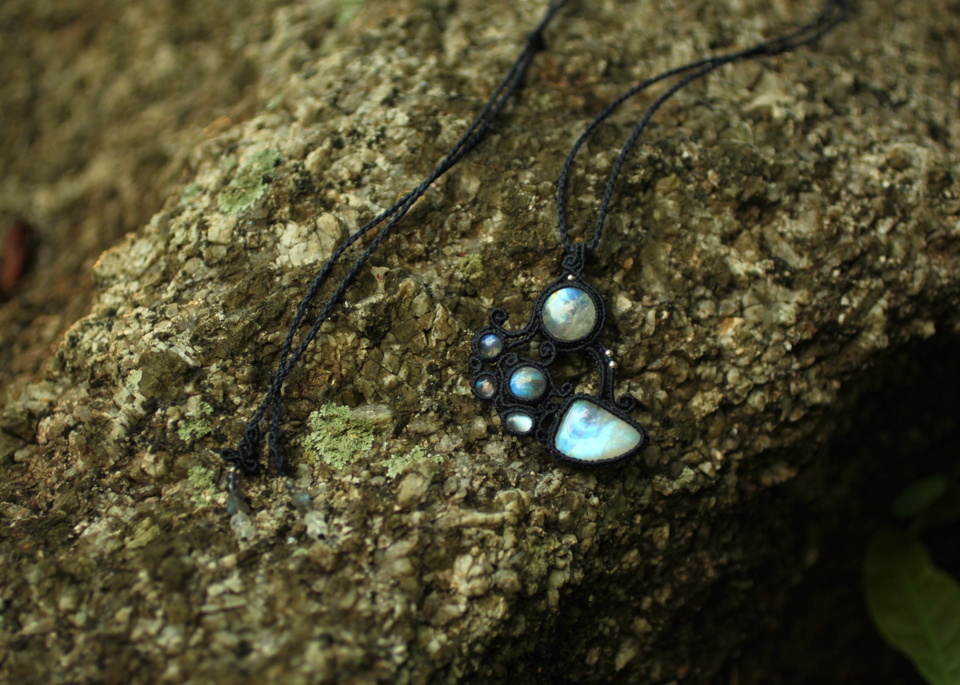 三角のムーンストーンの上部、三日月の足りない部分を丸い石で補い、