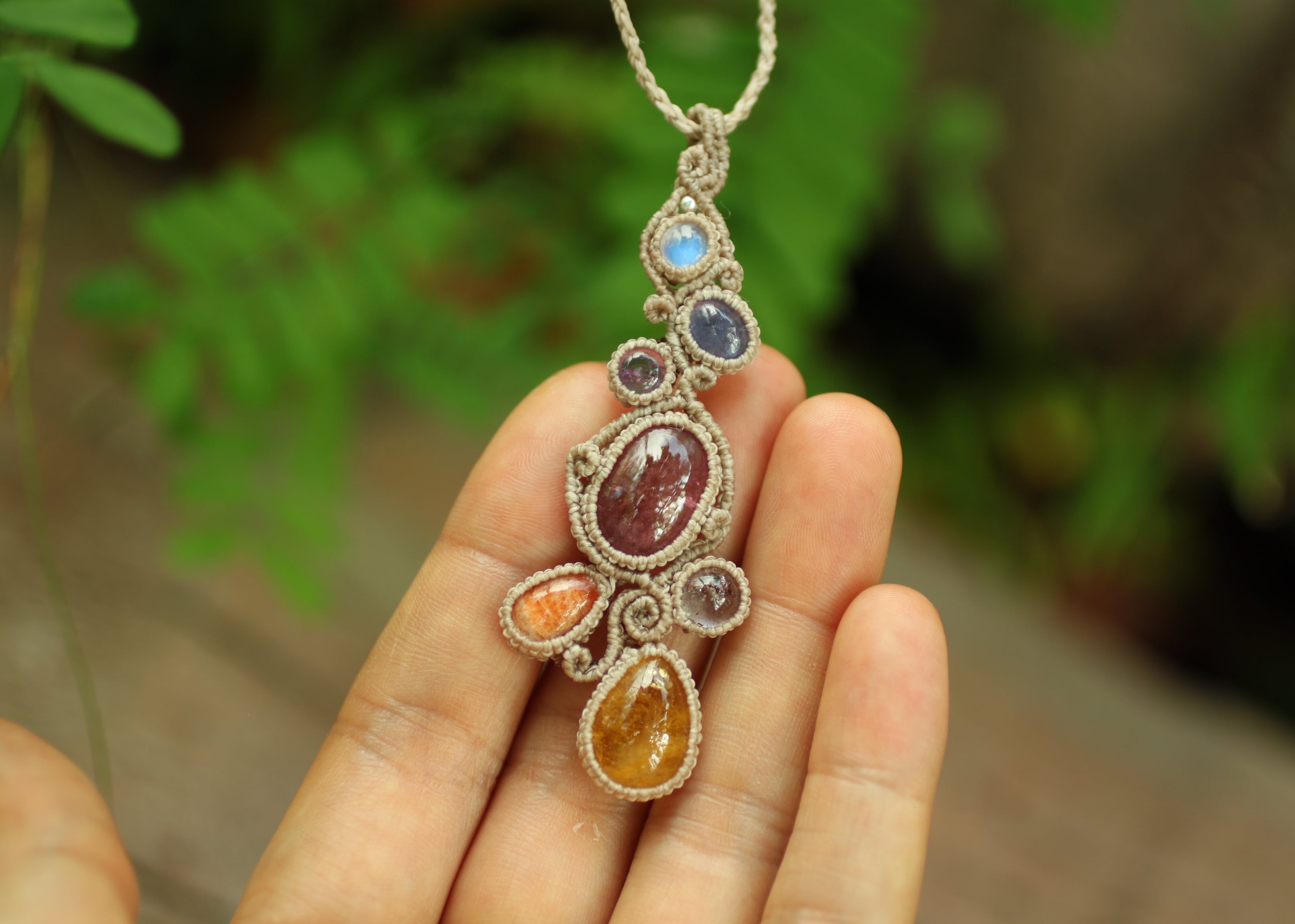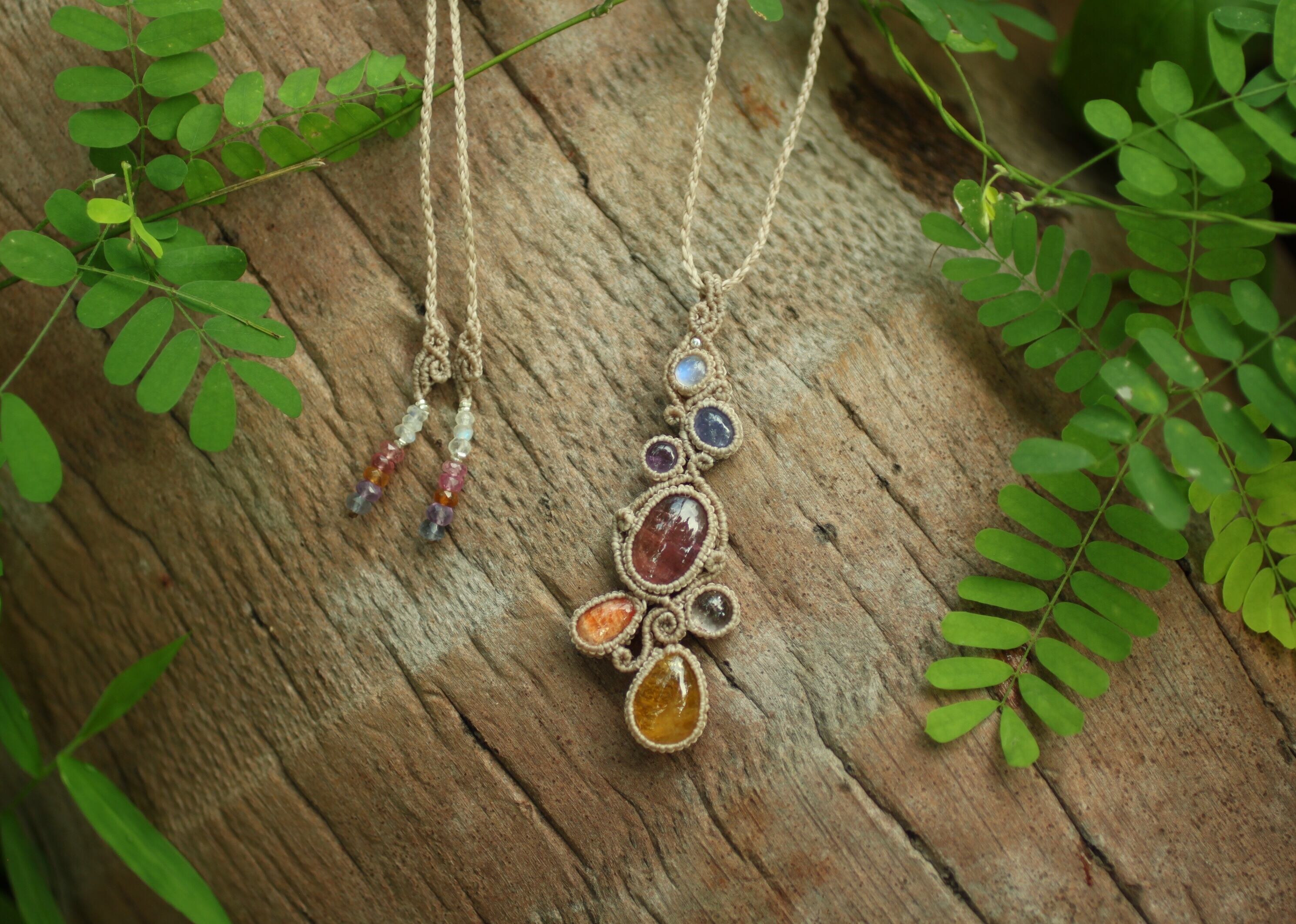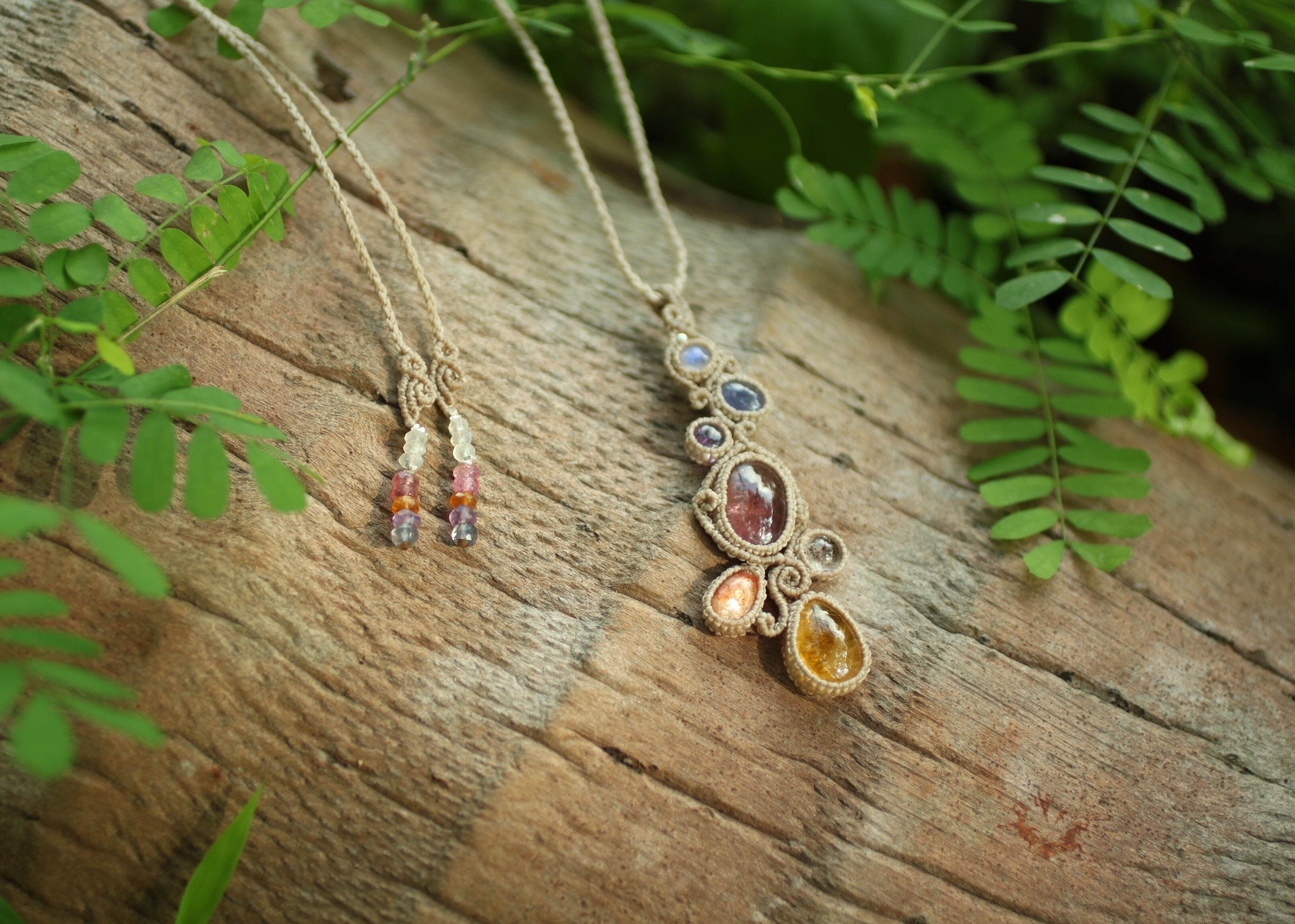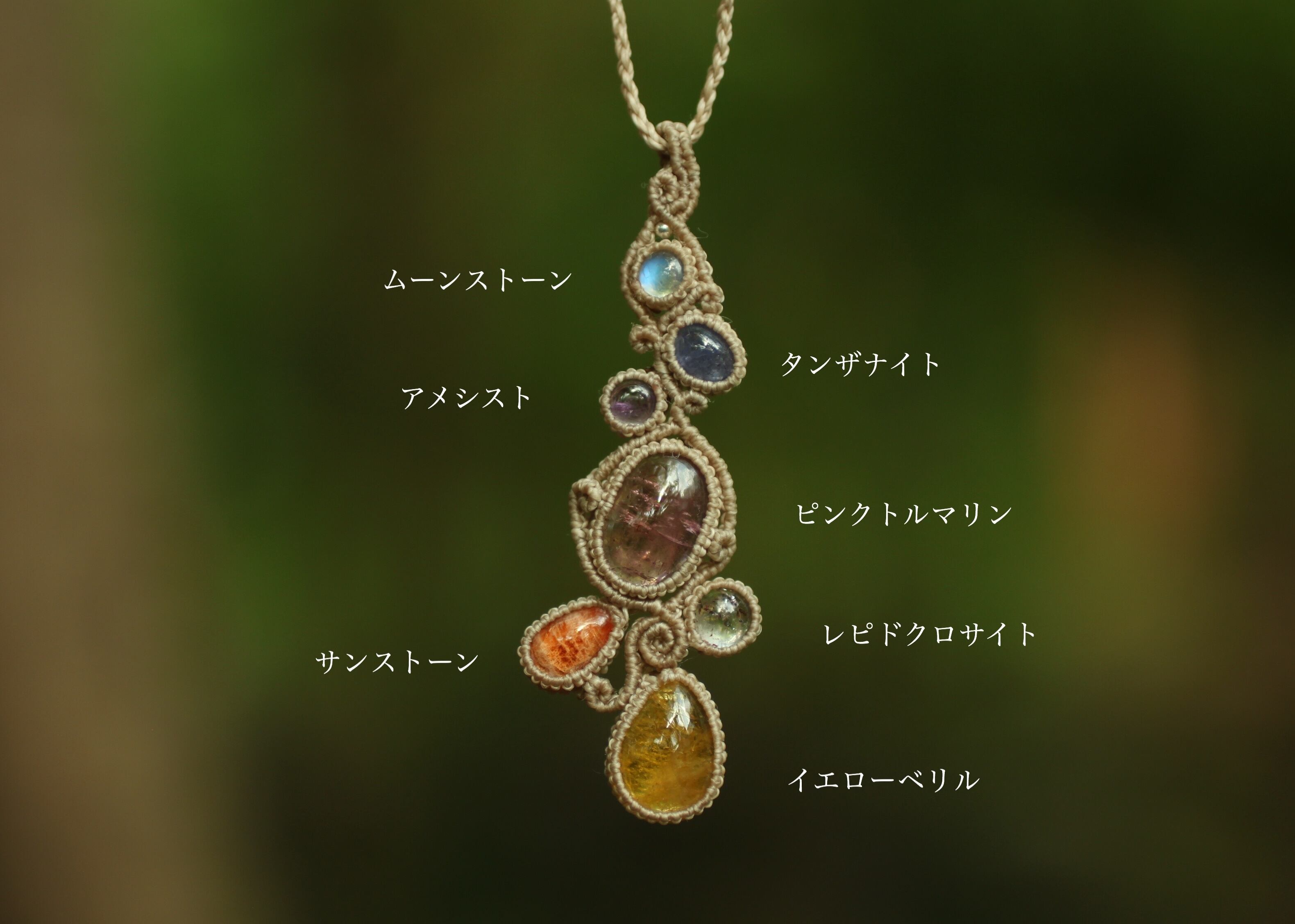 ※ 全ての天然石を包むマクラメ編みのコードは、手縫い糸ほどの細いコードを使い出来る限り天然石の表情を引き立たせる事を重視し時間をかけ丁寧に包みました。
