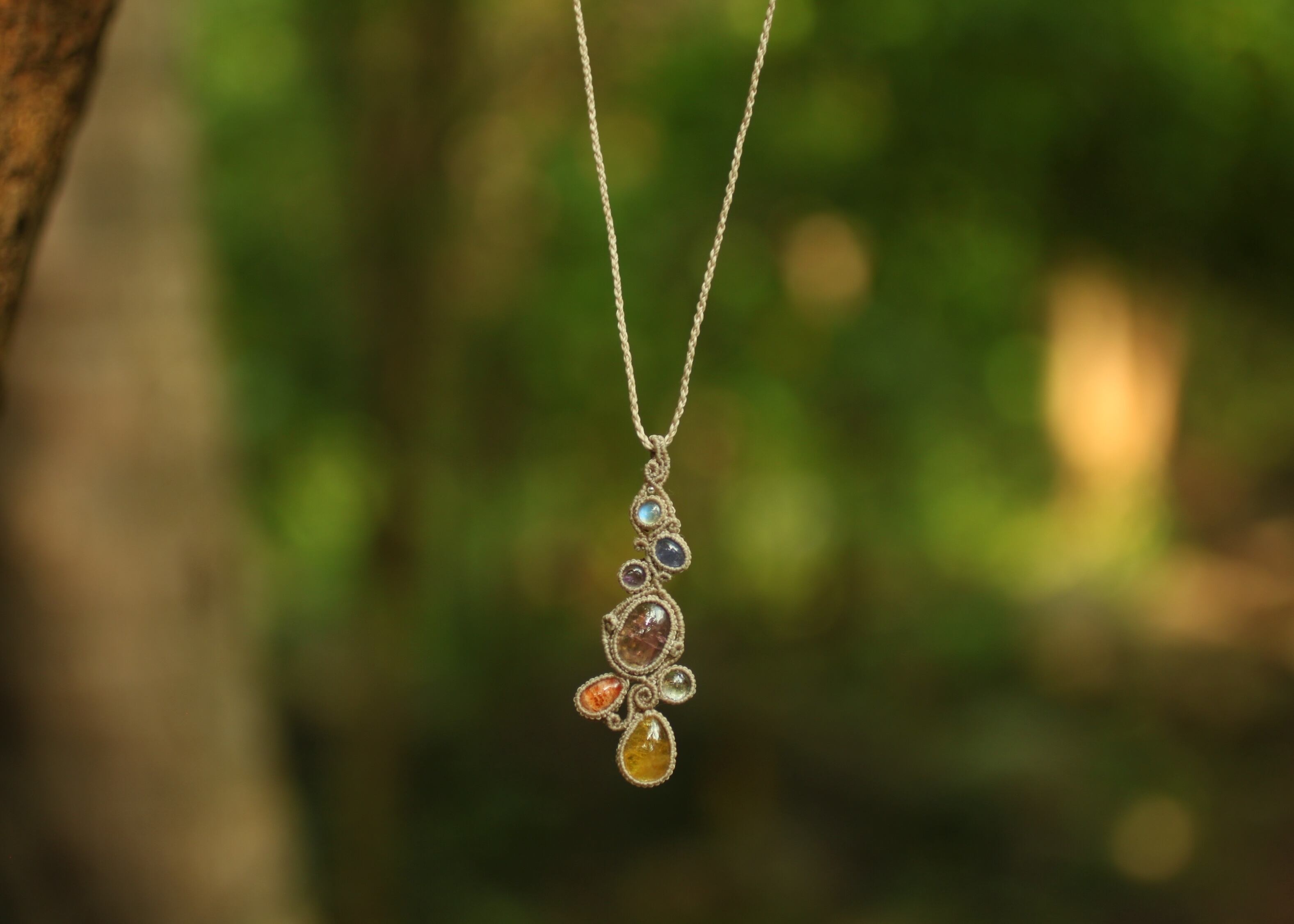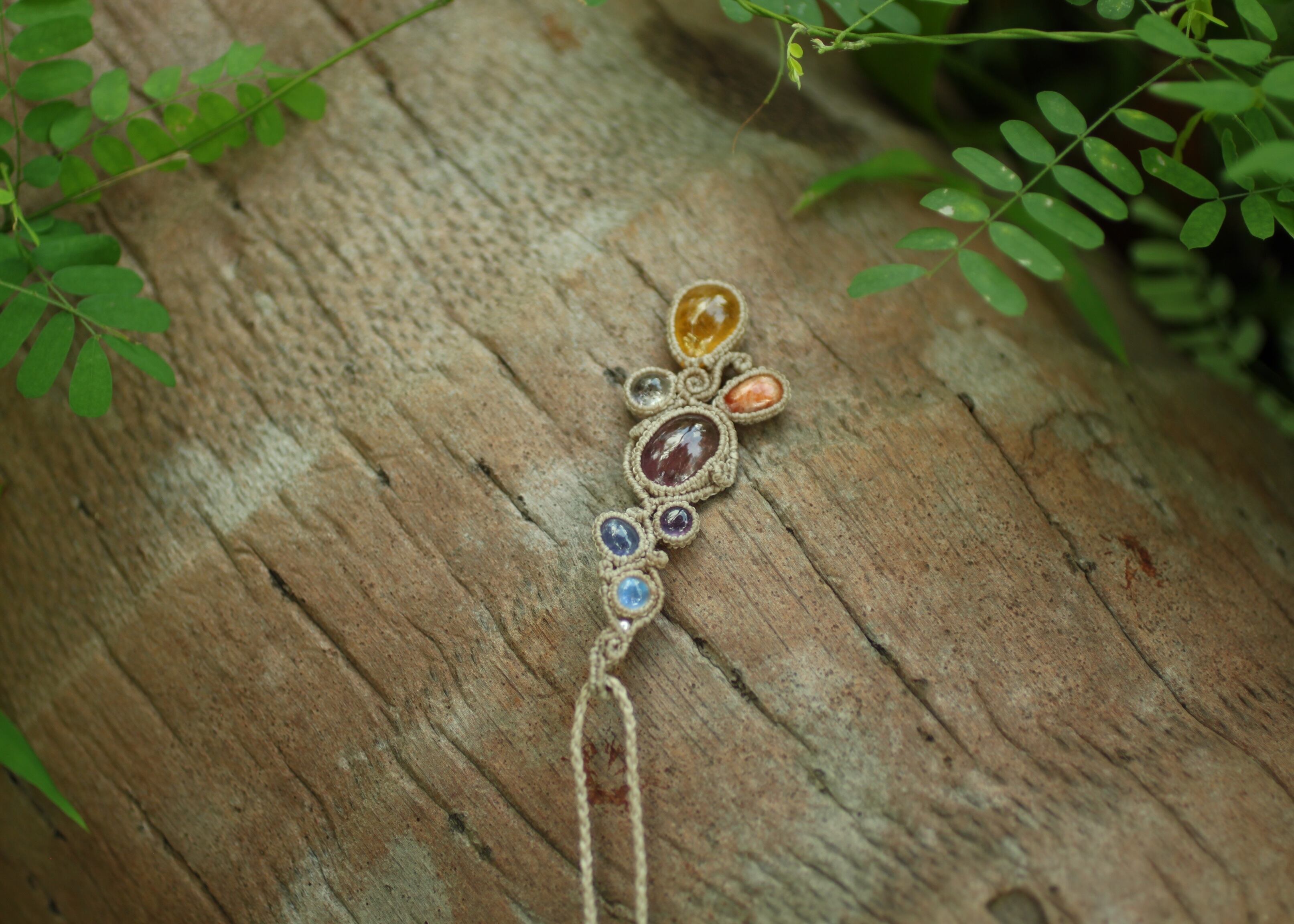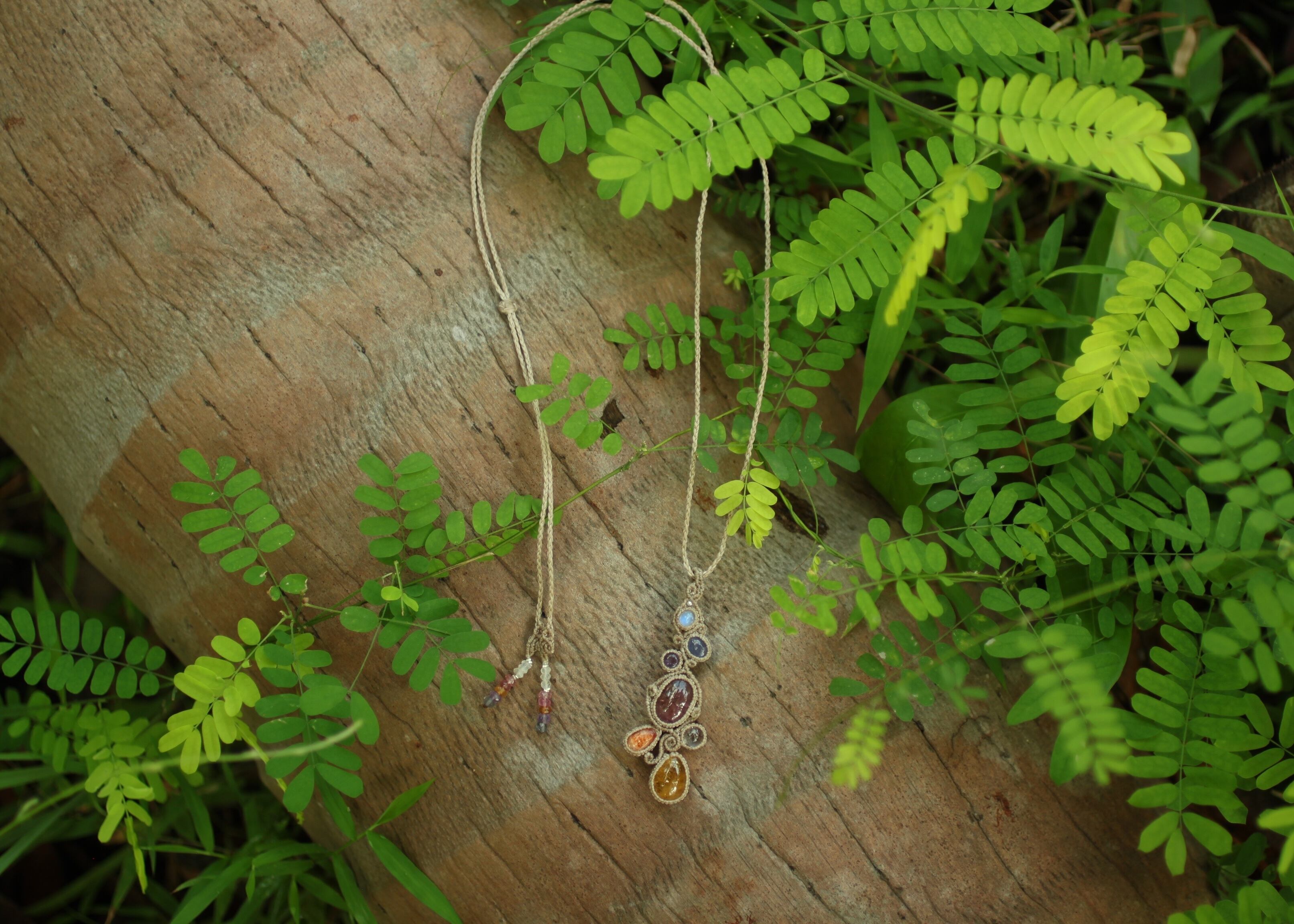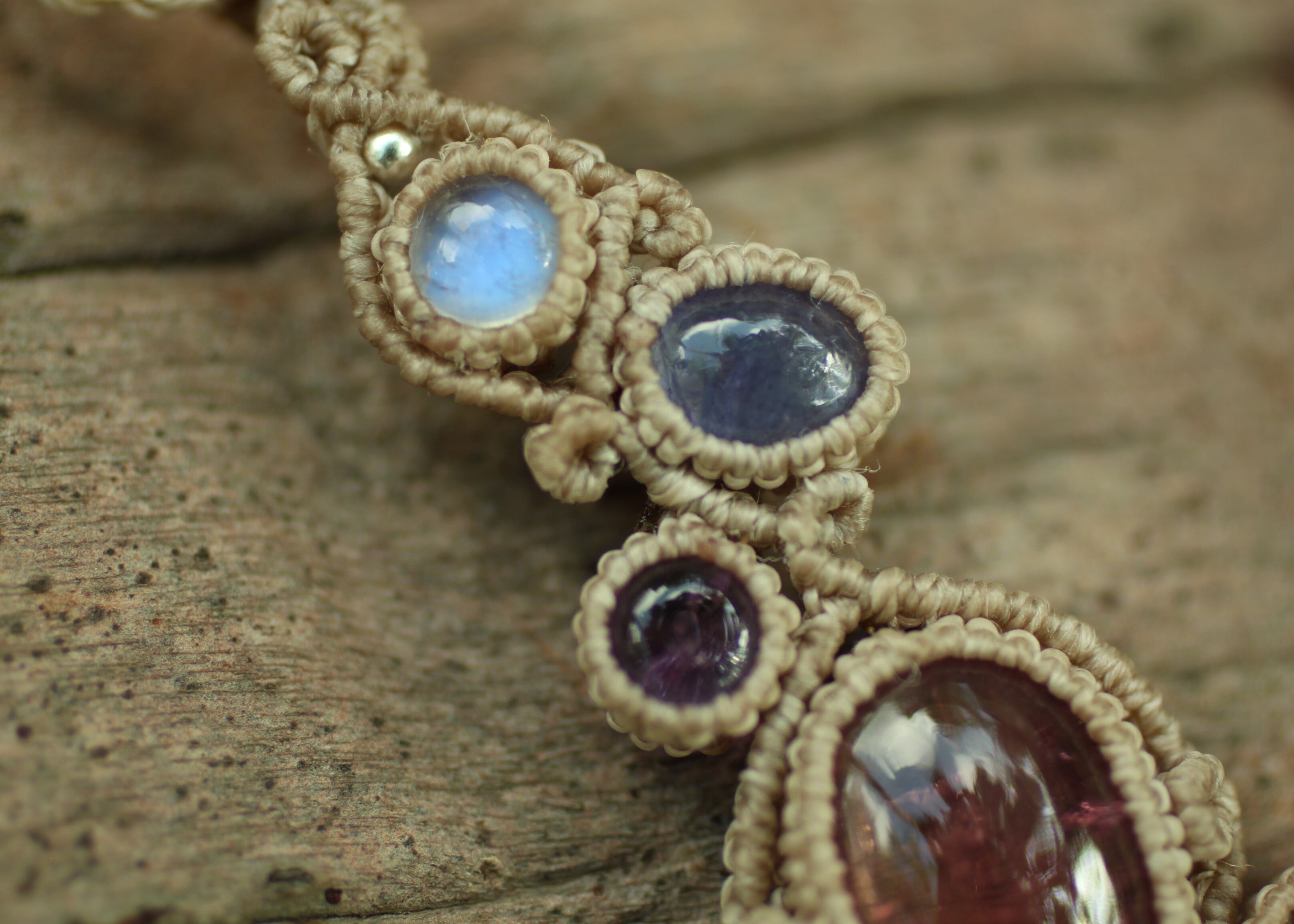 ※ 全ての天然石を包むマクラメ編みのコードは、手縫い糸ほどの細いコードを使い出来る限り天然石の表情を引き立たせる事を重視し時間をかけ丁寧に包みました。
