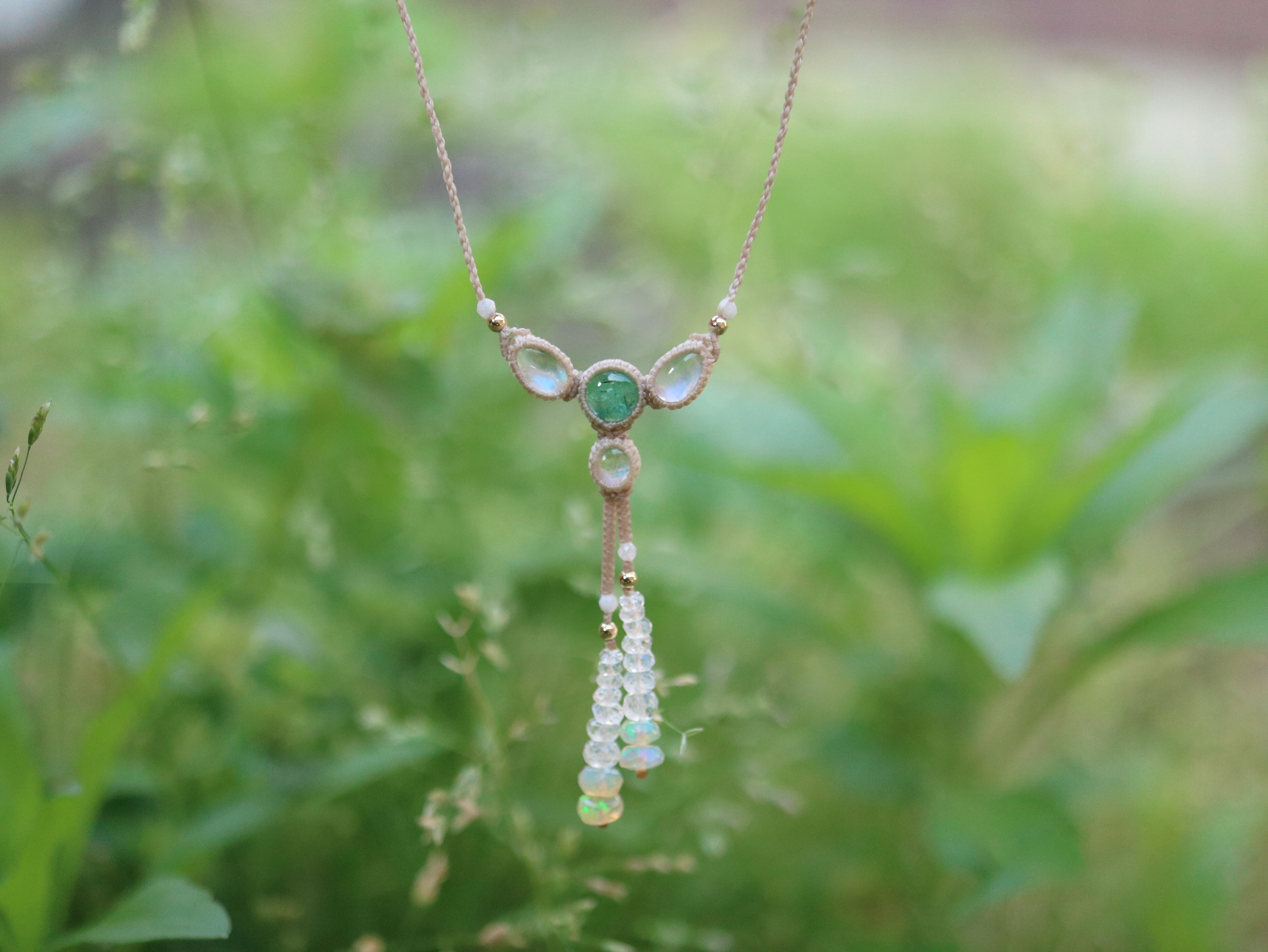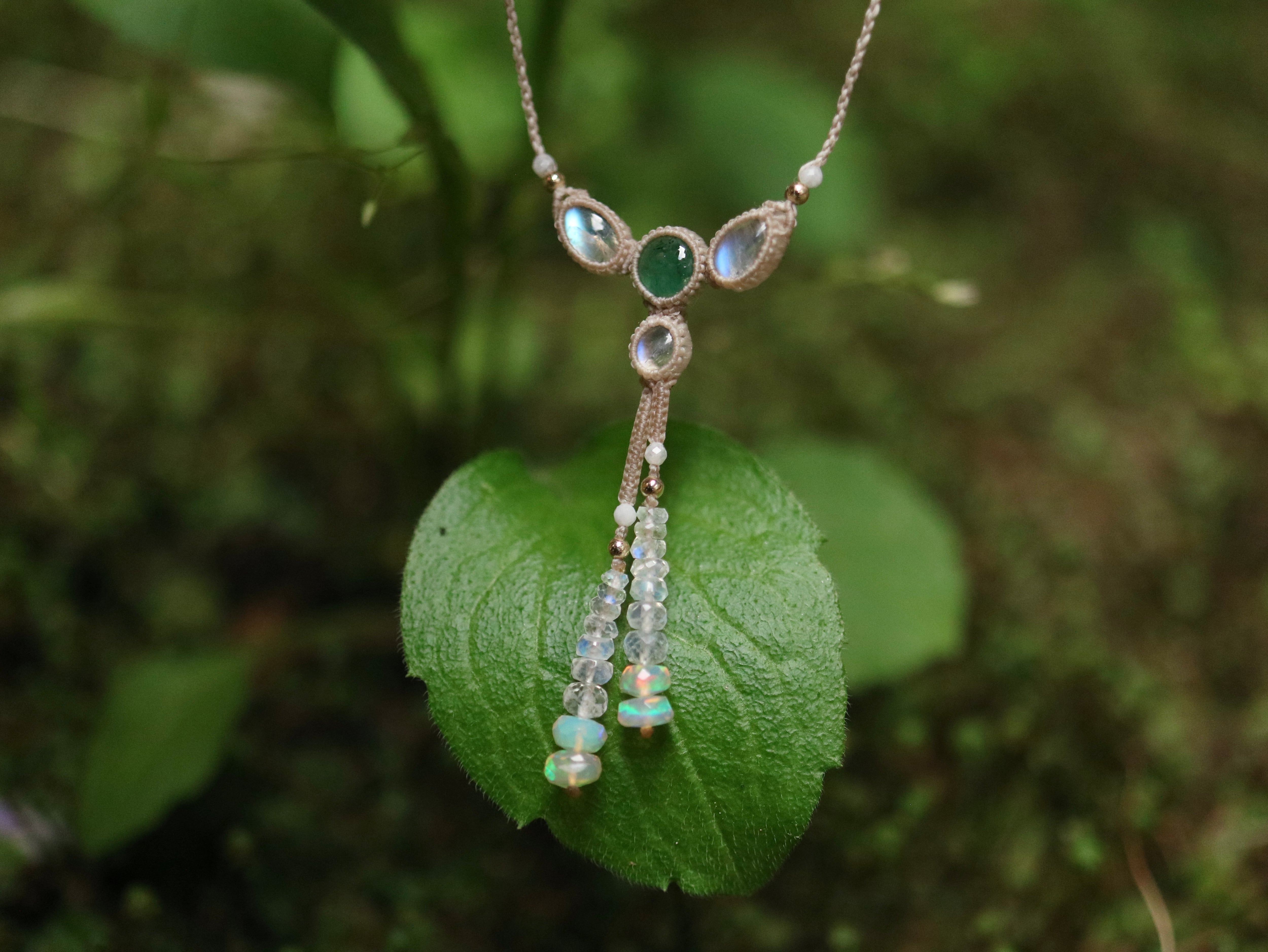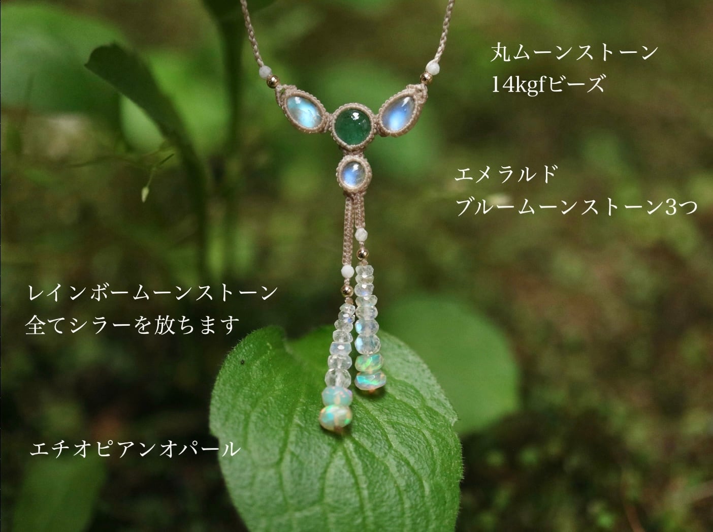 エメラルド × レインボームーンストーン × エチオピアンオパールビーズ ペンダント