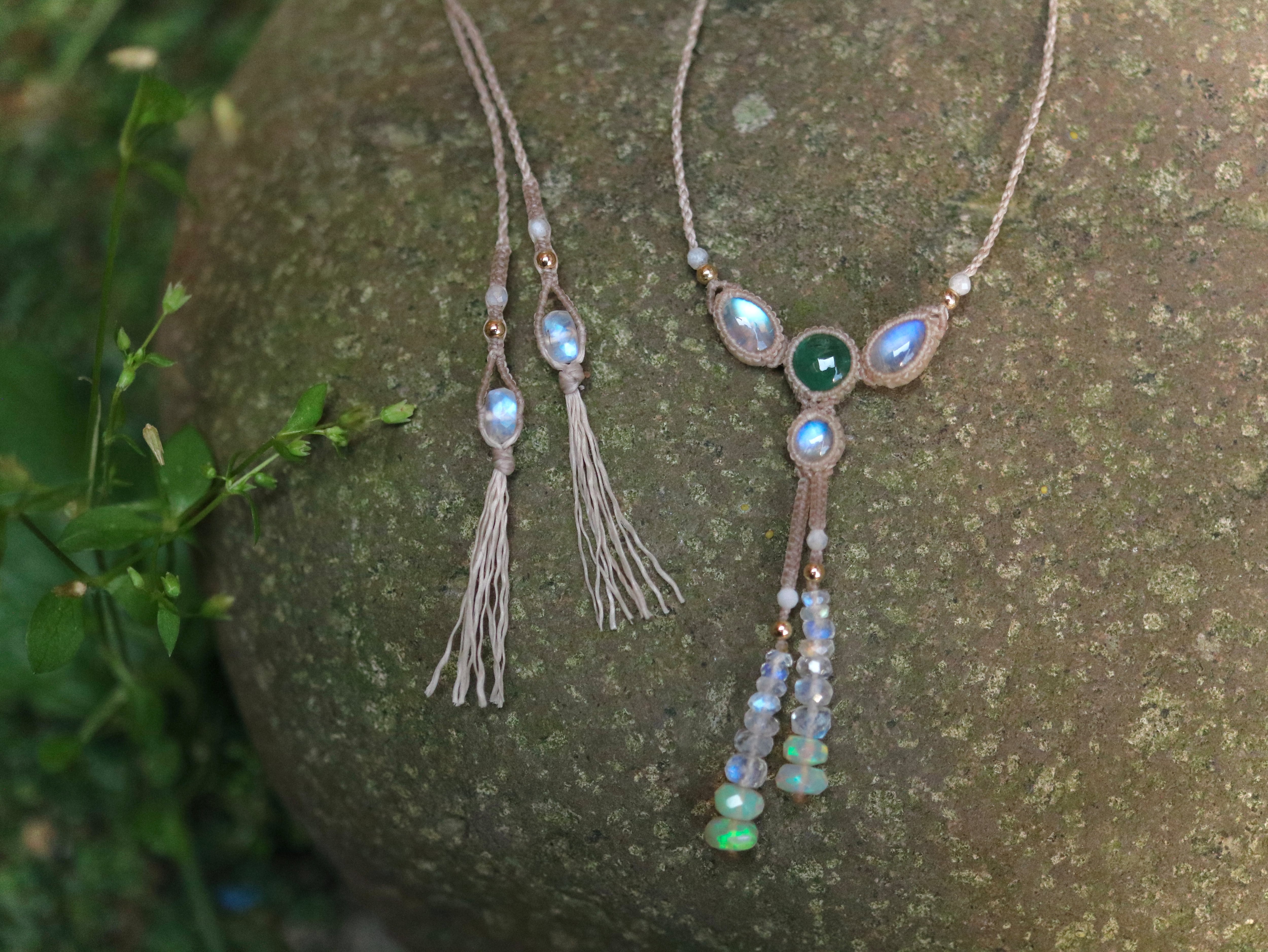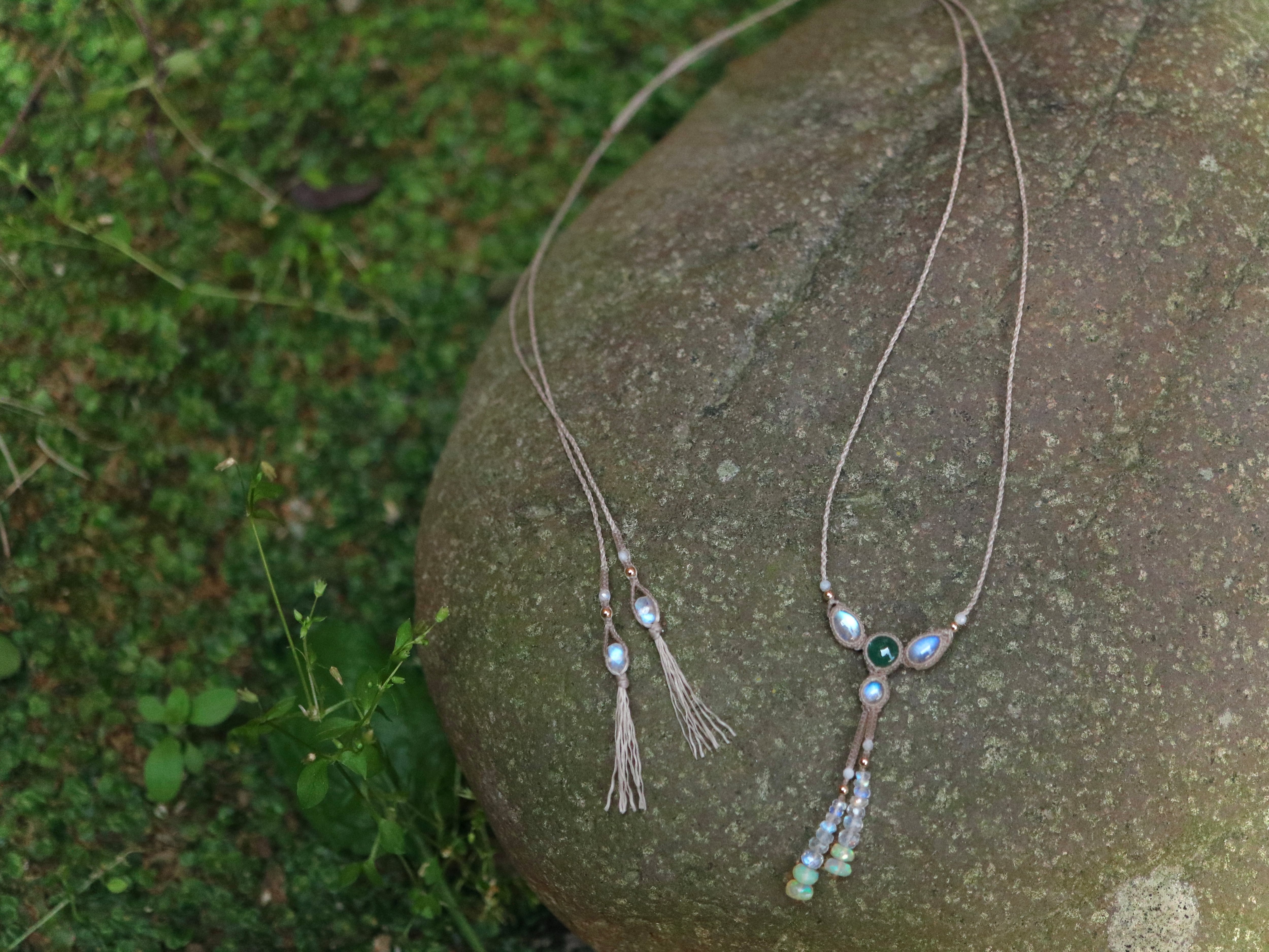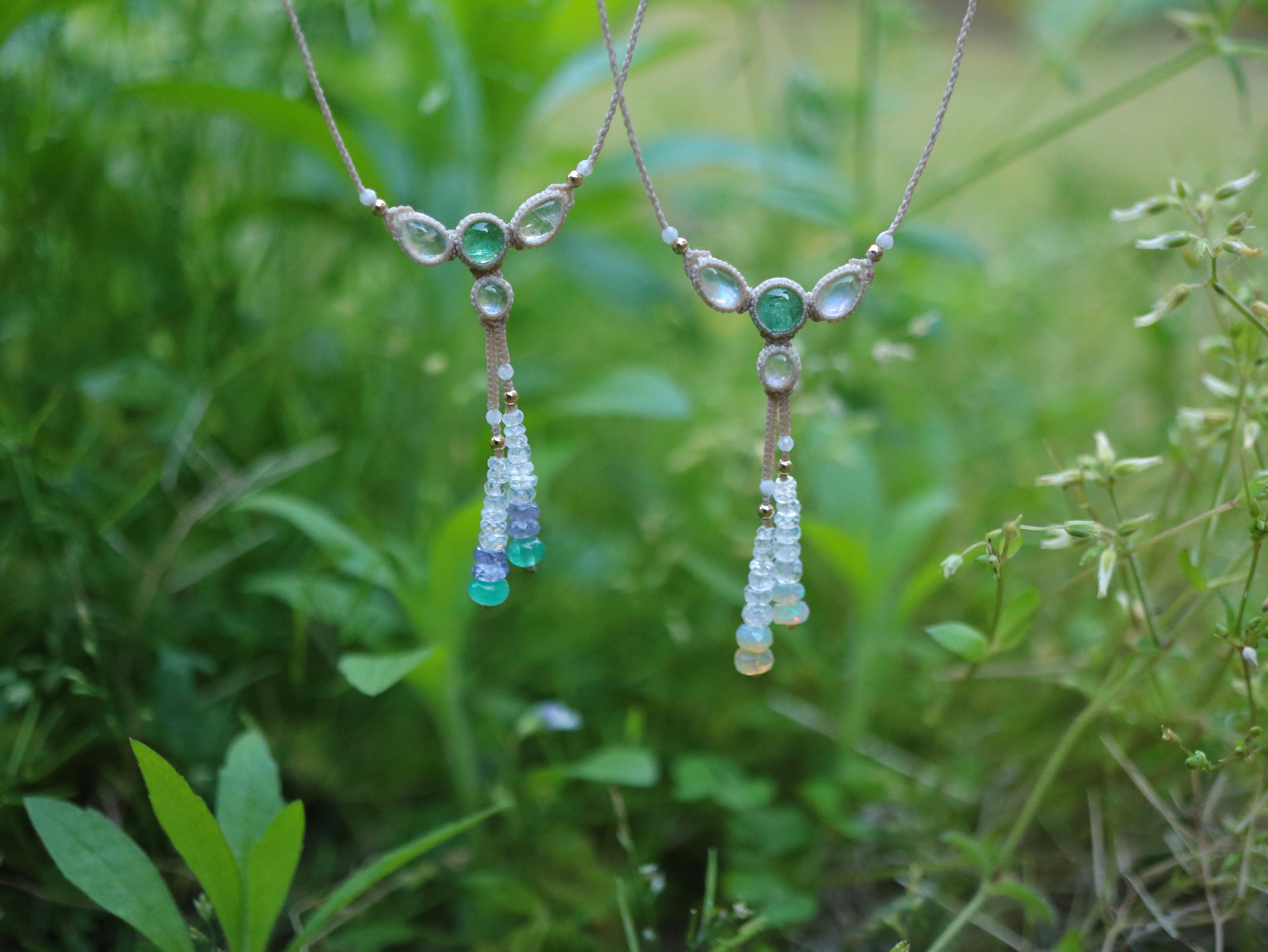 エメラルド × レインボームーンストーン × エチオピアンオパールビーズ ペンダント