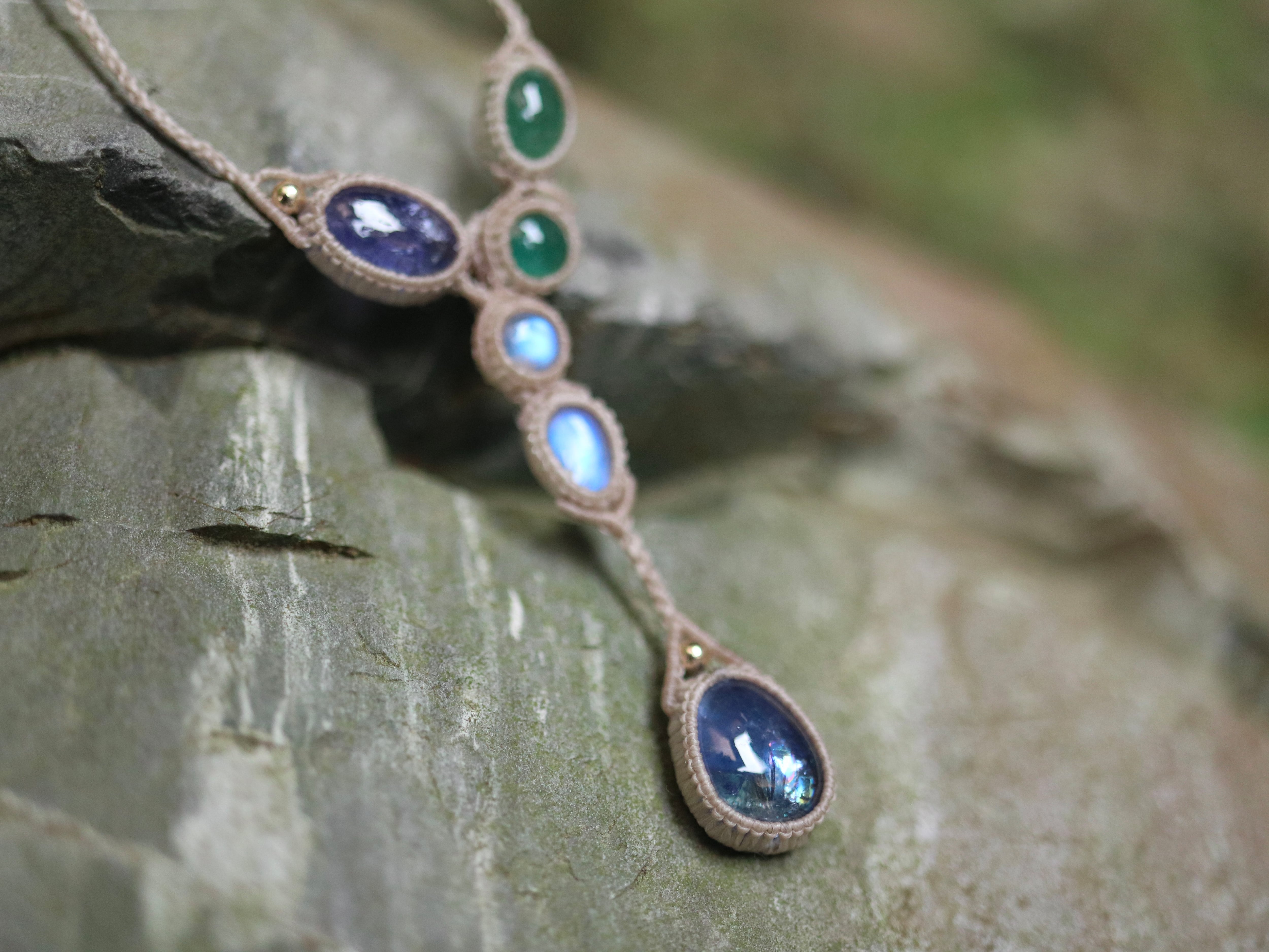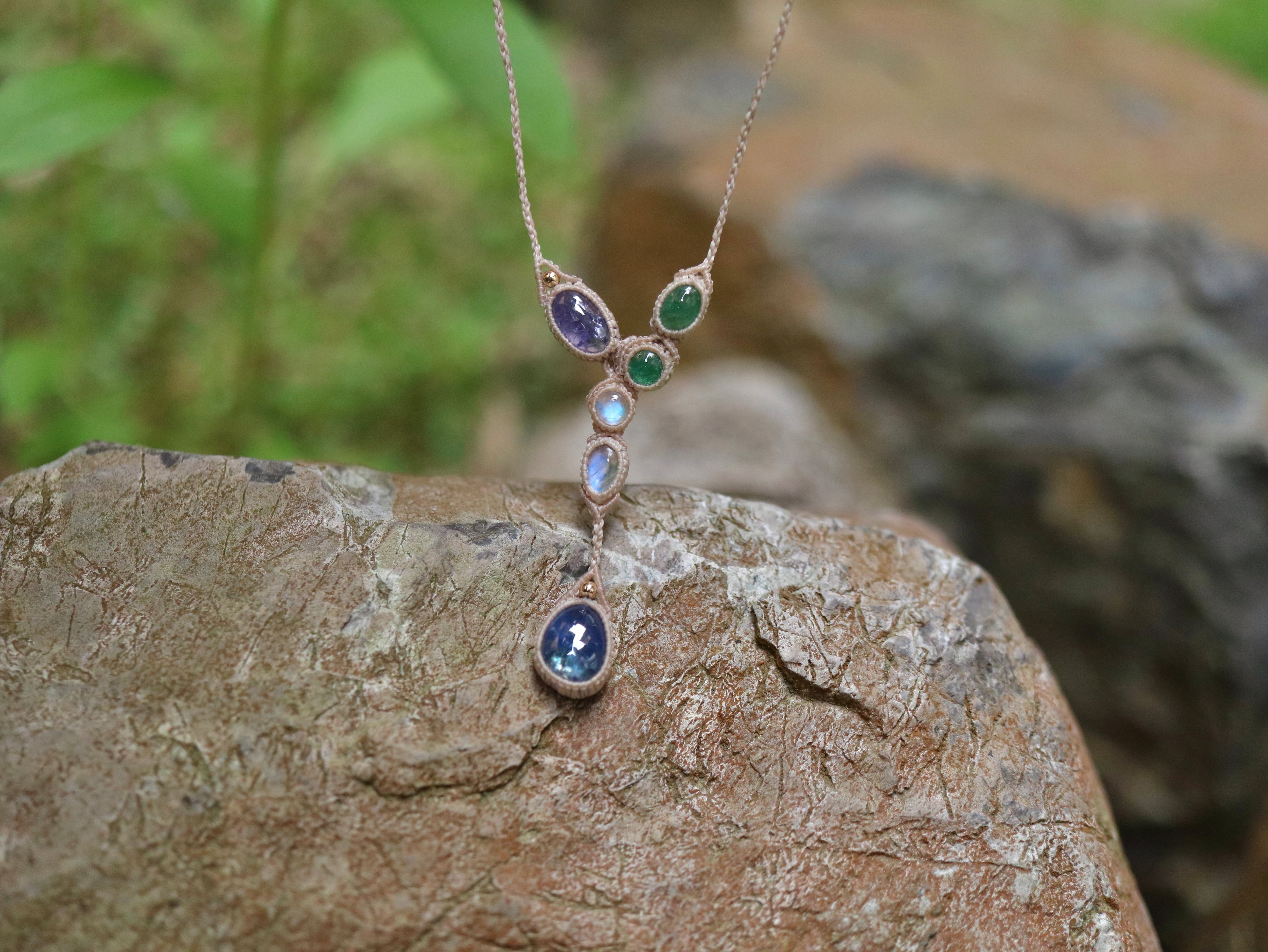 エメラルド × ブルームーンストーン × タンザナイト ネックレス