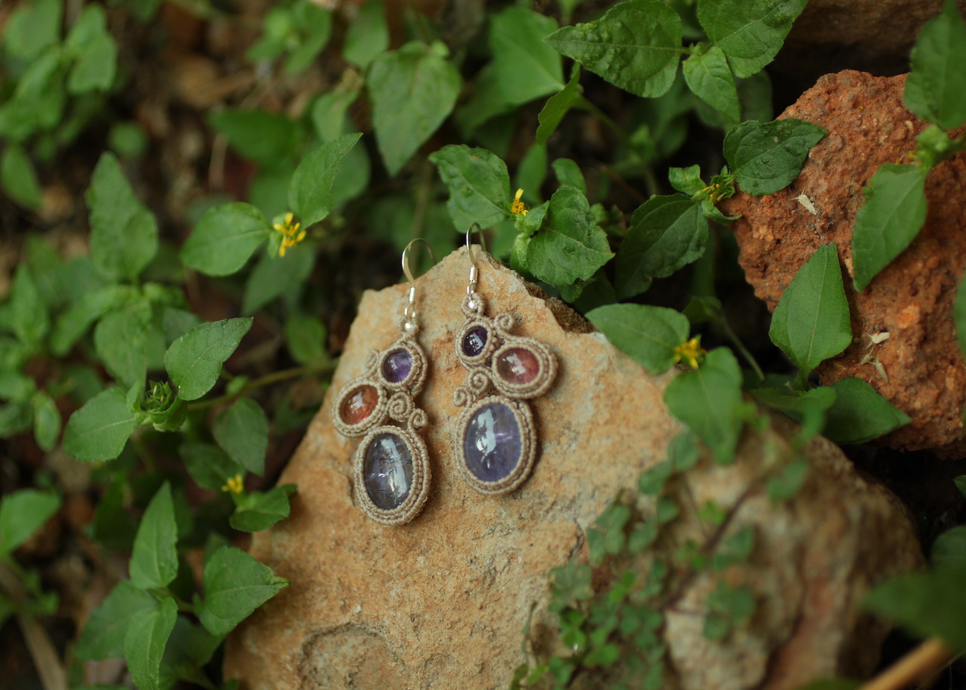 マクラメ編みはそれぞれの天然石をシンプルに繋ぎ合せながら、少しユニークさを加えました。