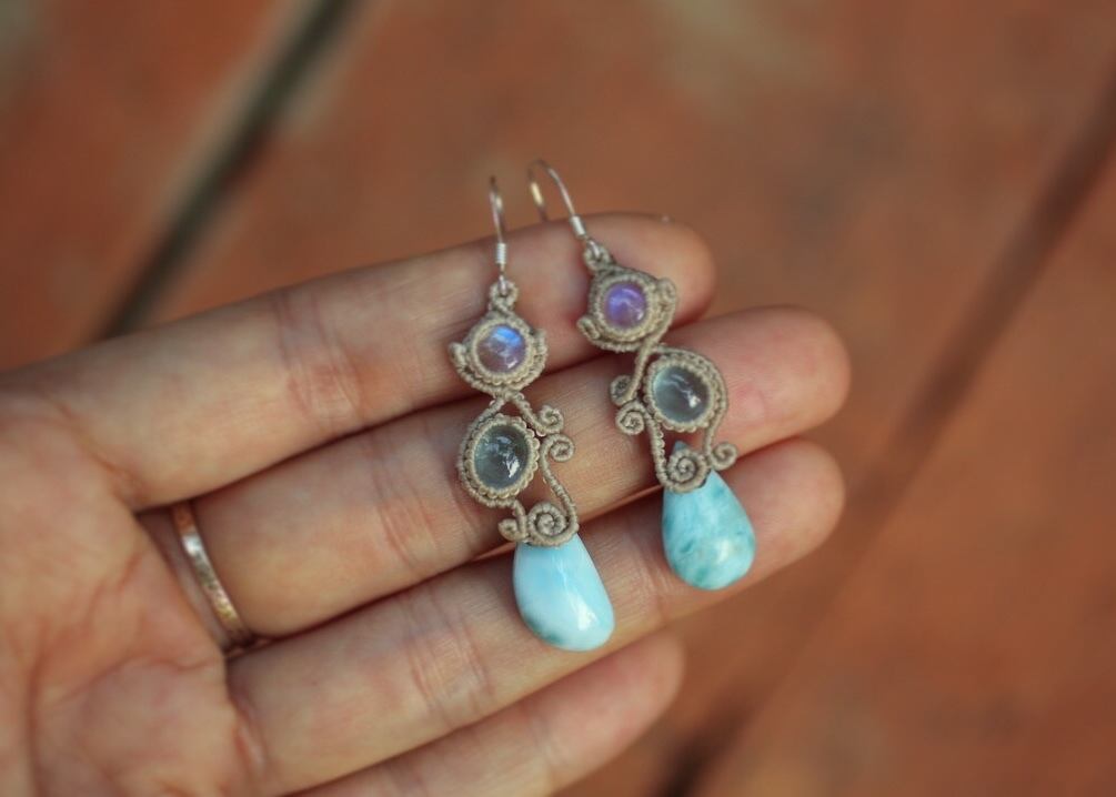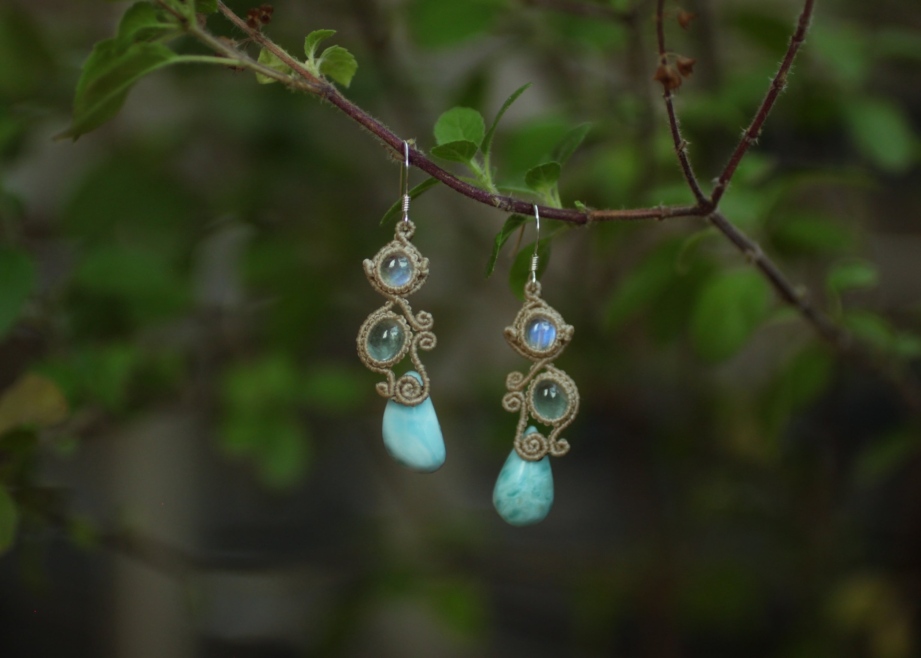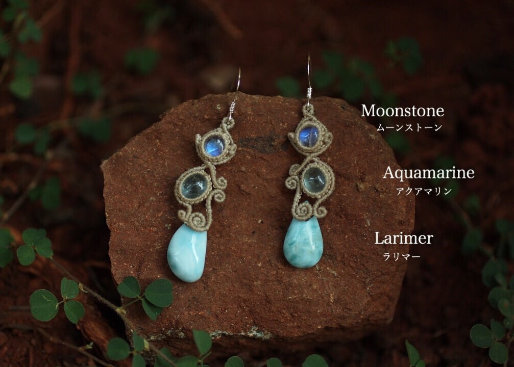 ラリマー × ムーンストーン × アクアマリン ピアス