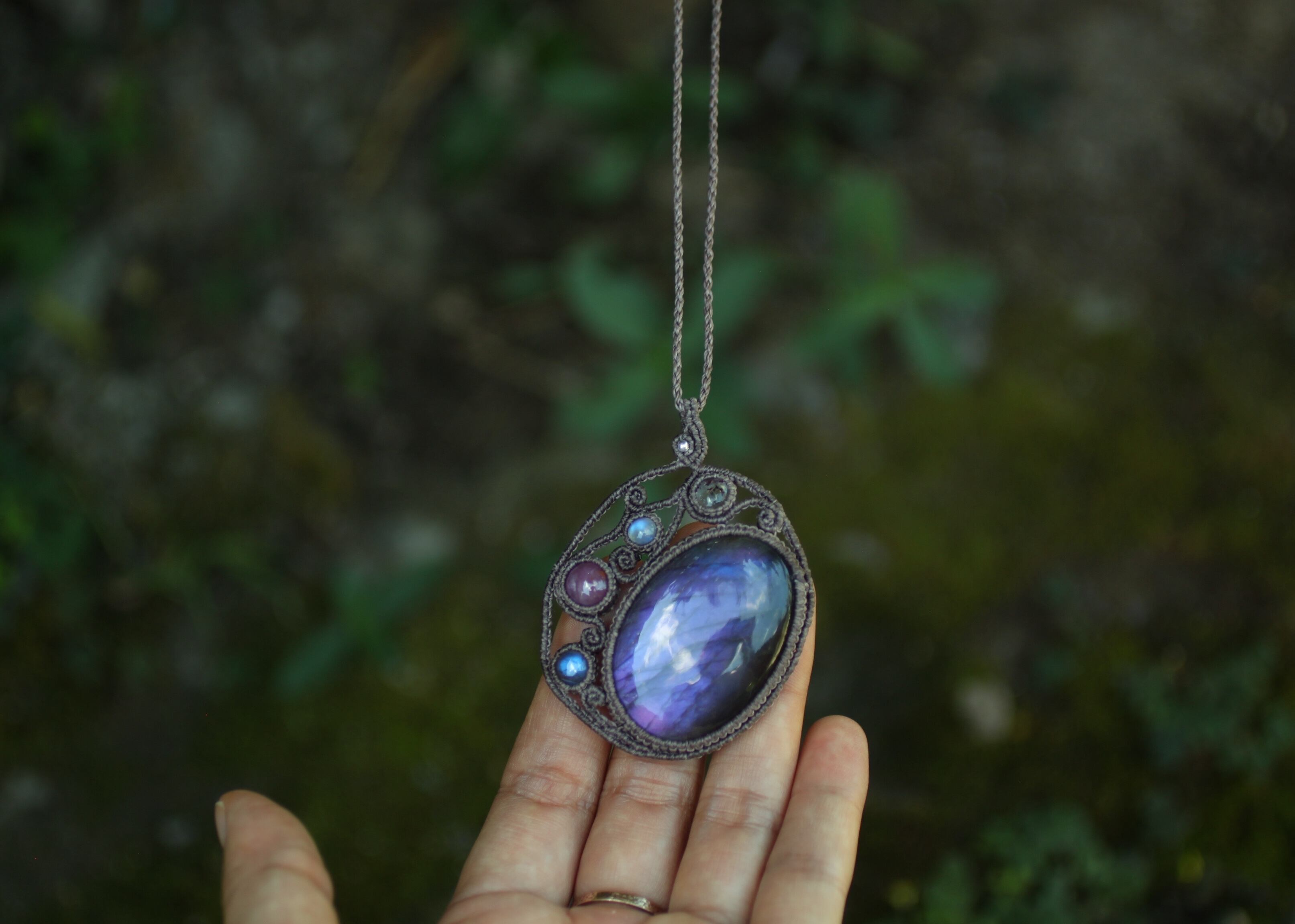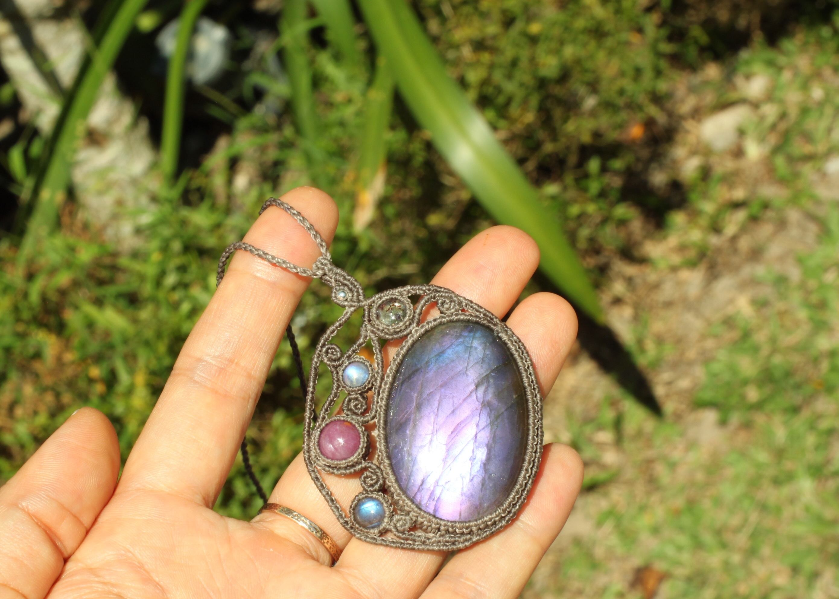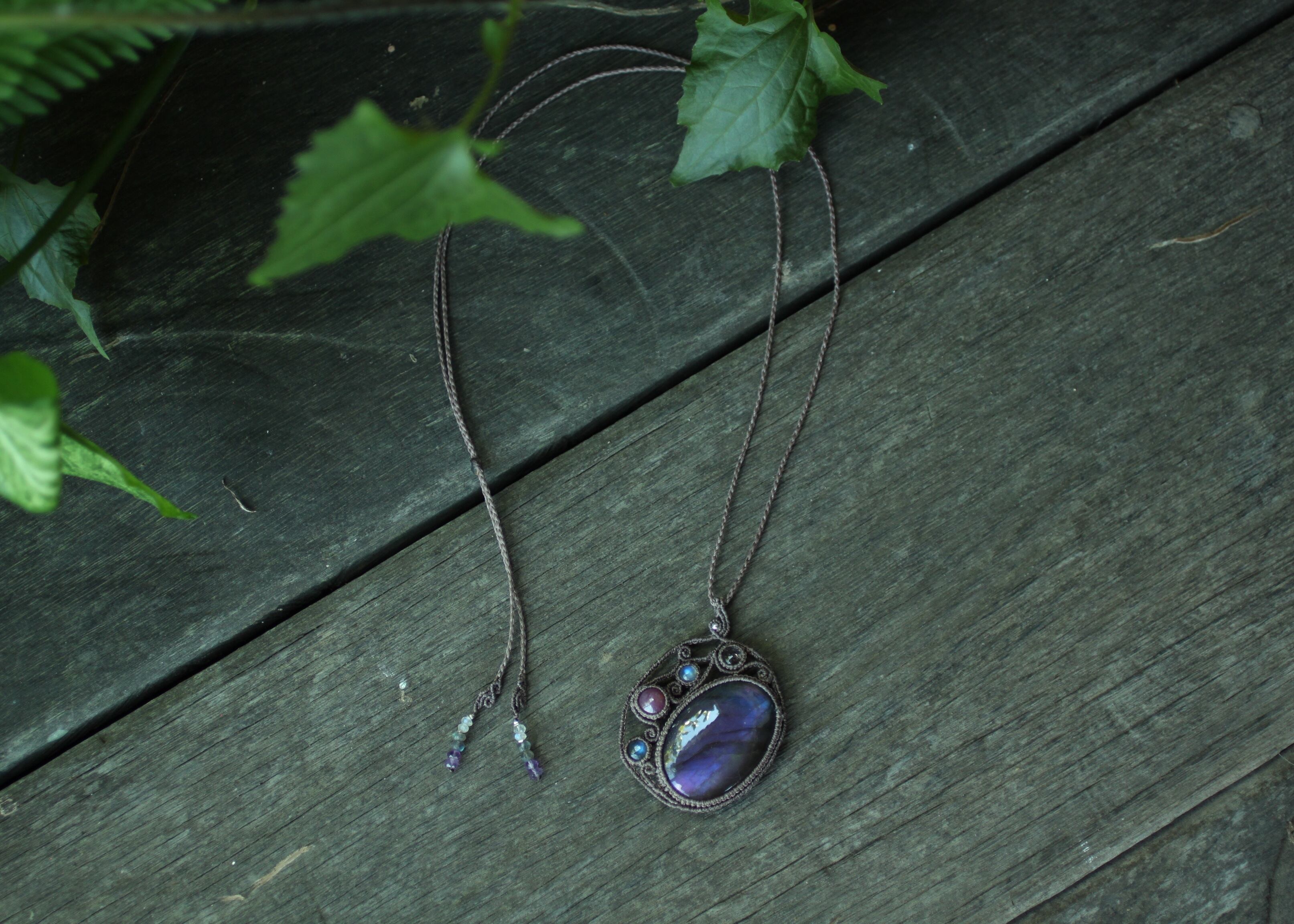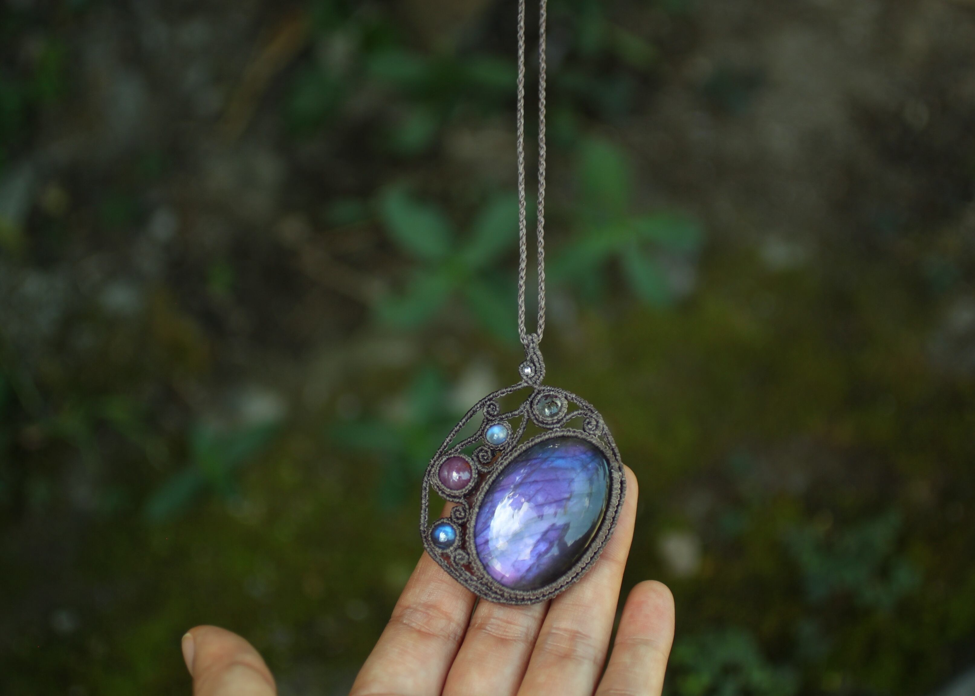 ※ 写真ではメインとなるラブラドライトはやや青く写っていますが、実際はもう少し赤みのある紫です。