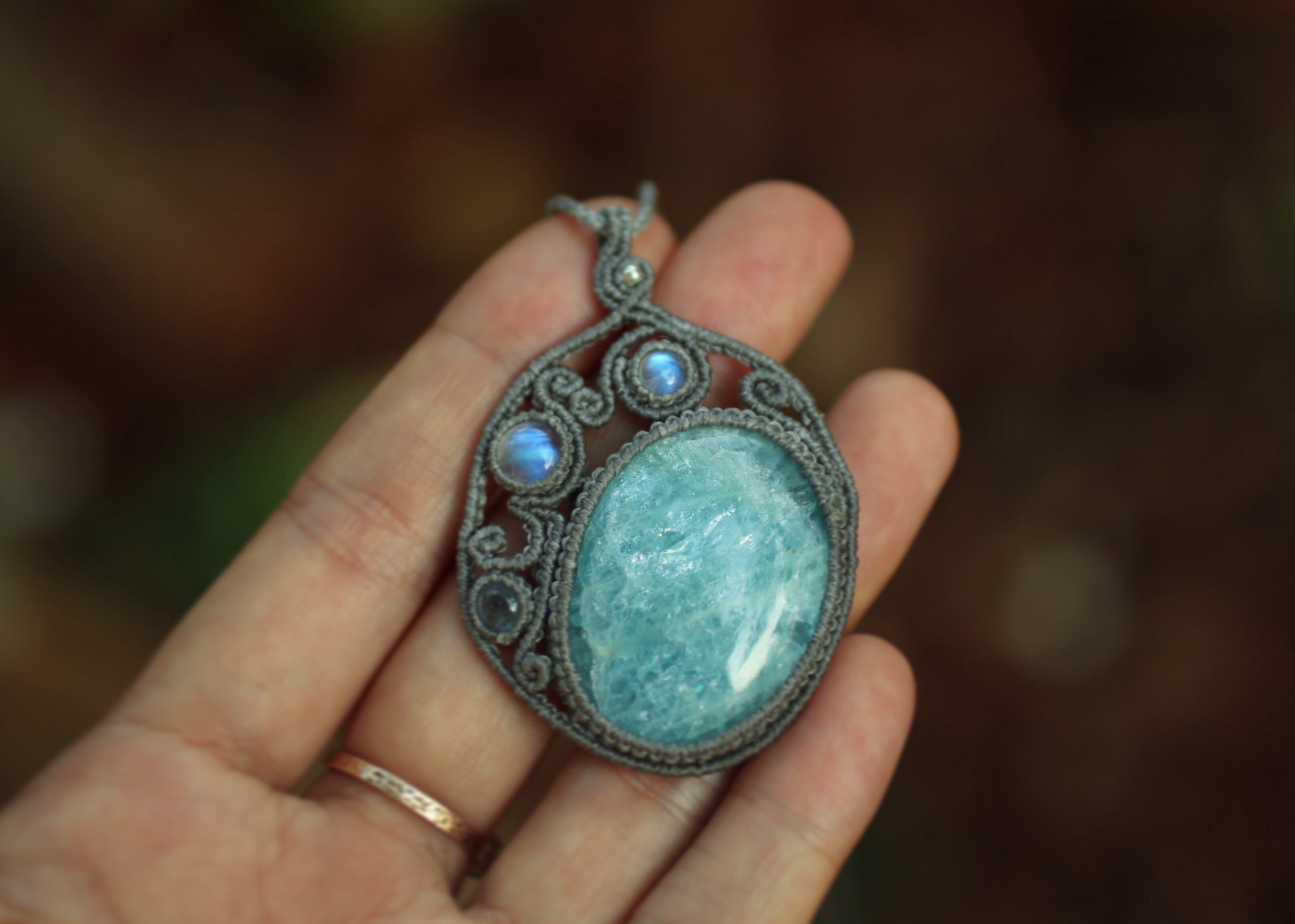 装飾として、ムーンストーン、アクアマリン、シルバー925 ビーズ 使用