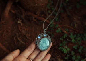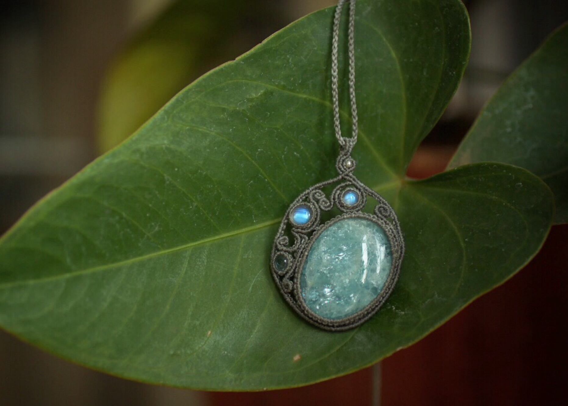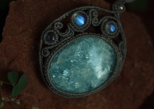 複数の天然石を 1つの輪の中に囲み、ネックレストップとして仕上げました。