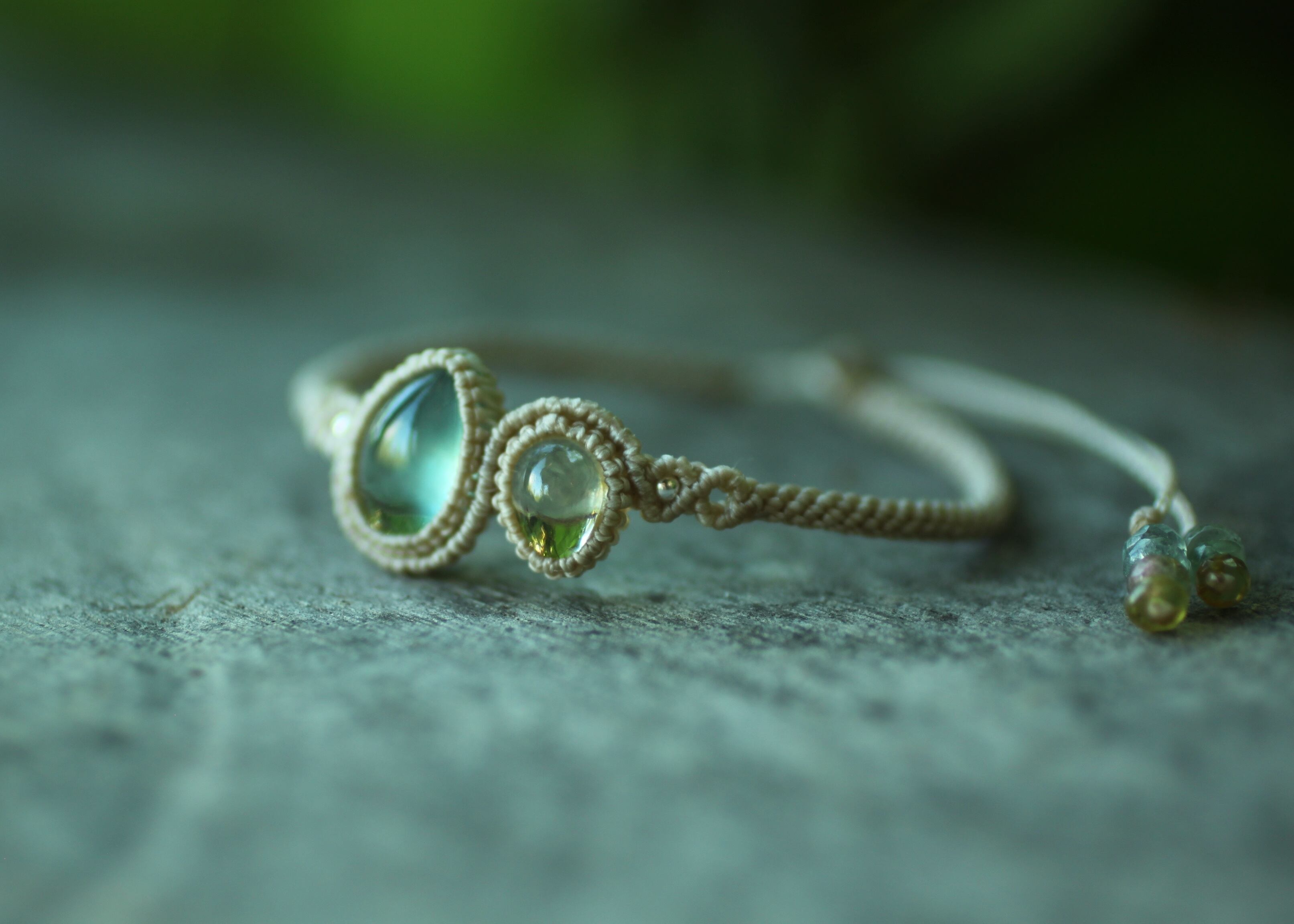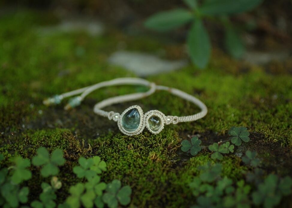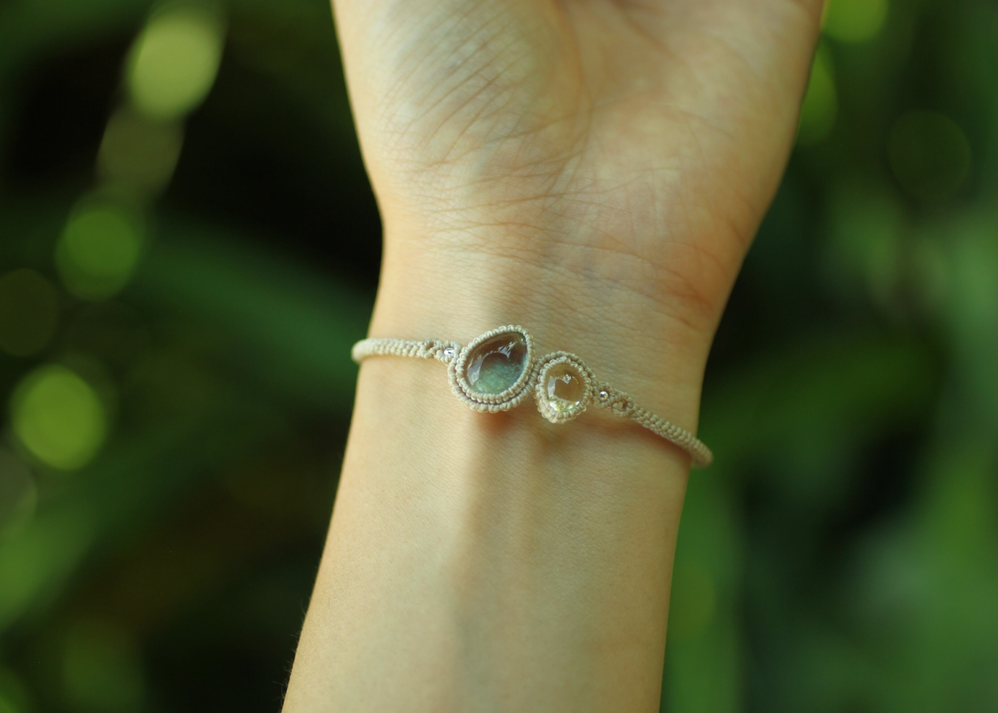※ それぞれの天然石を包むマクラメ編みのコードは、手縫い糸ほどの細いコードを使い出来る限り天然石の表情を引き立たせる事を重視し時間をかけ丁寧に包みました。