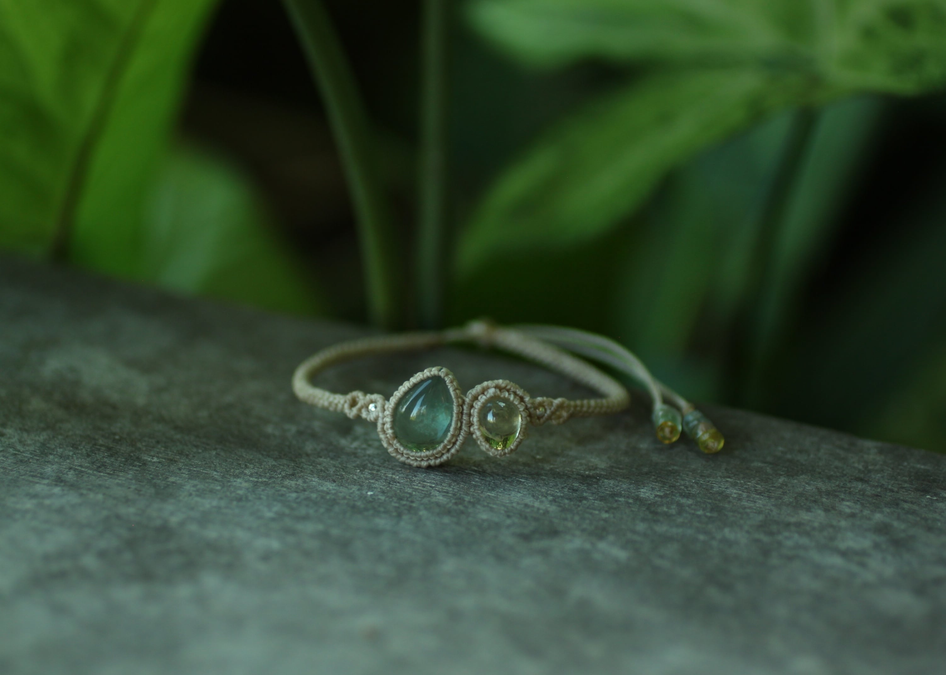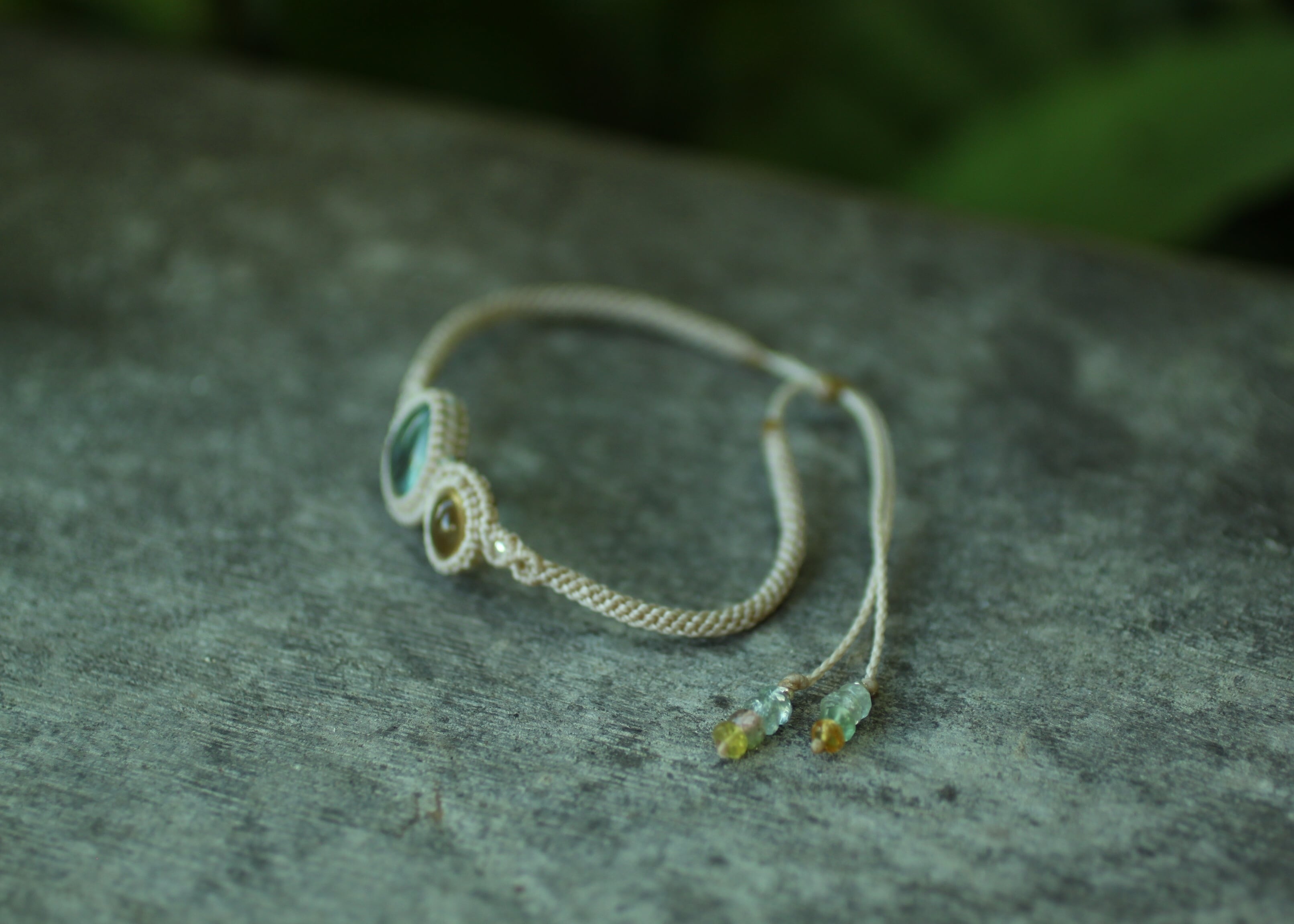 しずく型のグリーンフローライトとシトリン 2つをシンプルにあしらったブレスレット。