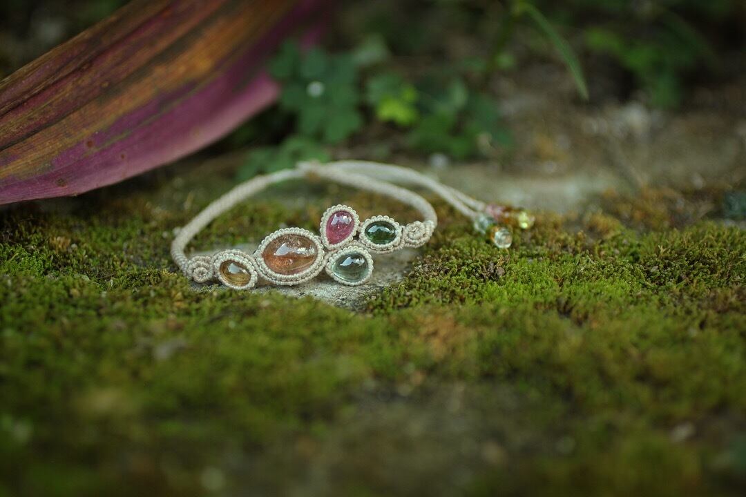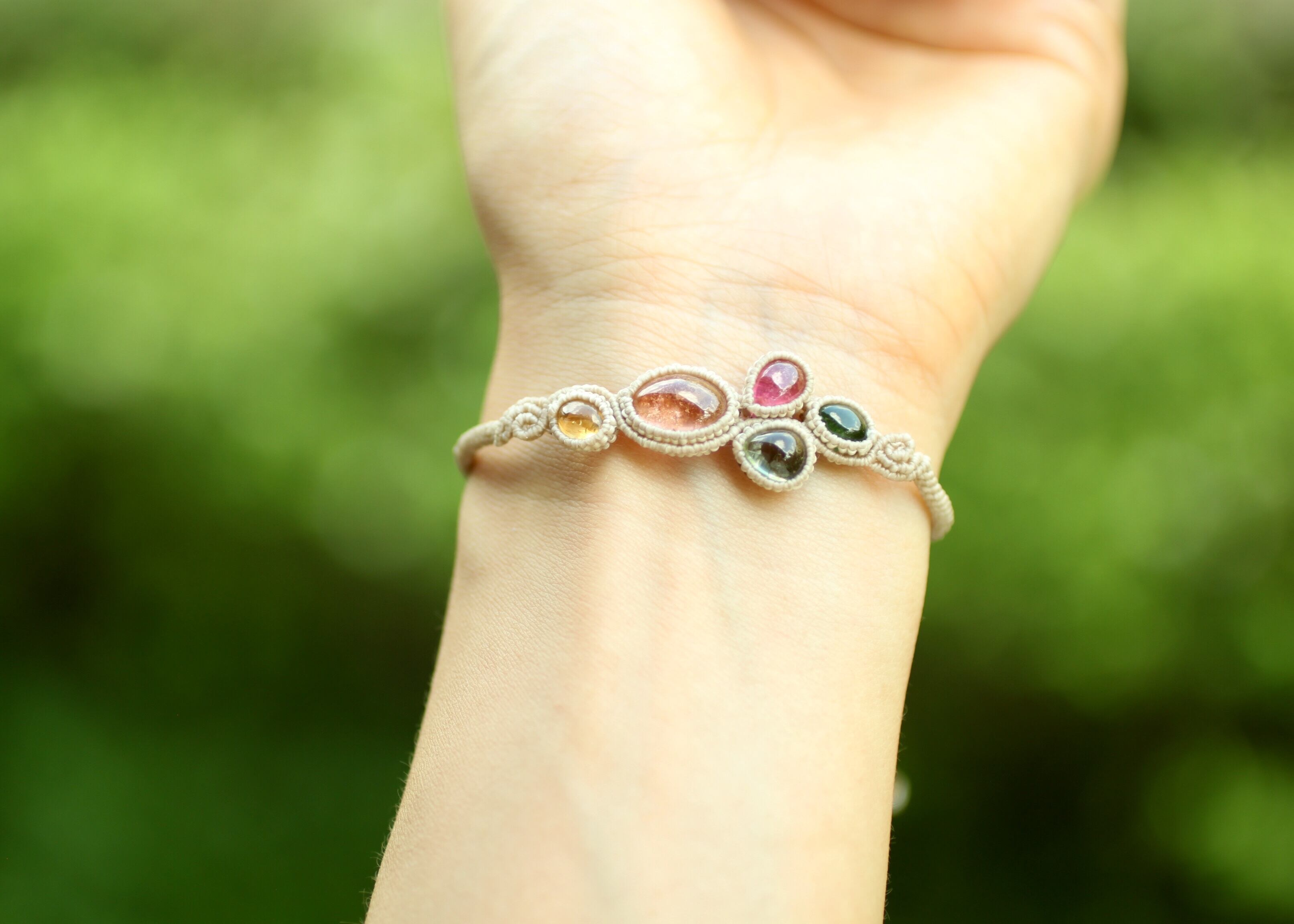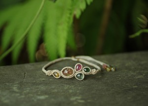 中でもブレスレットにあしらった1番大きいサイズのトルマリンの色はピンク+オレンジ、なんとも言えない色味が魅力的です。