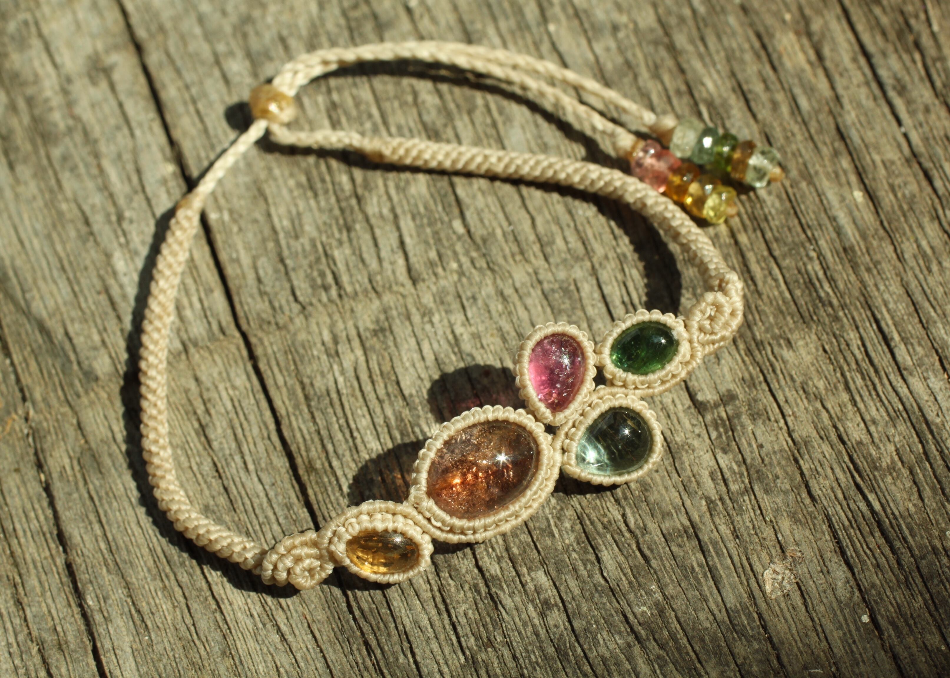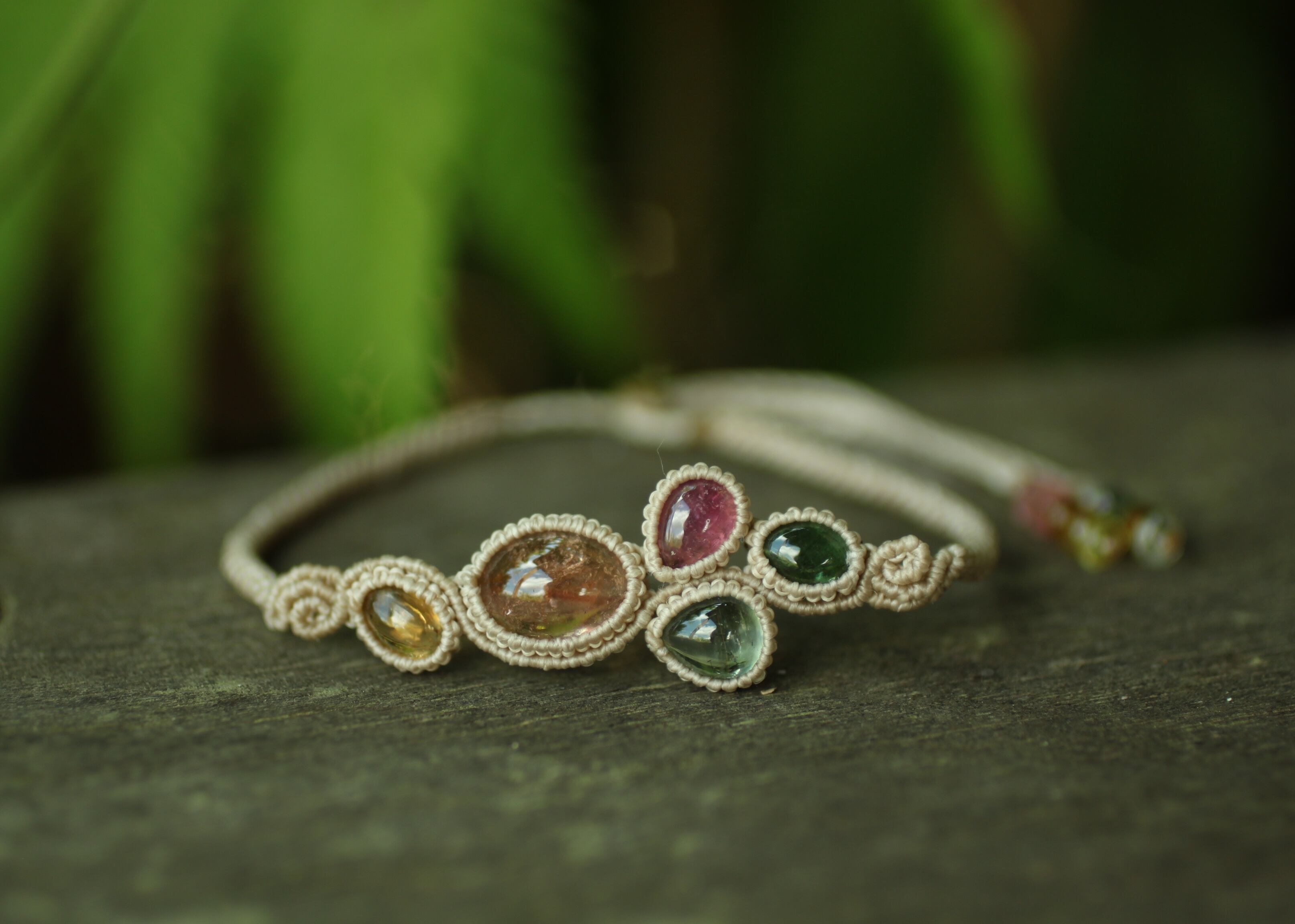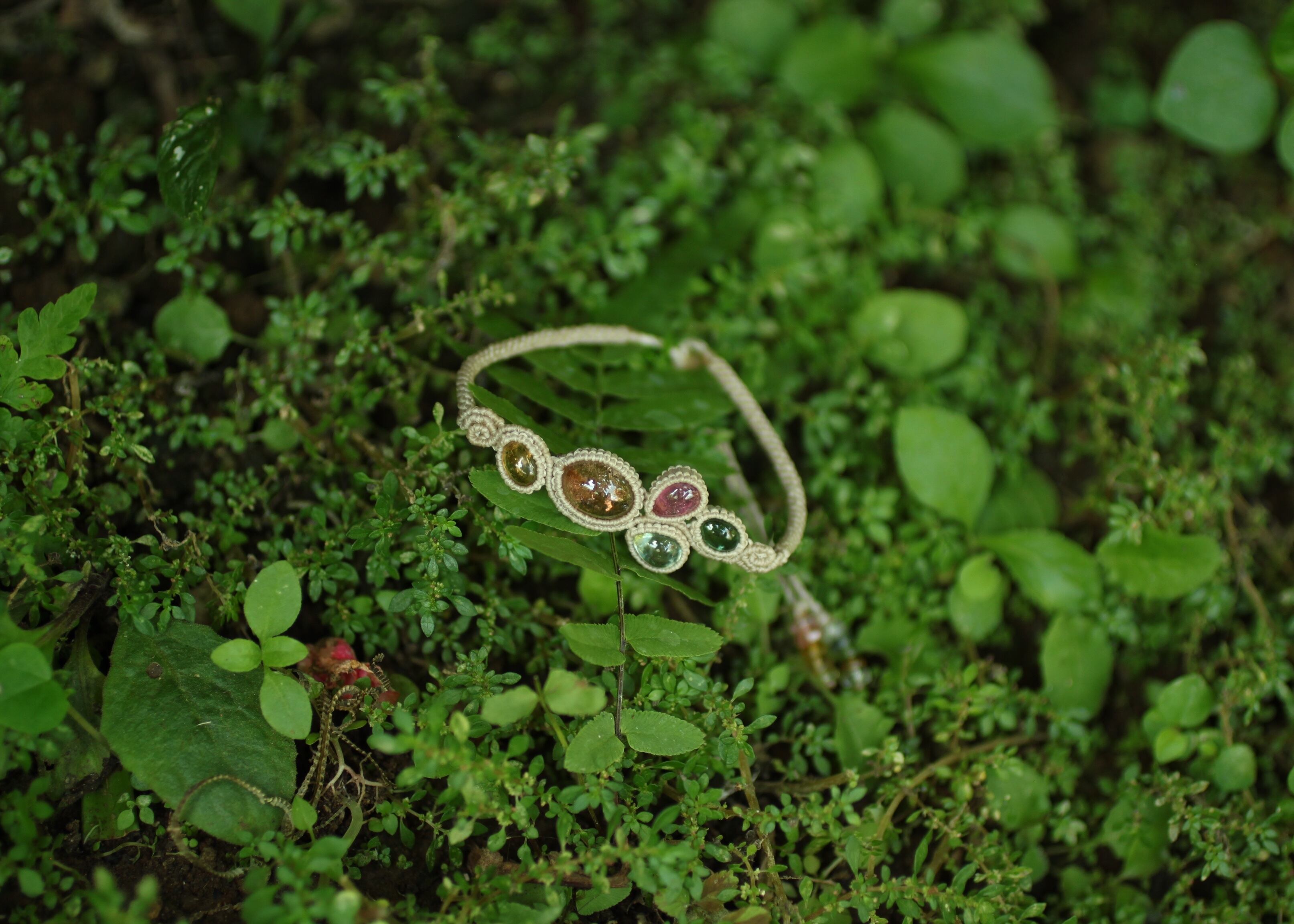 ※ それぞれの天然石を包むマクラメ編みのコードは、手縫い糸ほどの細いコードを使い出来る限り天然石の表情を引き立たせる事を重視し時間をかけ丁寧に包みました。