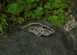 ※ それぞれの天然石を包むマクラメ編みコードは、手縫い糸ほどの細いコードを使い出来る限り天然石の表情と繊細な仕上がりを重視し時間をかけ丁寧に編みました。