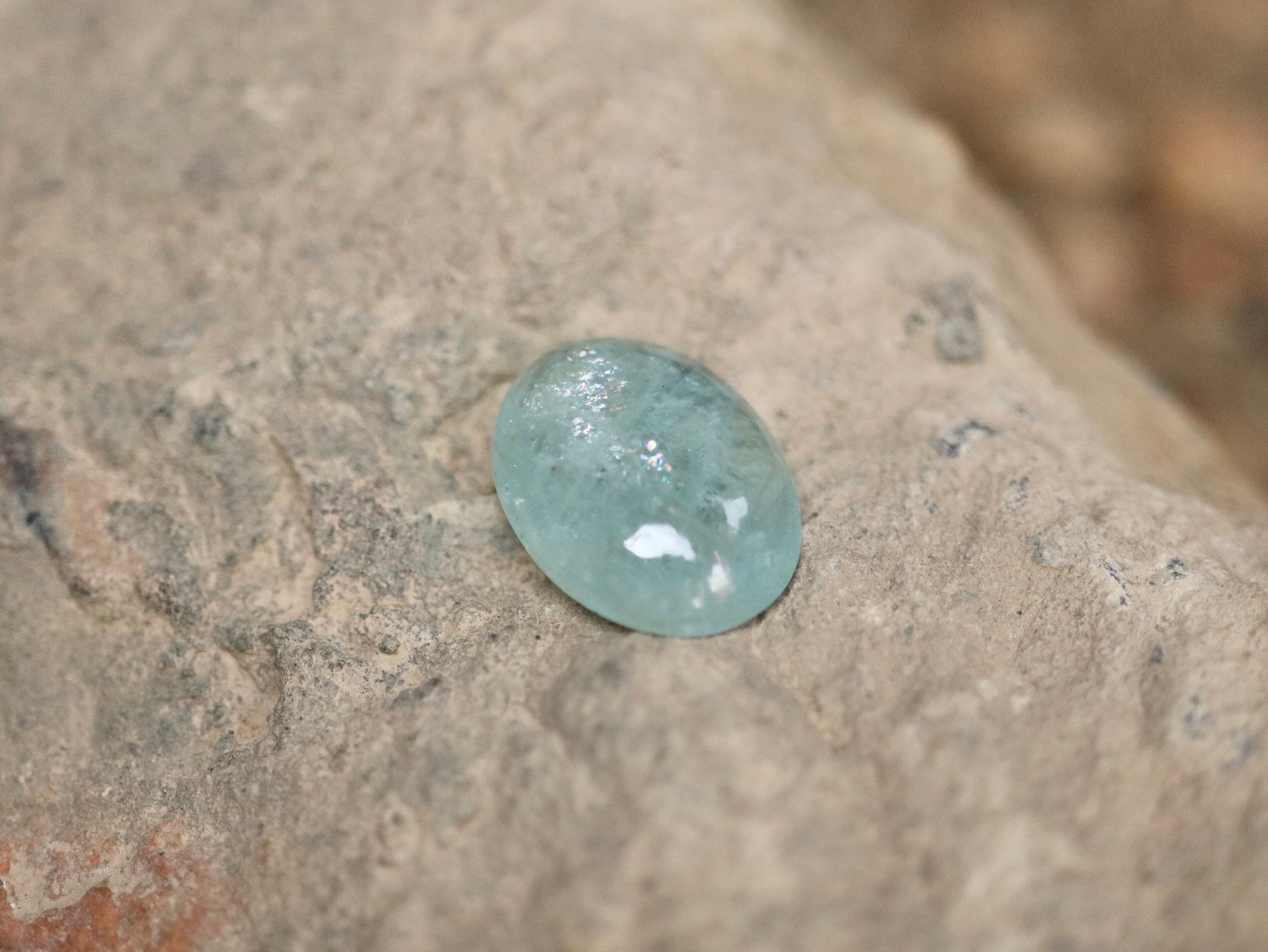 煌めく細かな虹を内包したアクアマリン