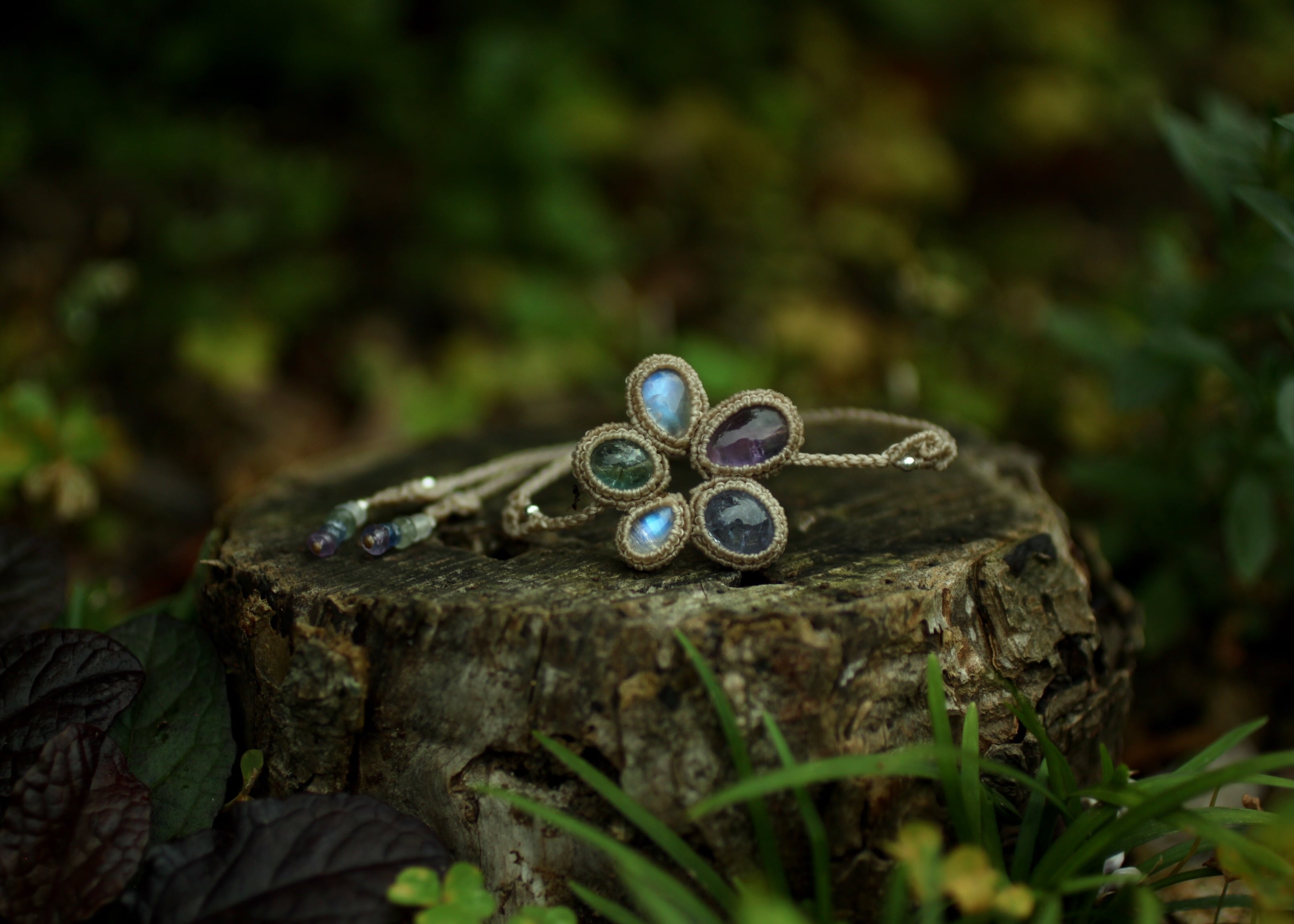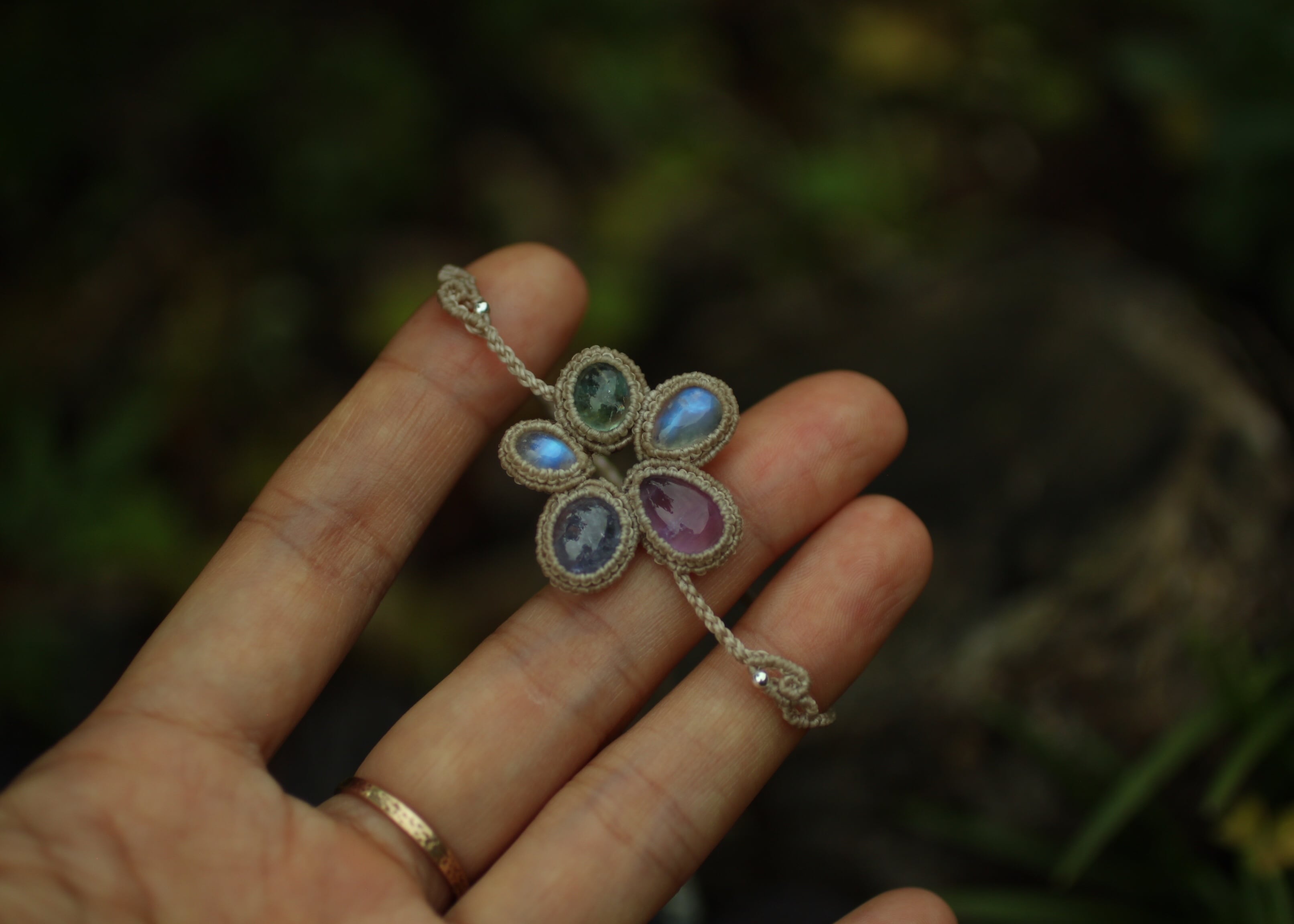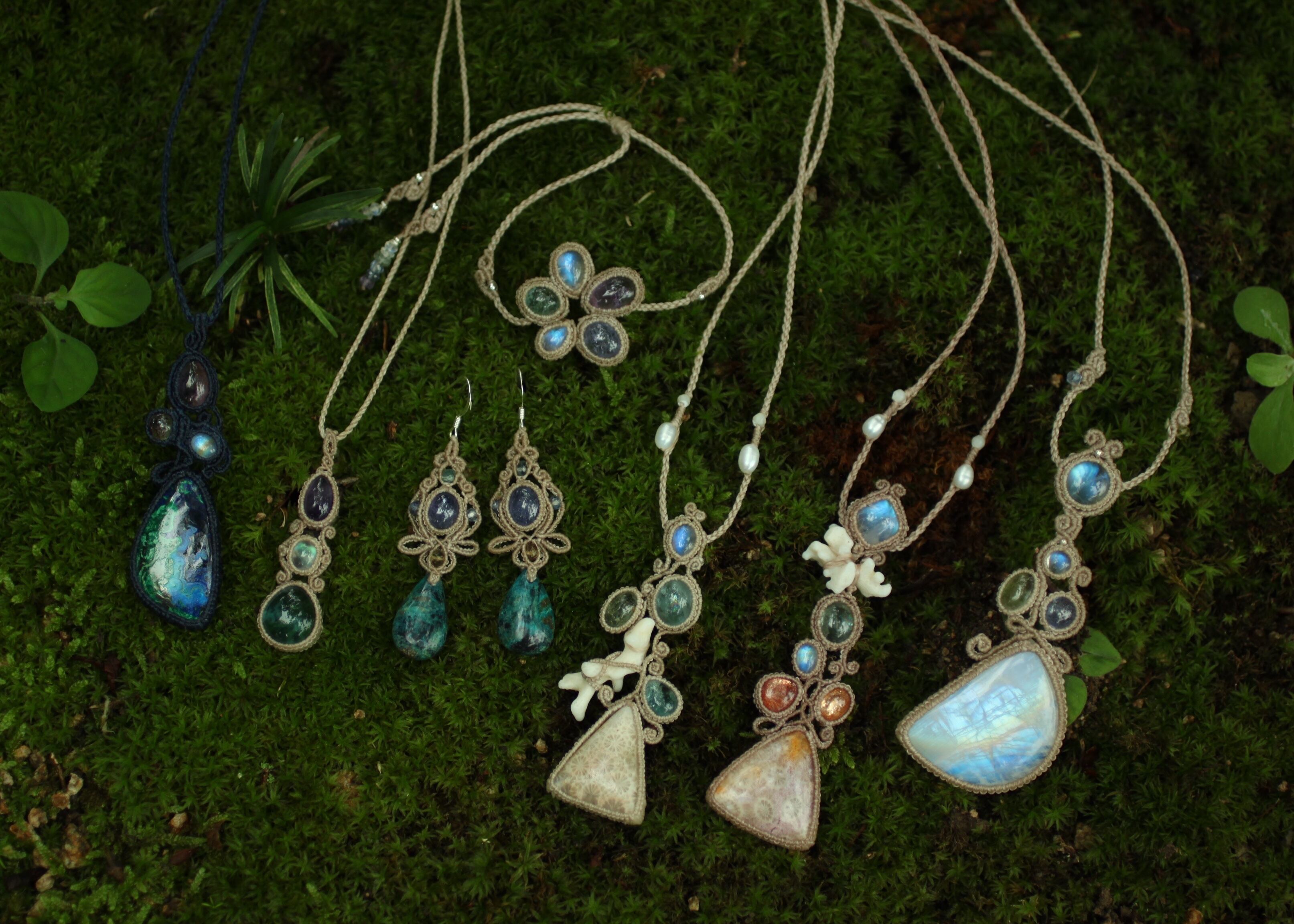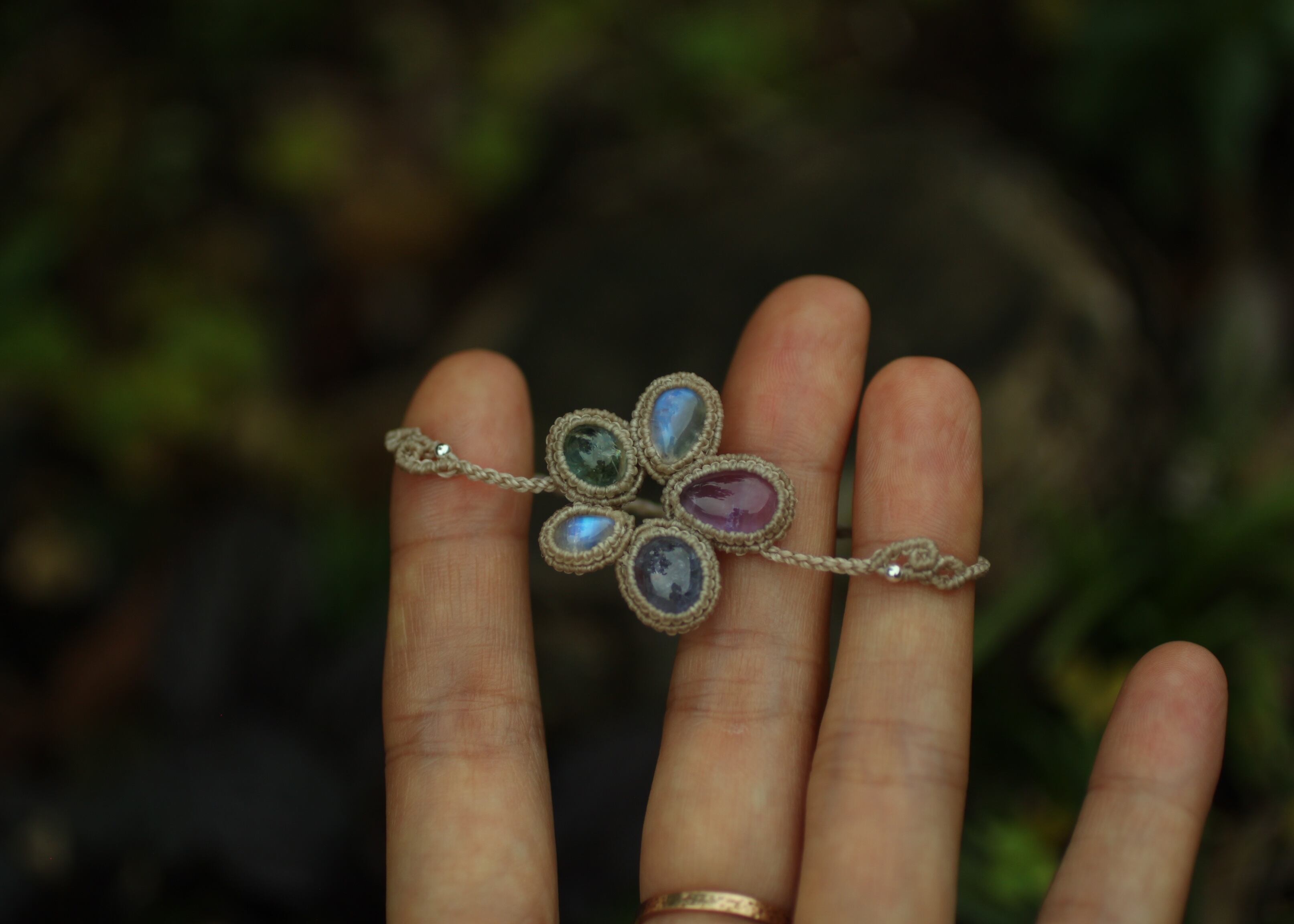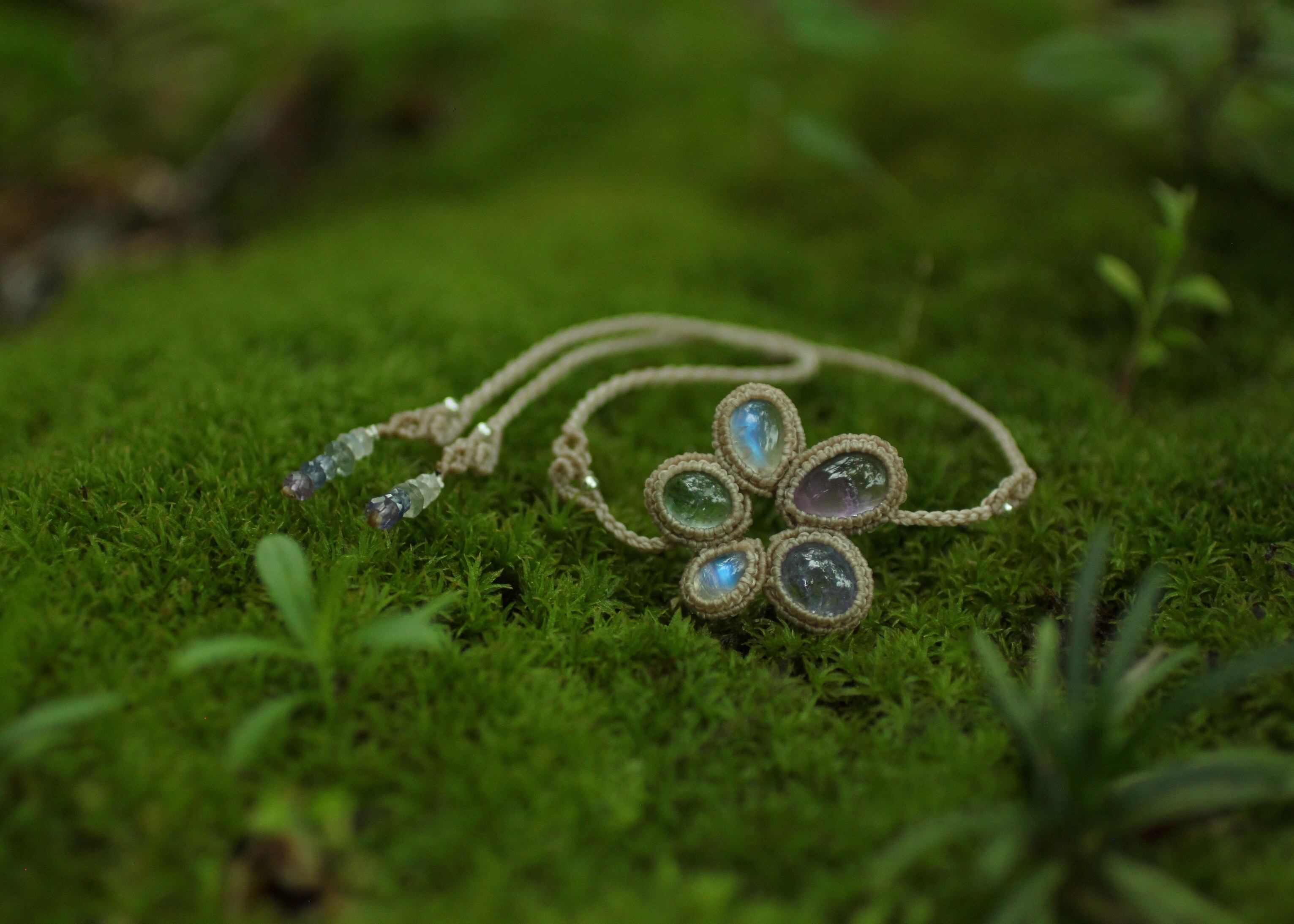 ※ それぞれの天然石を包むコードを始めトップ部分に使用したマクラメ編みコードは、手縫い糸ほどの細いコードを使い出来る限り天然石の表情と繊細な仕上がりを重視し時間をかけ丁寧に編みました。
