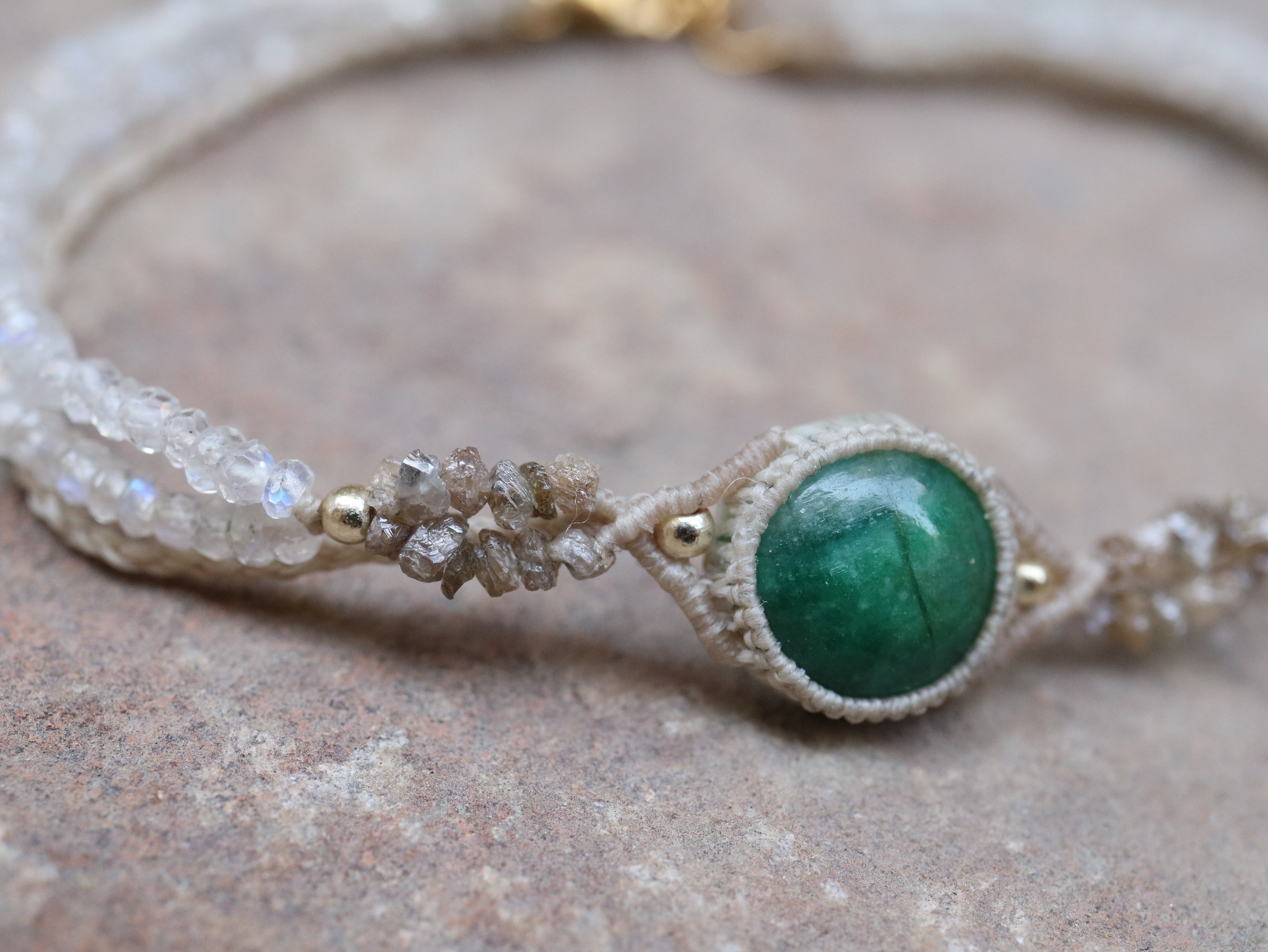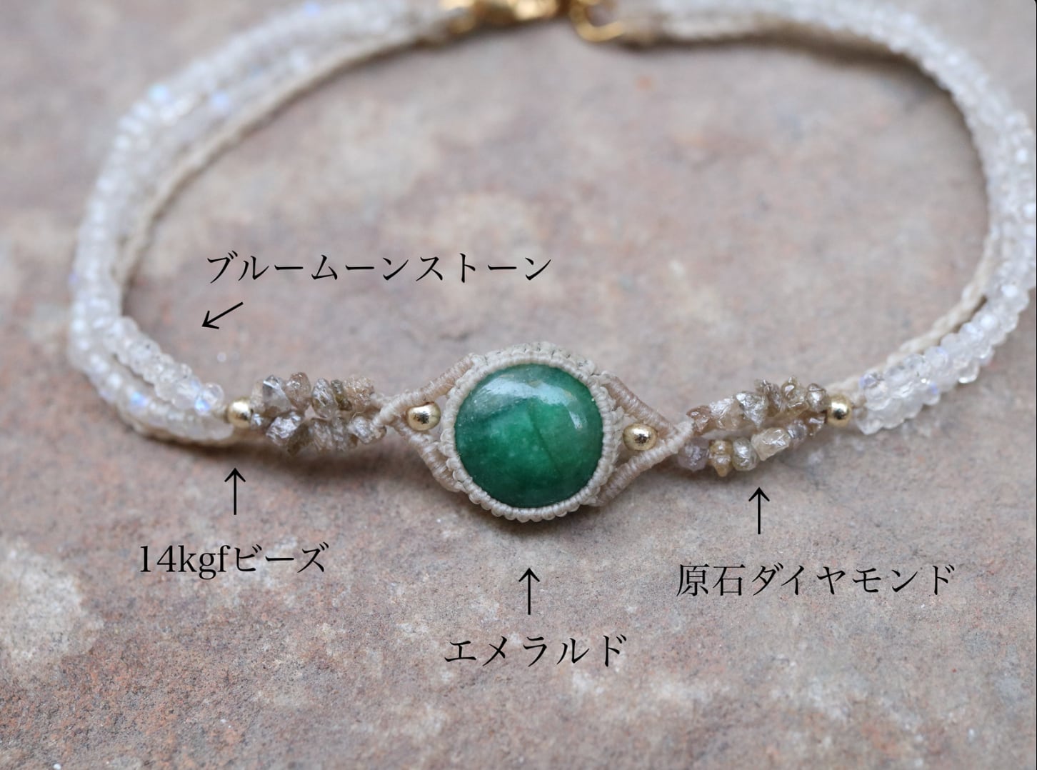 エメラルド × 原石ダイヤモンド × ムーンストーン