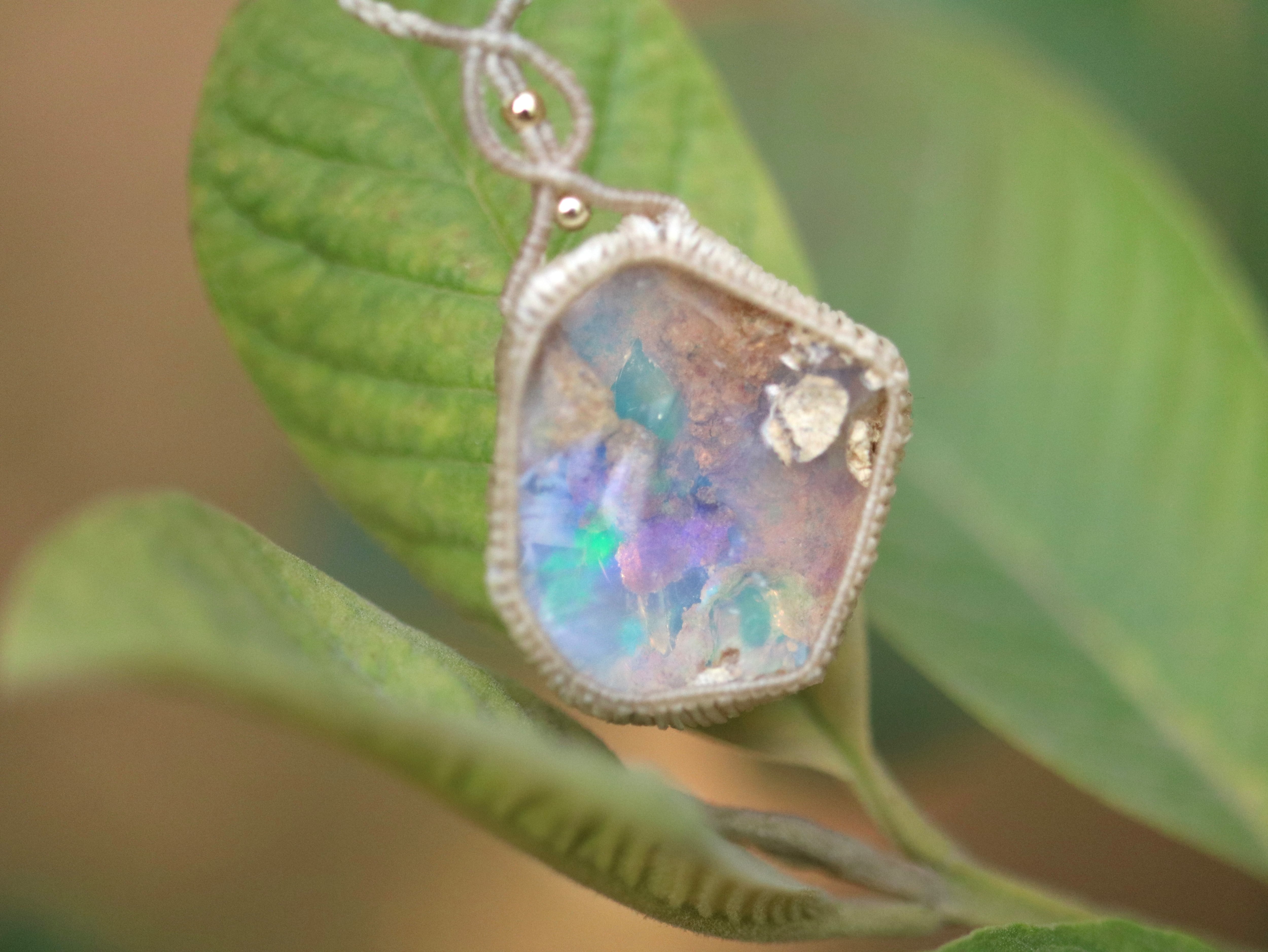 また日中、再び乾燥する環境下では写真のように、ほんのりベールを纏うように乳白色に戻り、遊色も再び華やかさを取り戻します、湿度の環境による変化をお楽しみ頂けましたら幸いです。