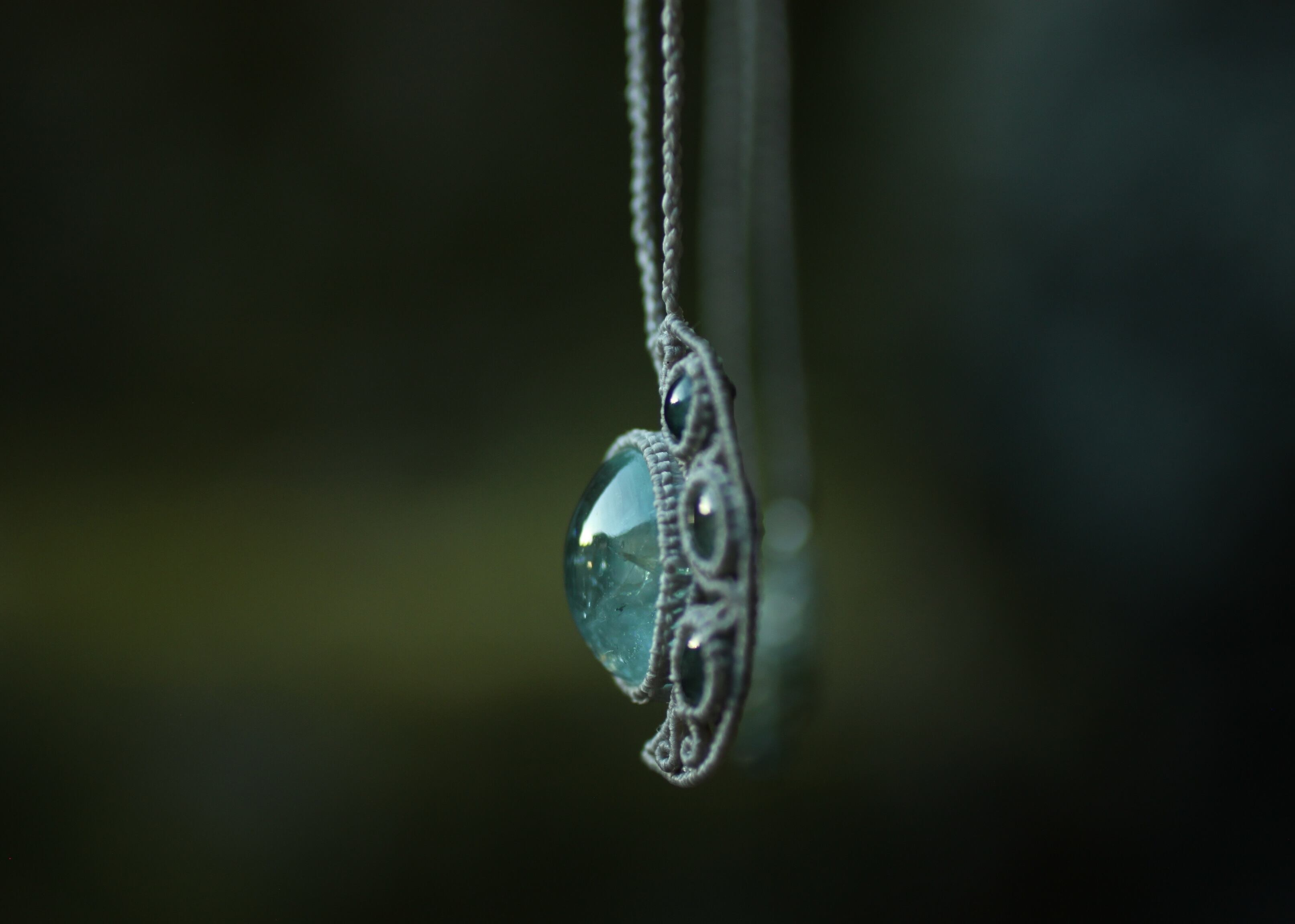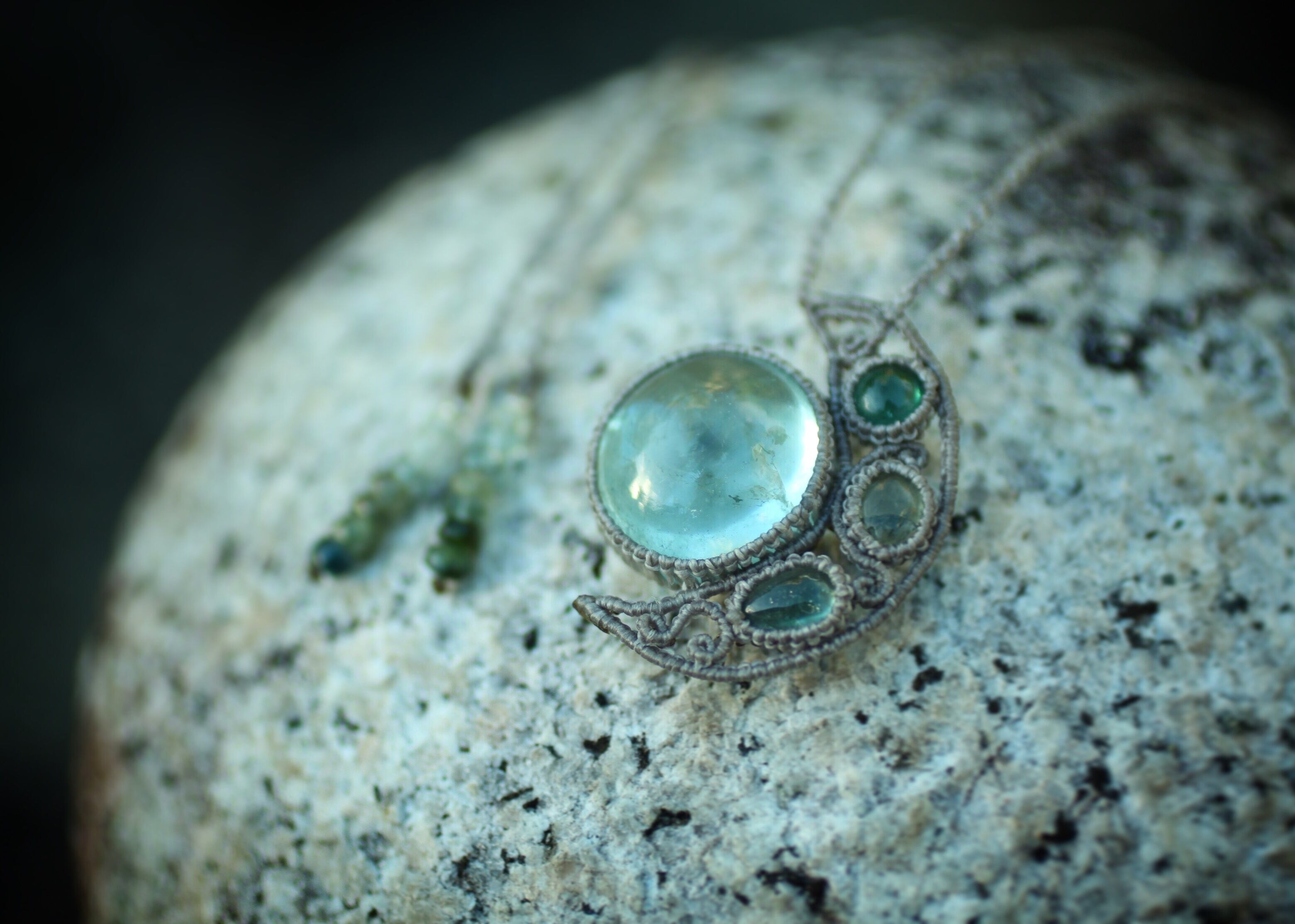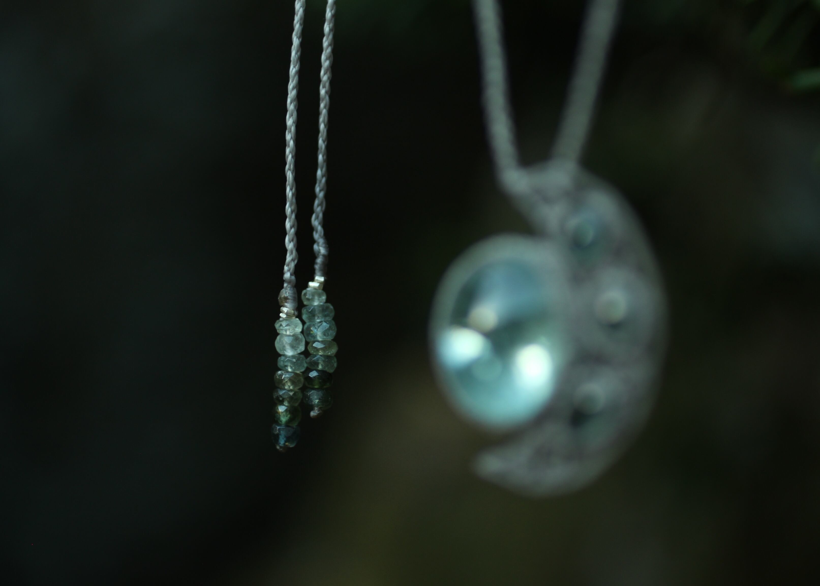※ 全ての天然石を包むコードを始めトップ部分に使用したマクラメ編みコードは、手縫い糸ほどの細いコードを使い出来る限り天然石の表情と繊細な仕上がりを重視し時間をかけ丁寧に編みました。