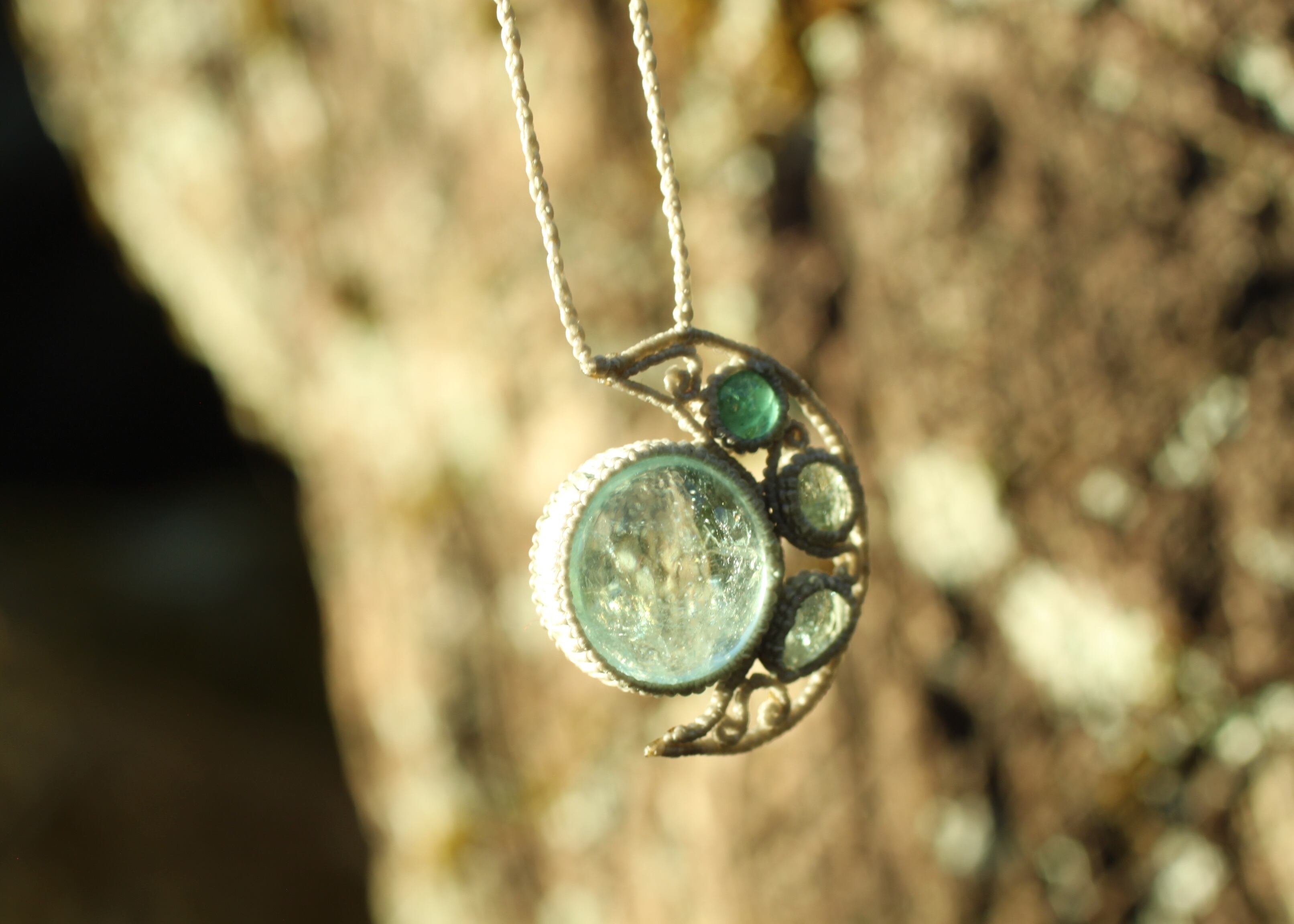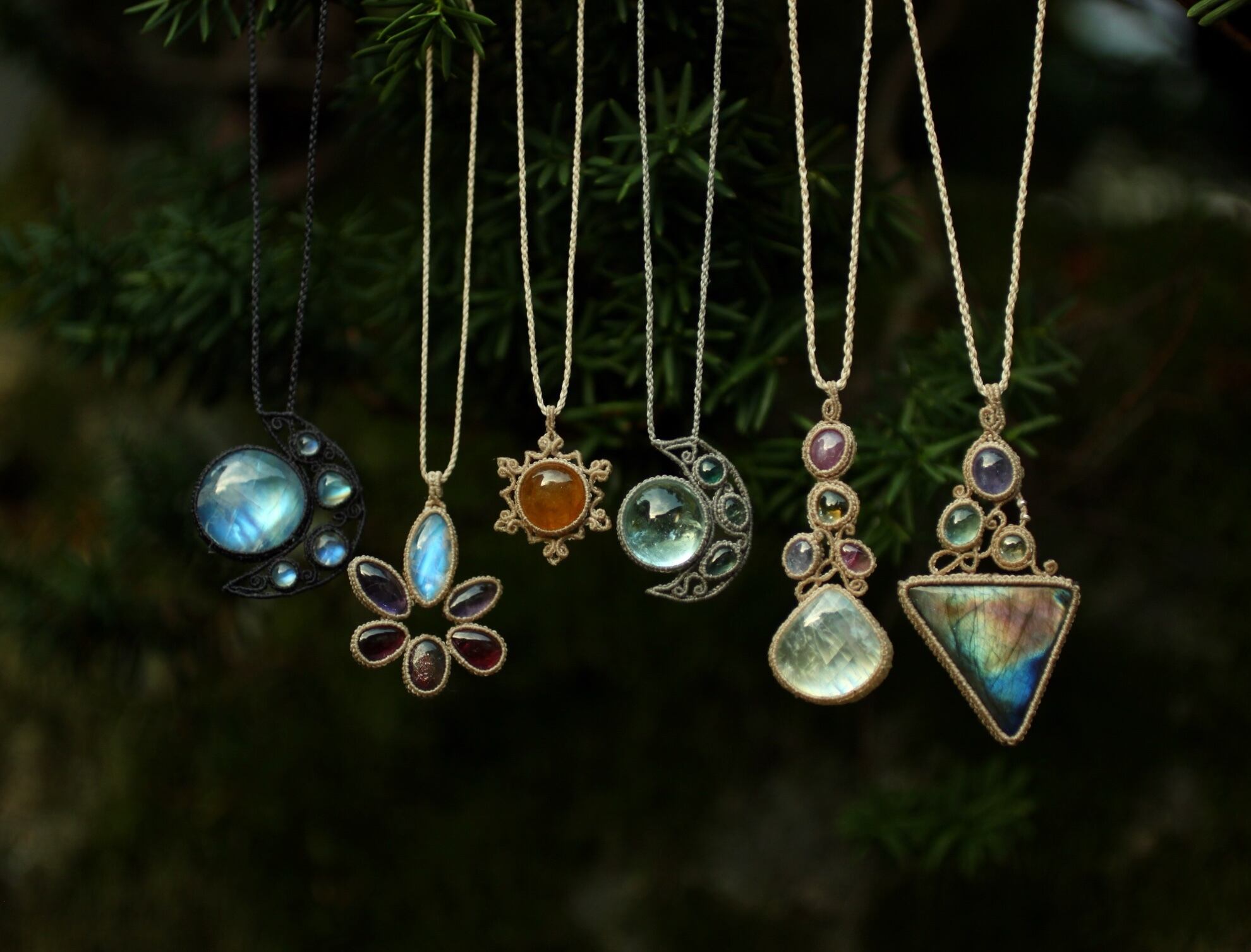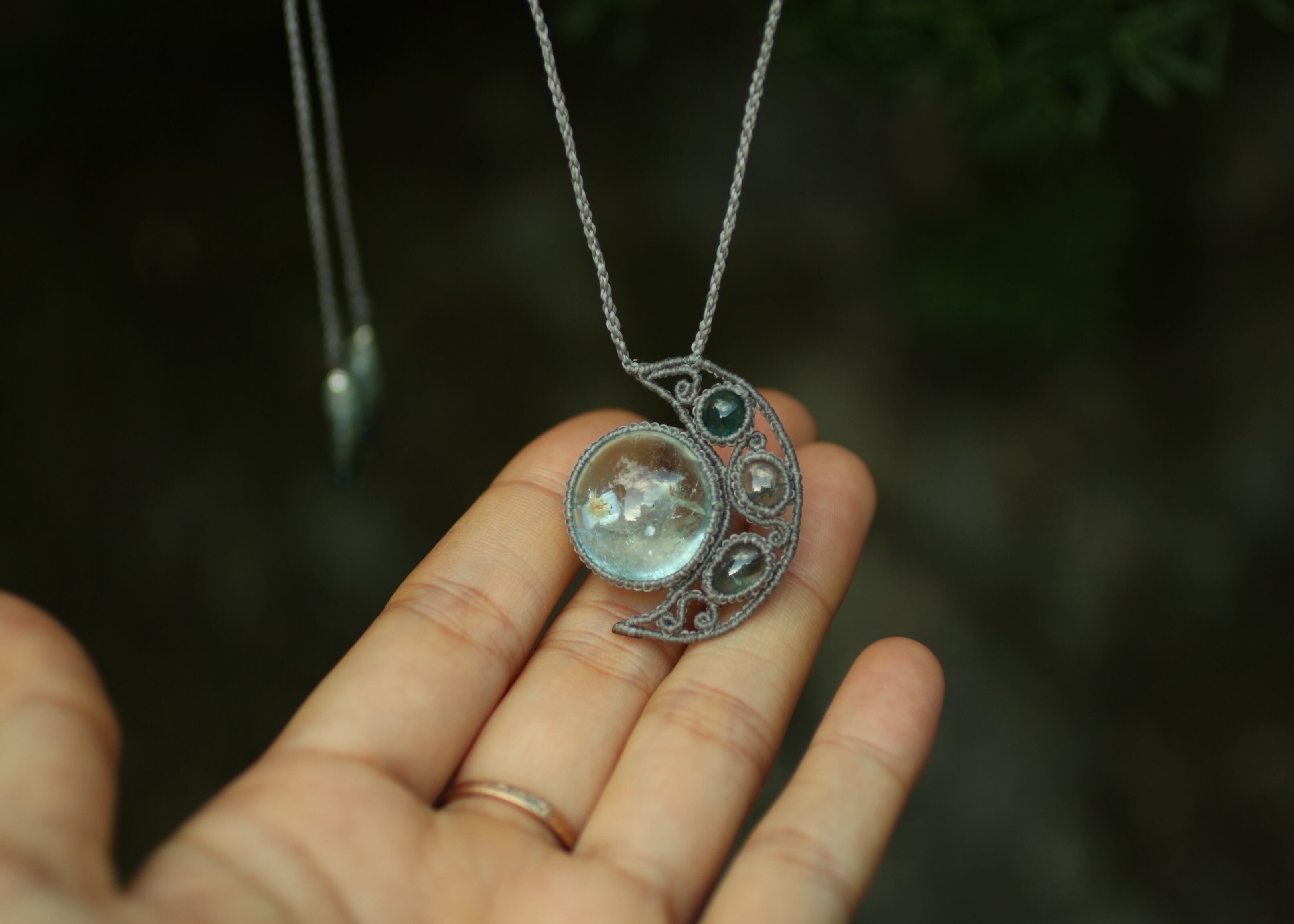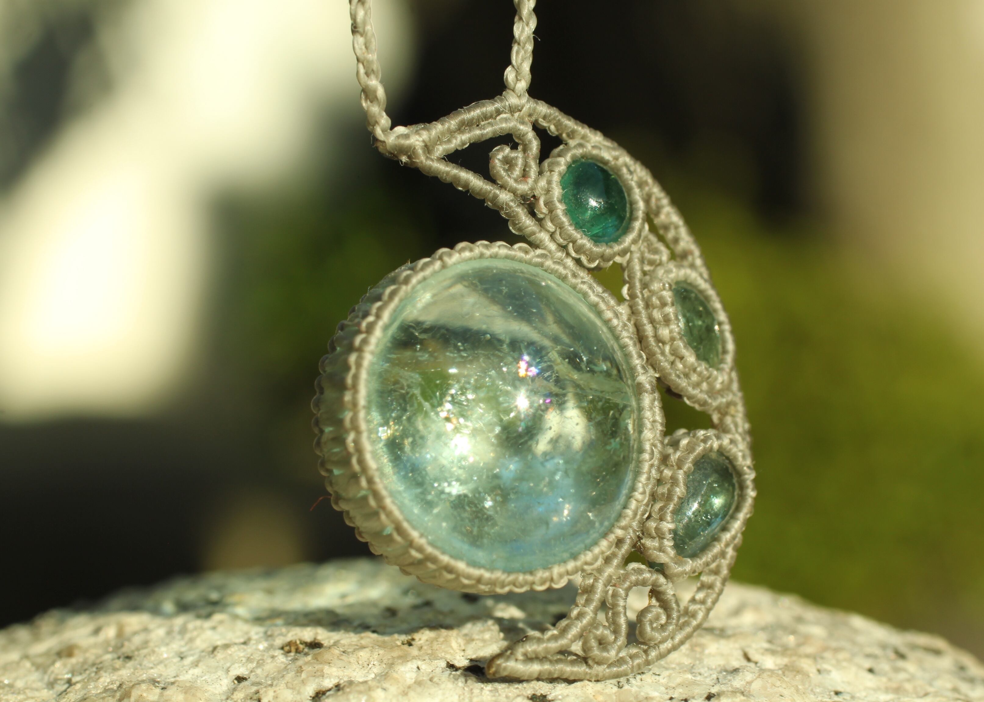 ※ 全ての天然石を包むコードを始めトップ部分に使用したマクラメ編みコードは、手縫い糸ほどの細いコードを使い出来る限り天然石の表情と繊細な仕上がりを重視し時間をかけ丁寧に編みました。