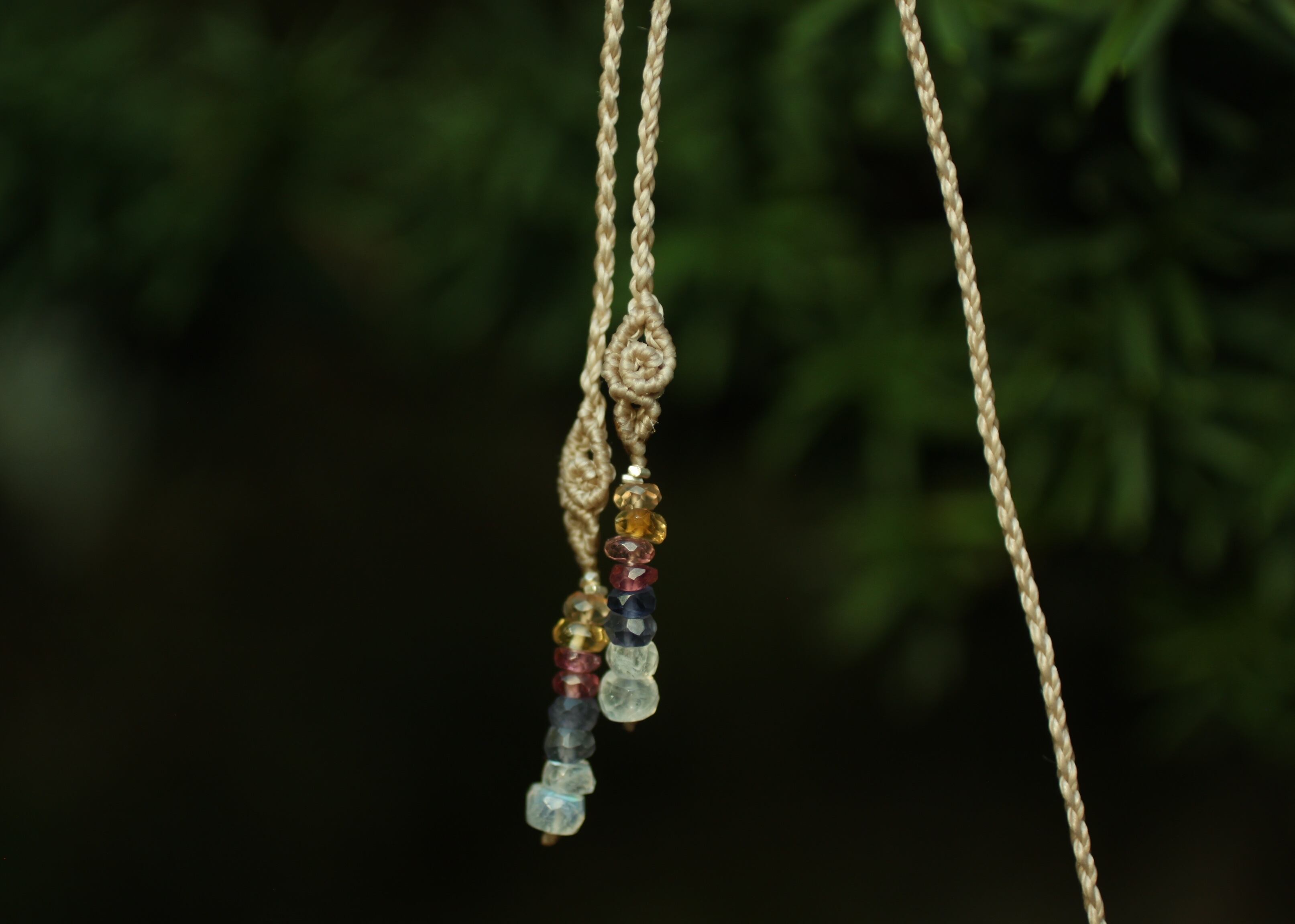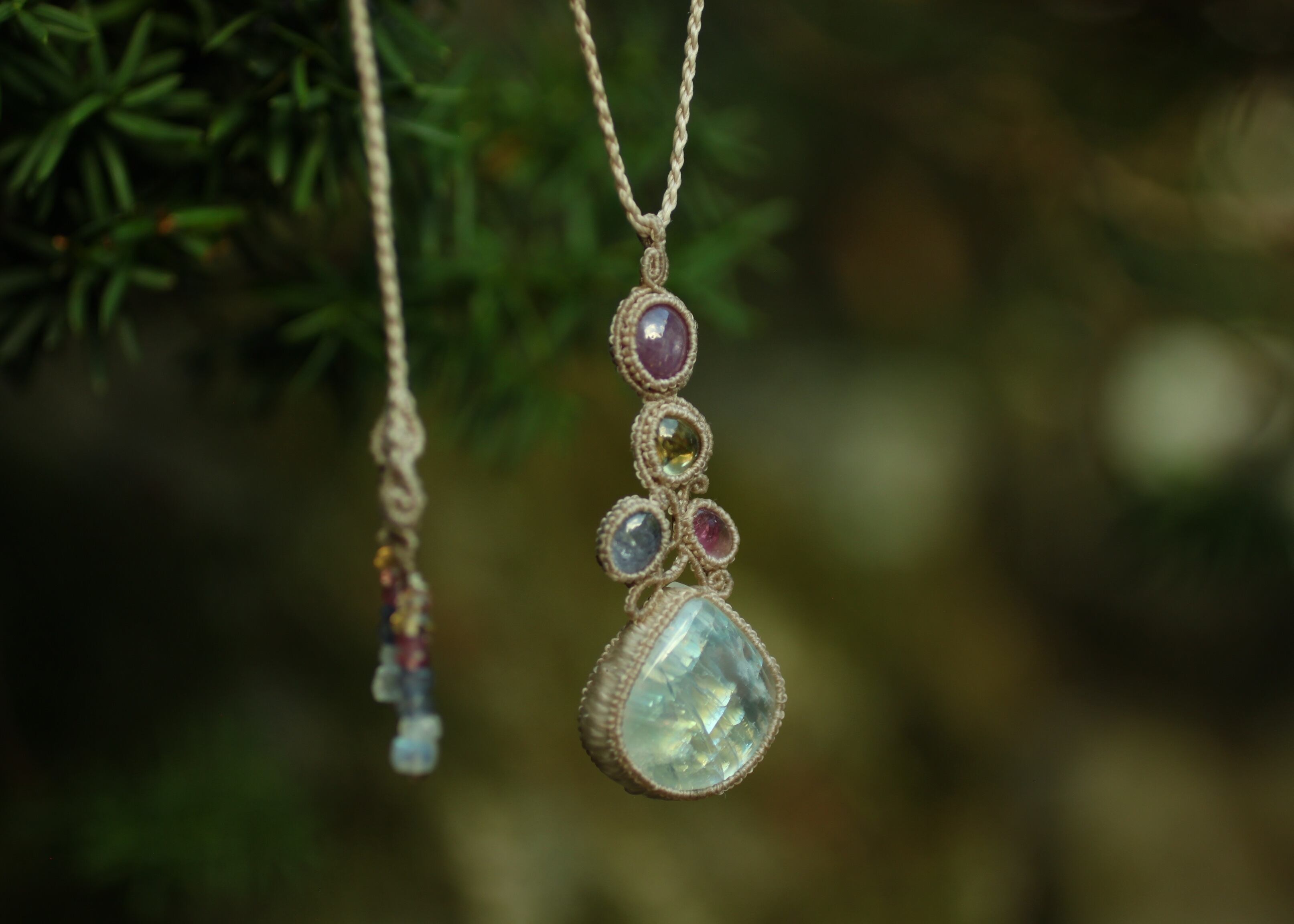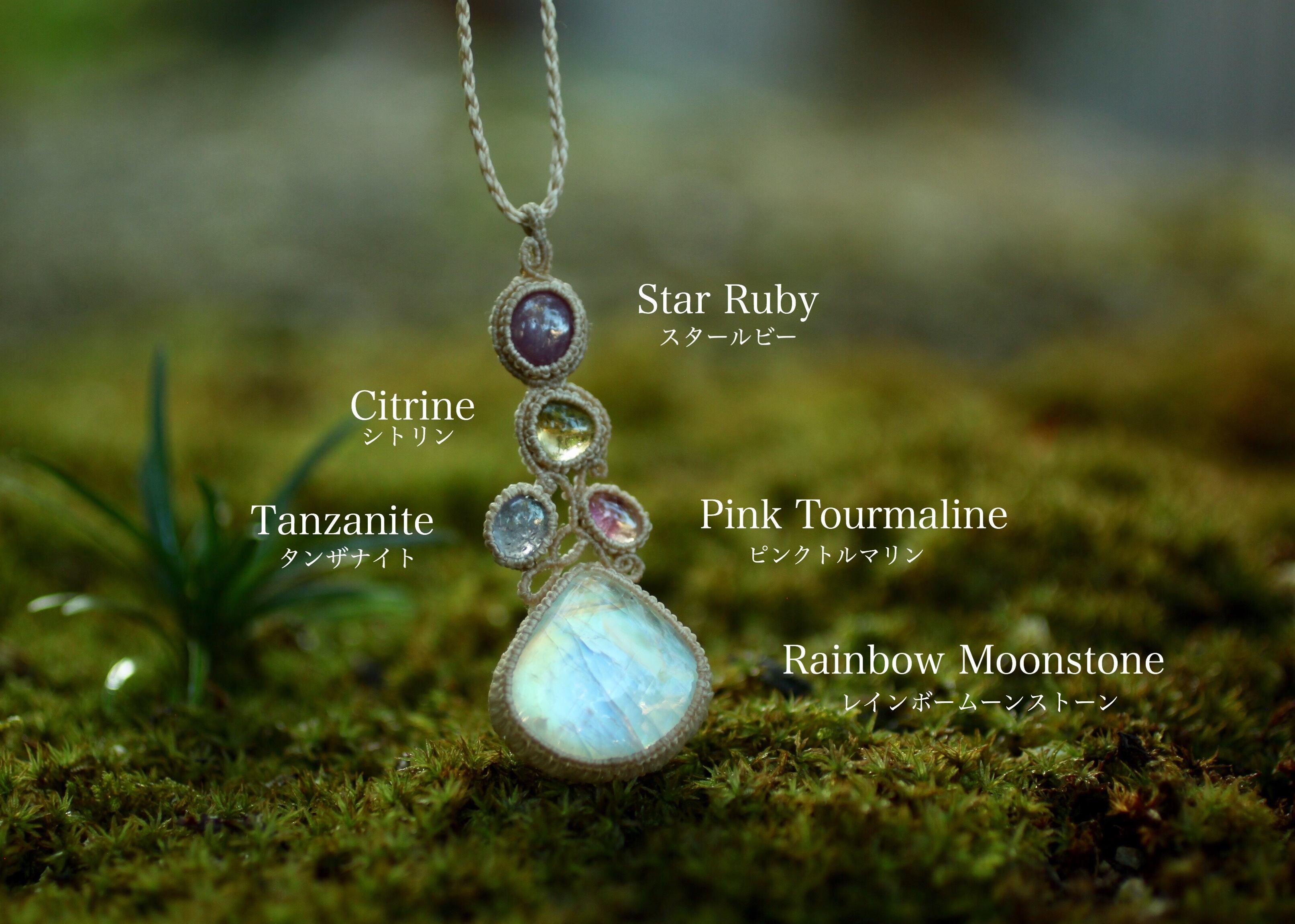 ※ 全ての天然石を包むコードを始めトップ部分に使用したマクラメ編みコードは、手縫い糸ほどの細いコードを使い出来る限り天然石の表情と繊細な仕上がりを重視し時間をかけ丁寧に編みました。