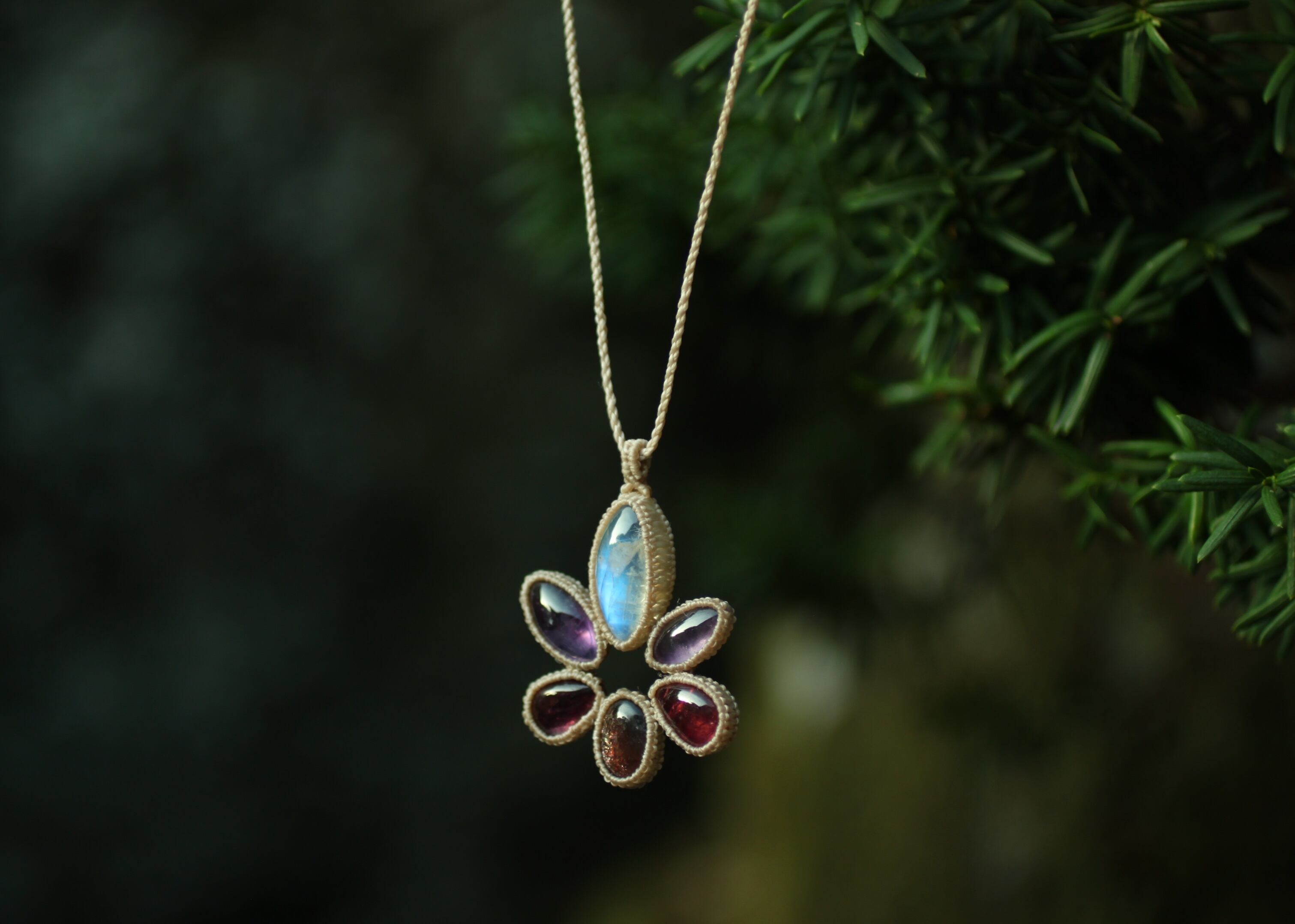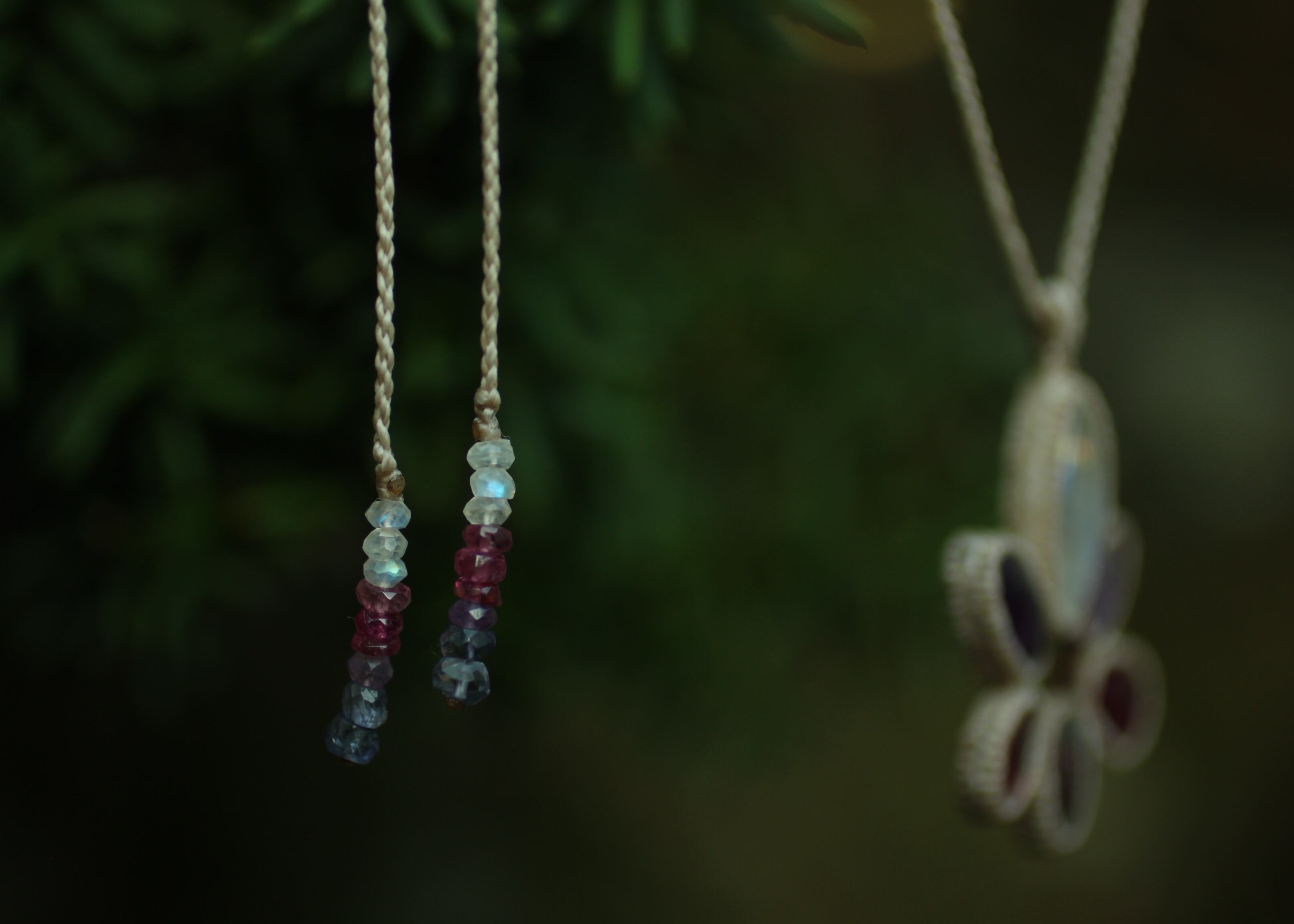 ※ 全ての天然石を包むコードは、手縫い糸ほどの細いコードを使い出来る限り天然石の表情と繊細な仕上がりを重視し時間をかけ丁寧に編みました。