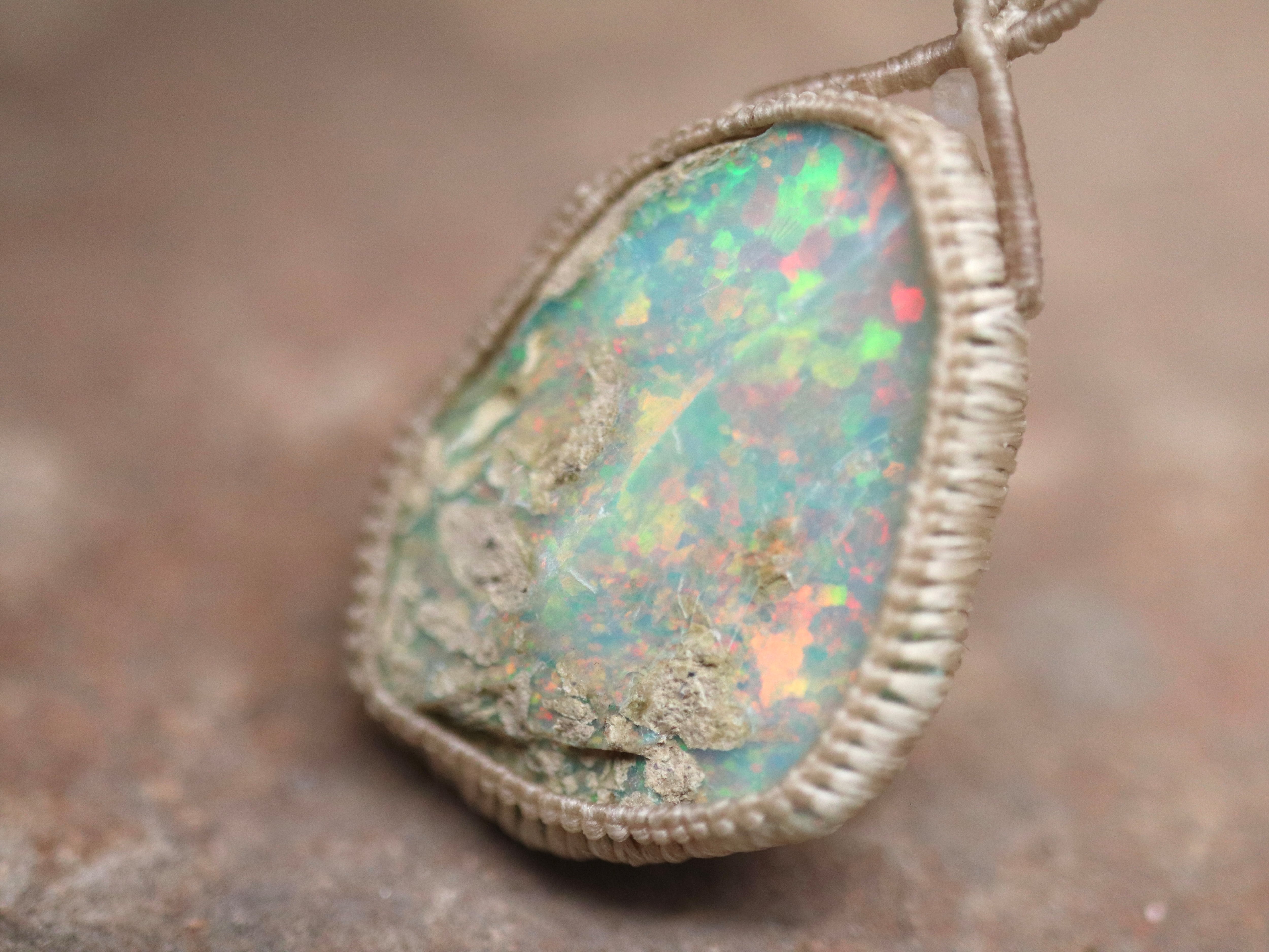 水との親和性が高く湿度の環境により変化の見られる天然石ですが、こちらは比較的変化は見られず、常に溢れんばかりの遊色をお楽しみいただけます。