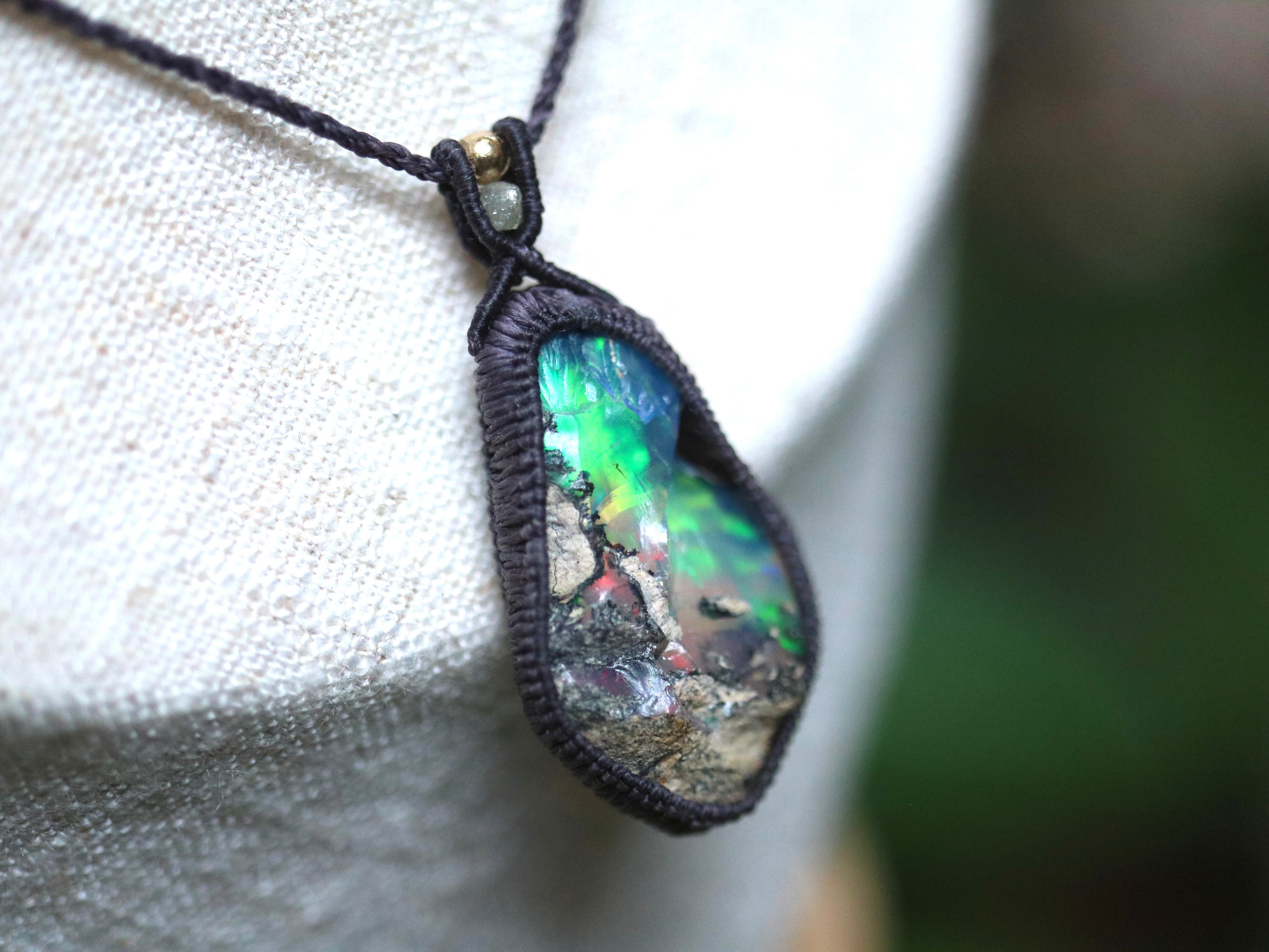 こちらのオパールは、写真のように若干乳白色を帯びた時の方が、遊色が広がるように浮かび美しいと感じています。