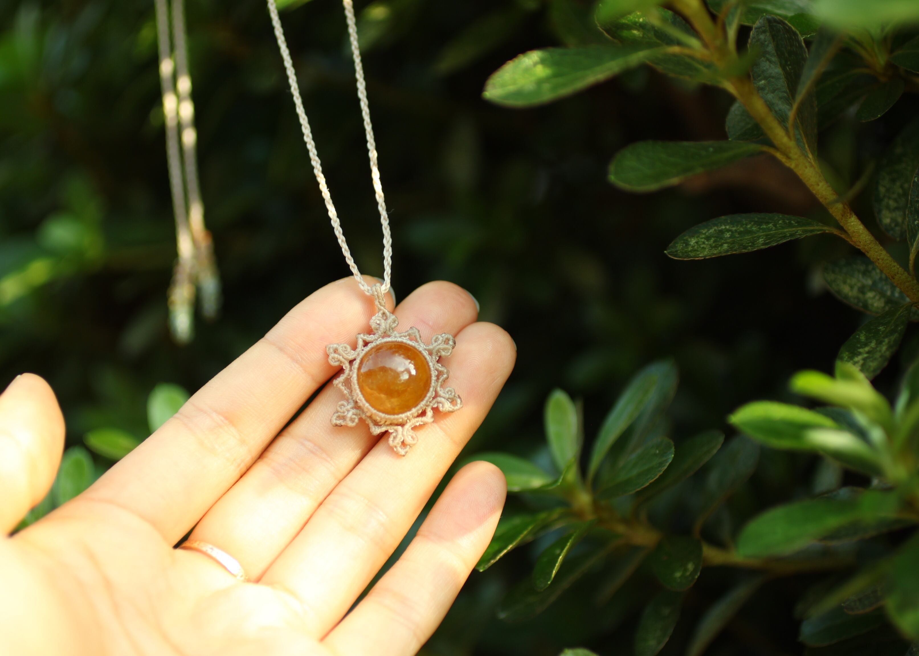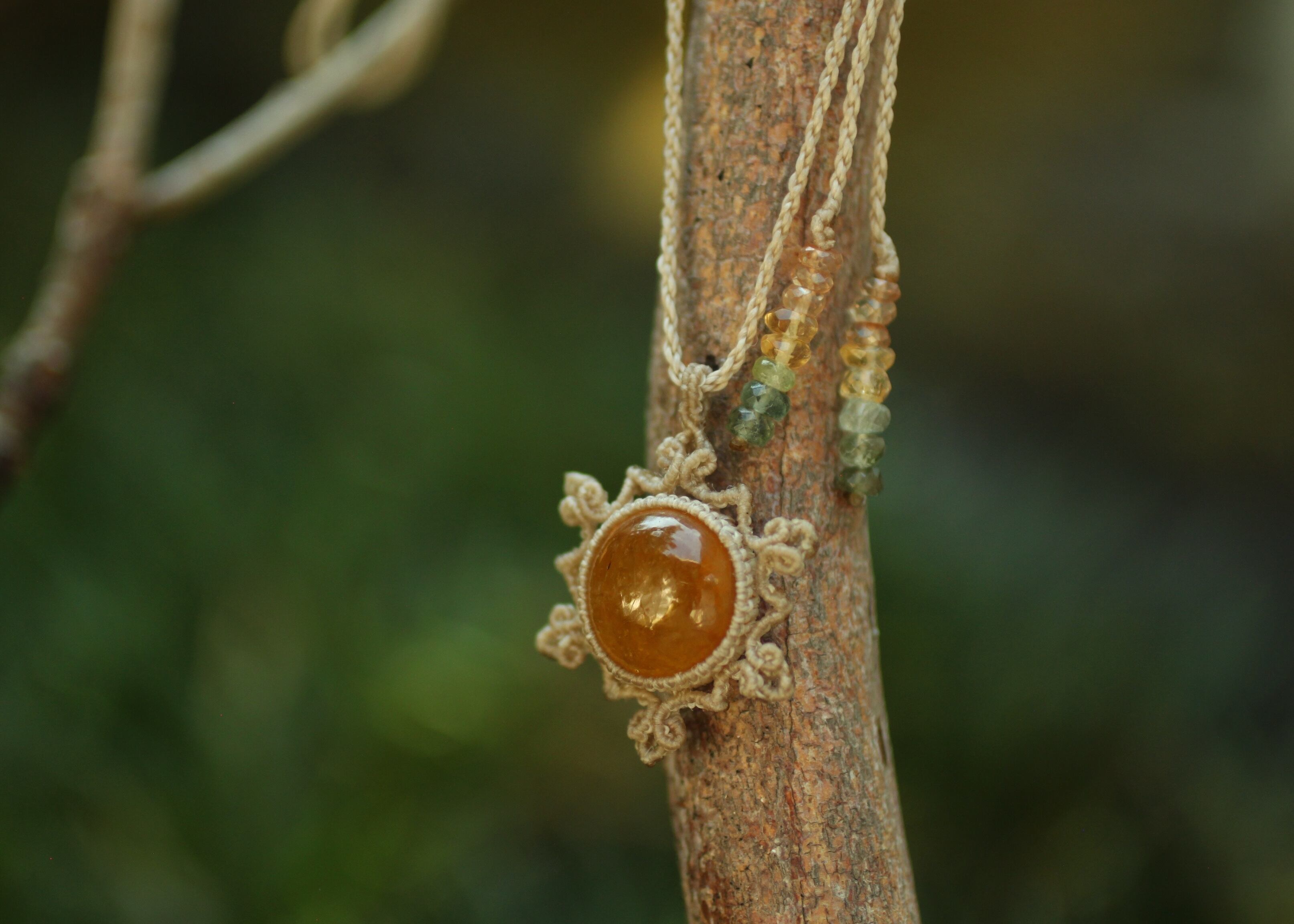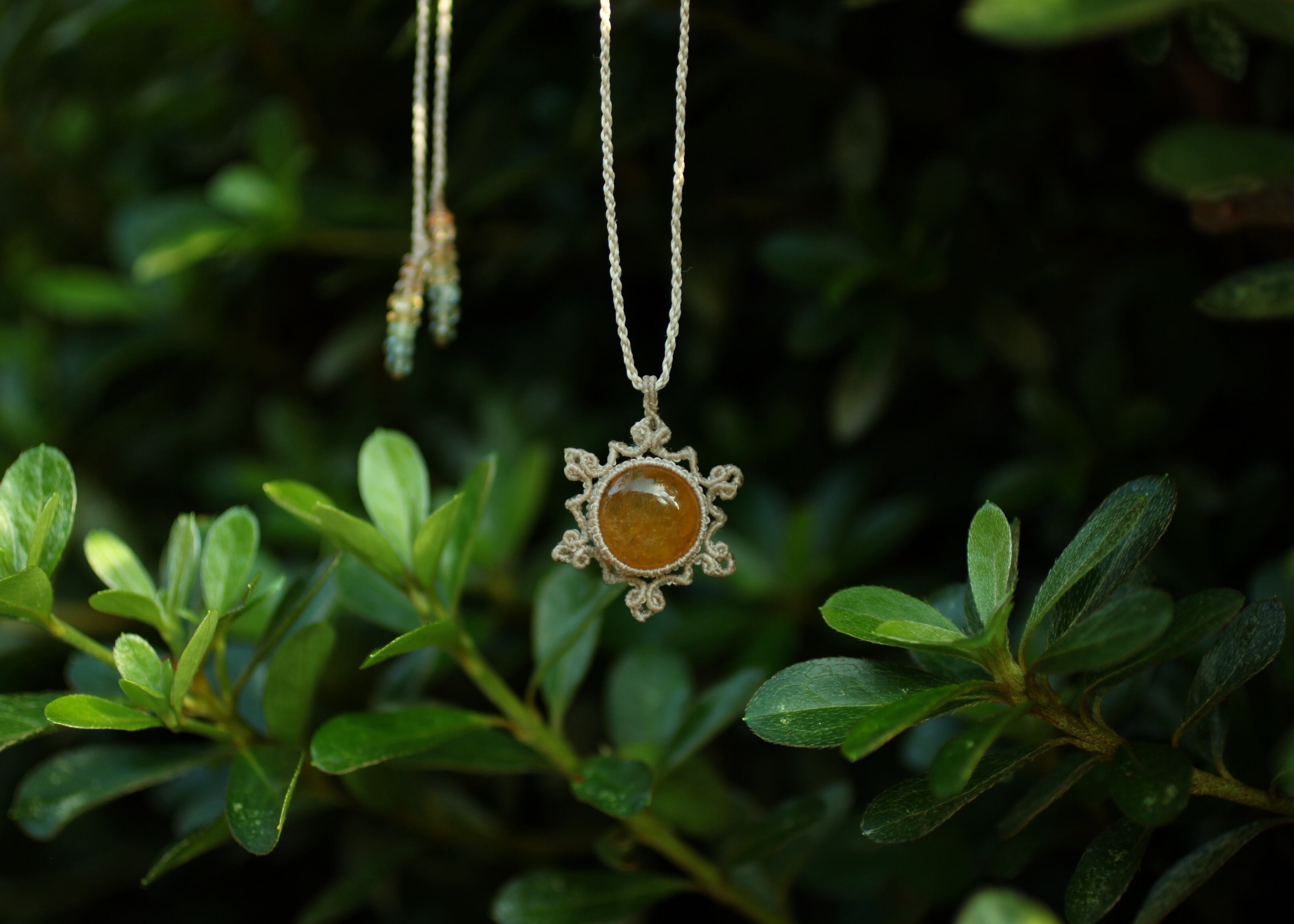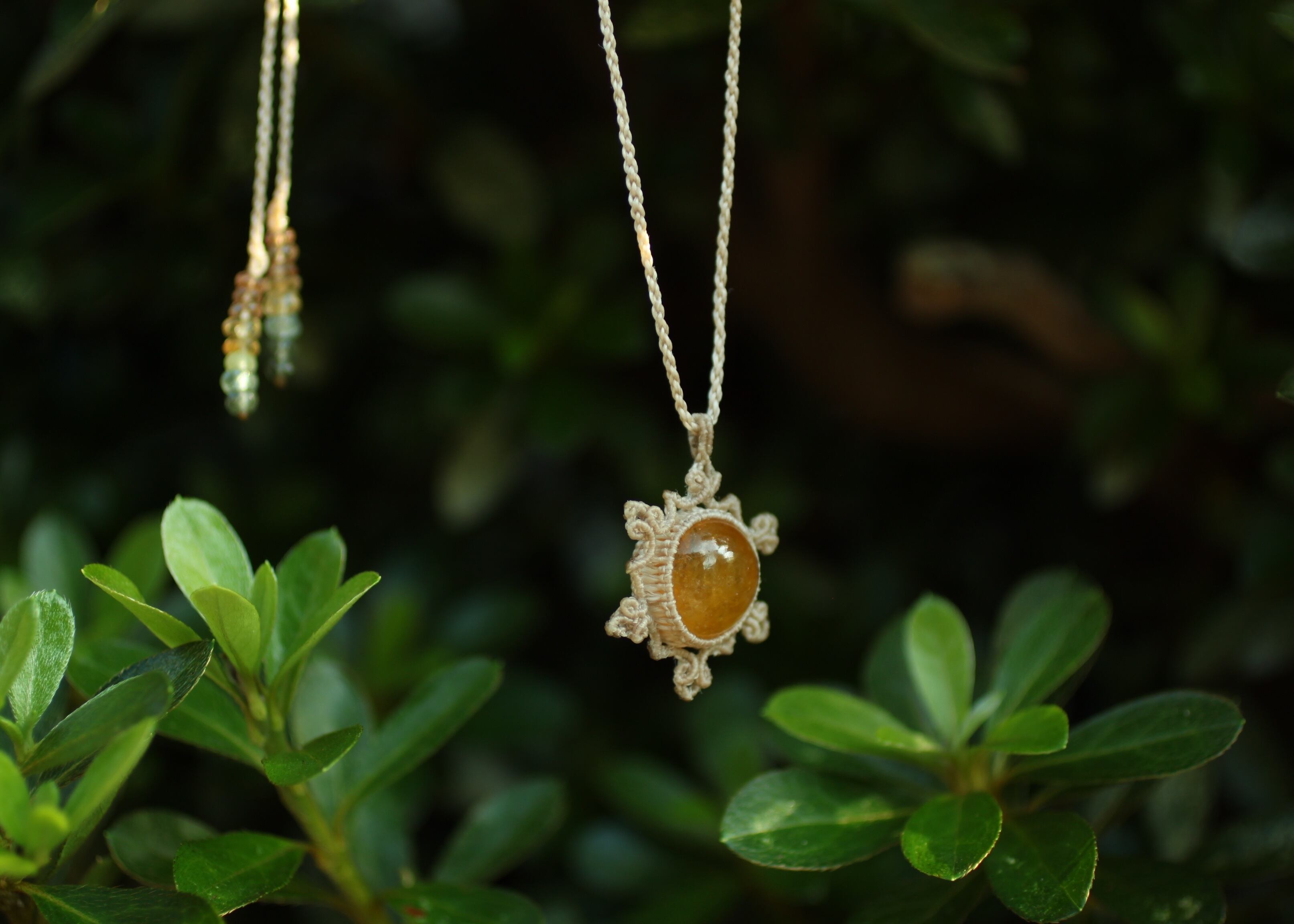 ※ 全ての天然石を包むコードを始めトップ部分に使用したマクラメ編みコードは、手縫い糸ほどの細いコードを使い出来る限り天然石の表情と繊細な仕上がりを重視し時間をかけ丁寧に編みました。