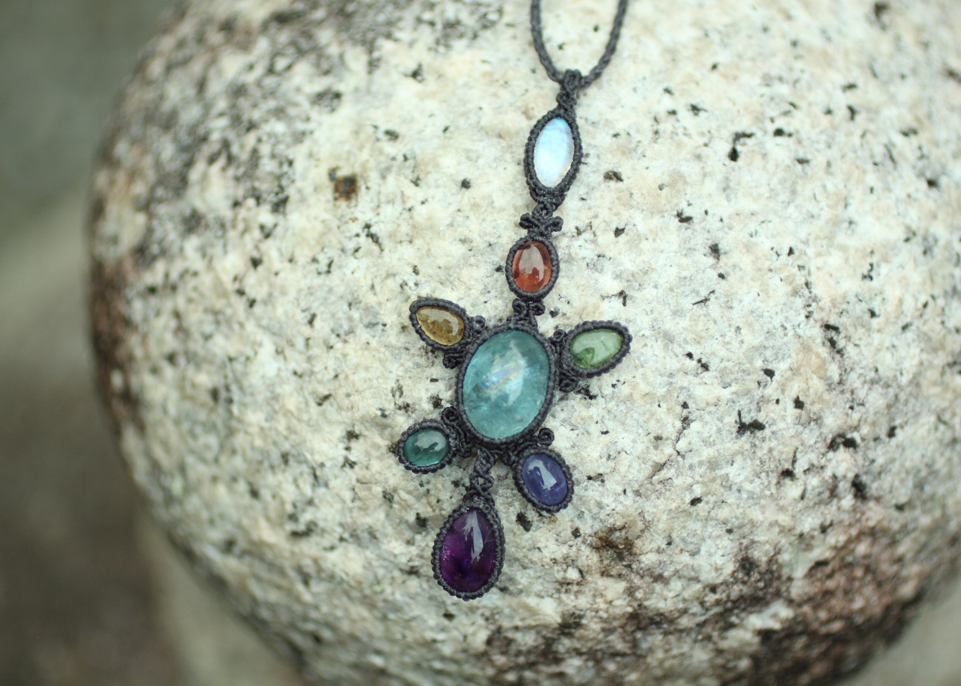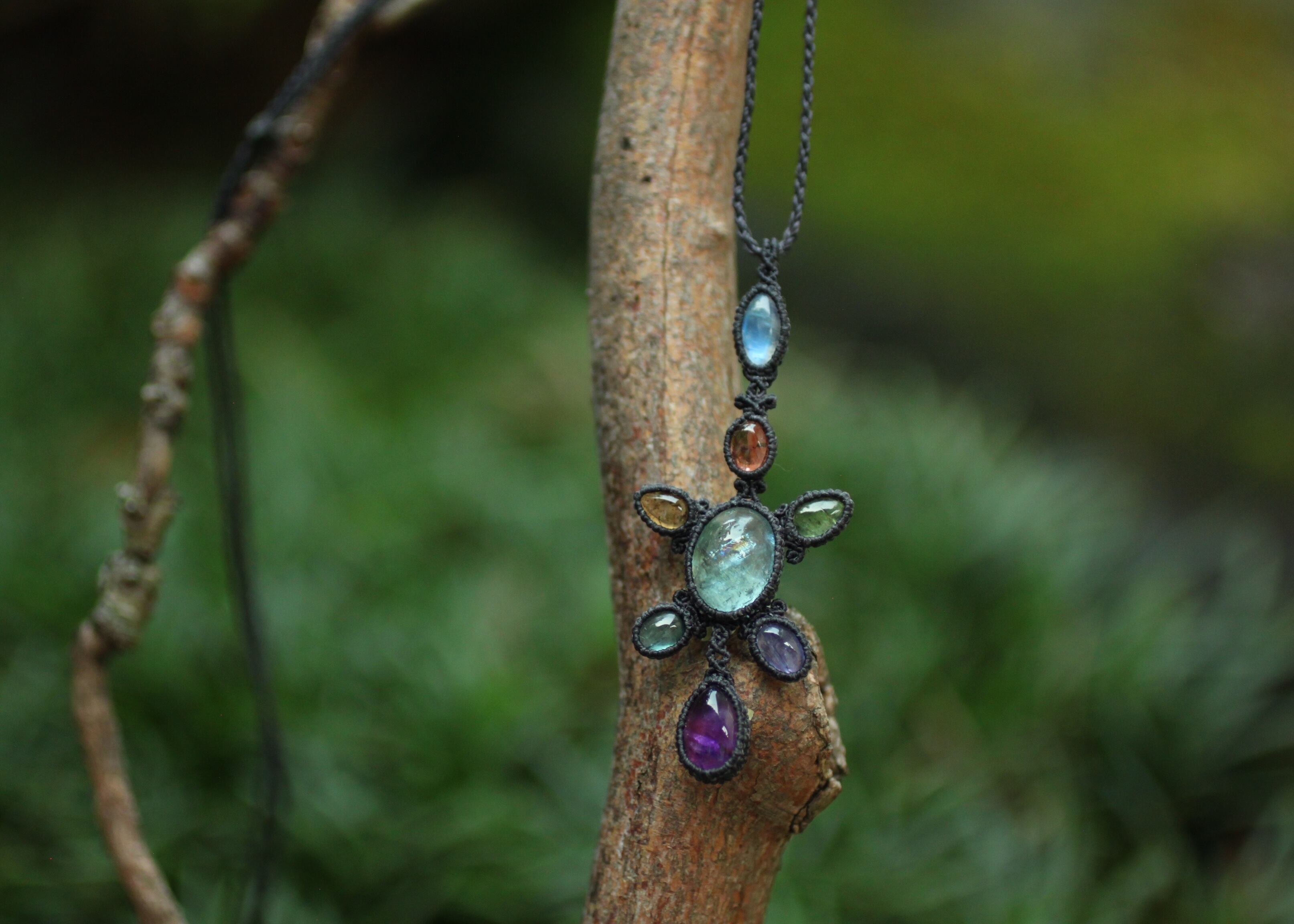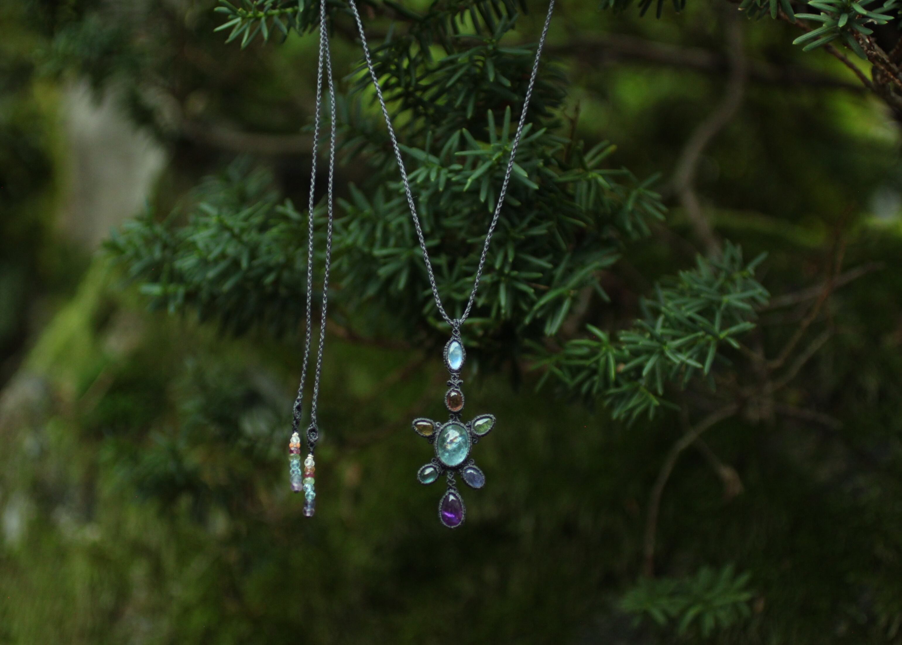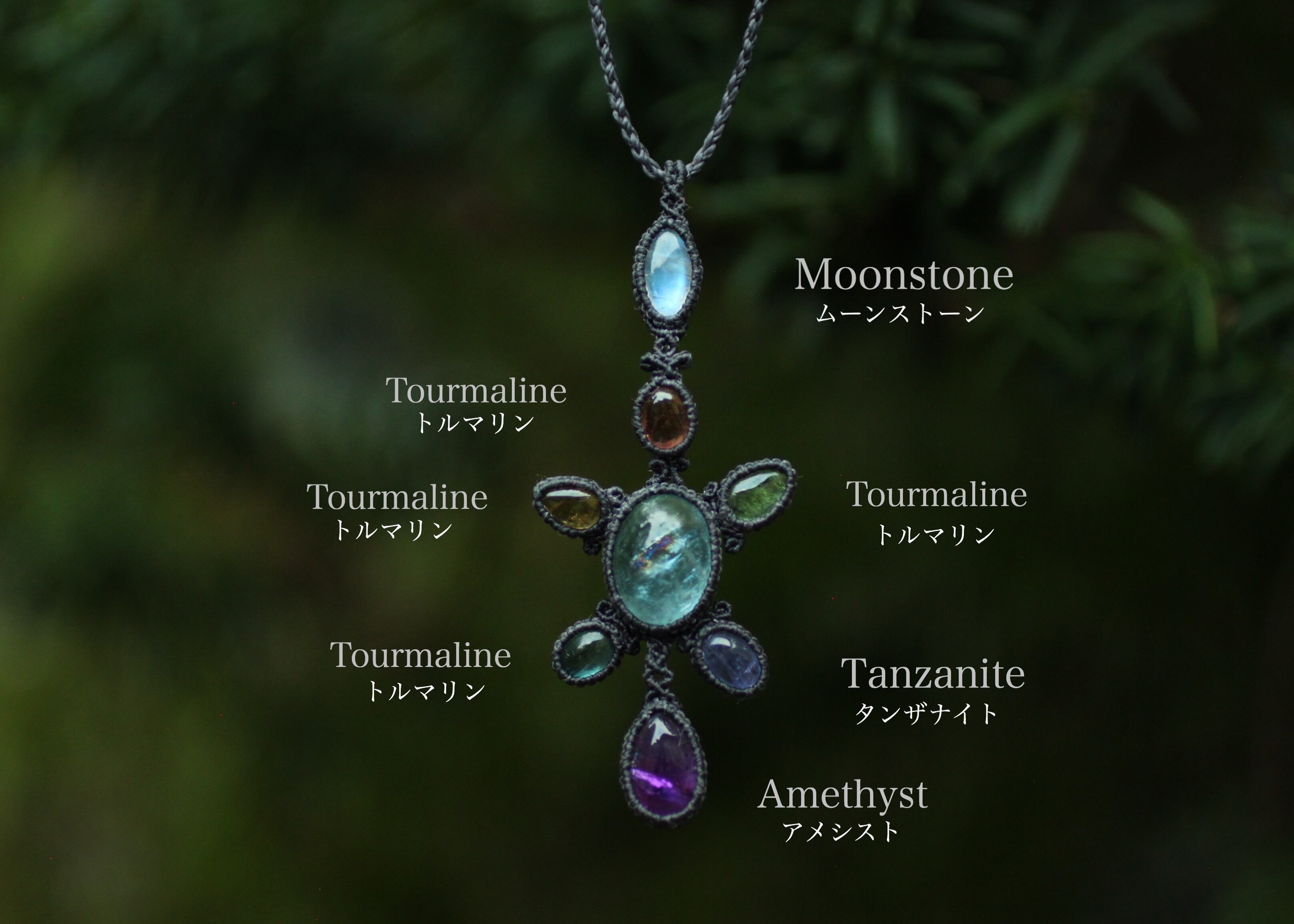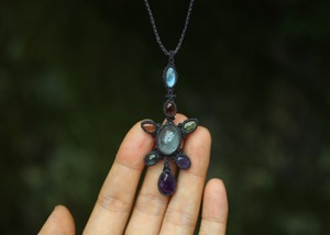 ※ 全ての天然石を包むコードを始めトップ部分に使用したマクラメ編みコードは、手縫い糸ほどの細いコードを使い出来る限り天然石の表情と繊細な仕上がりを重視し時間をかけ丁寧に編みました。