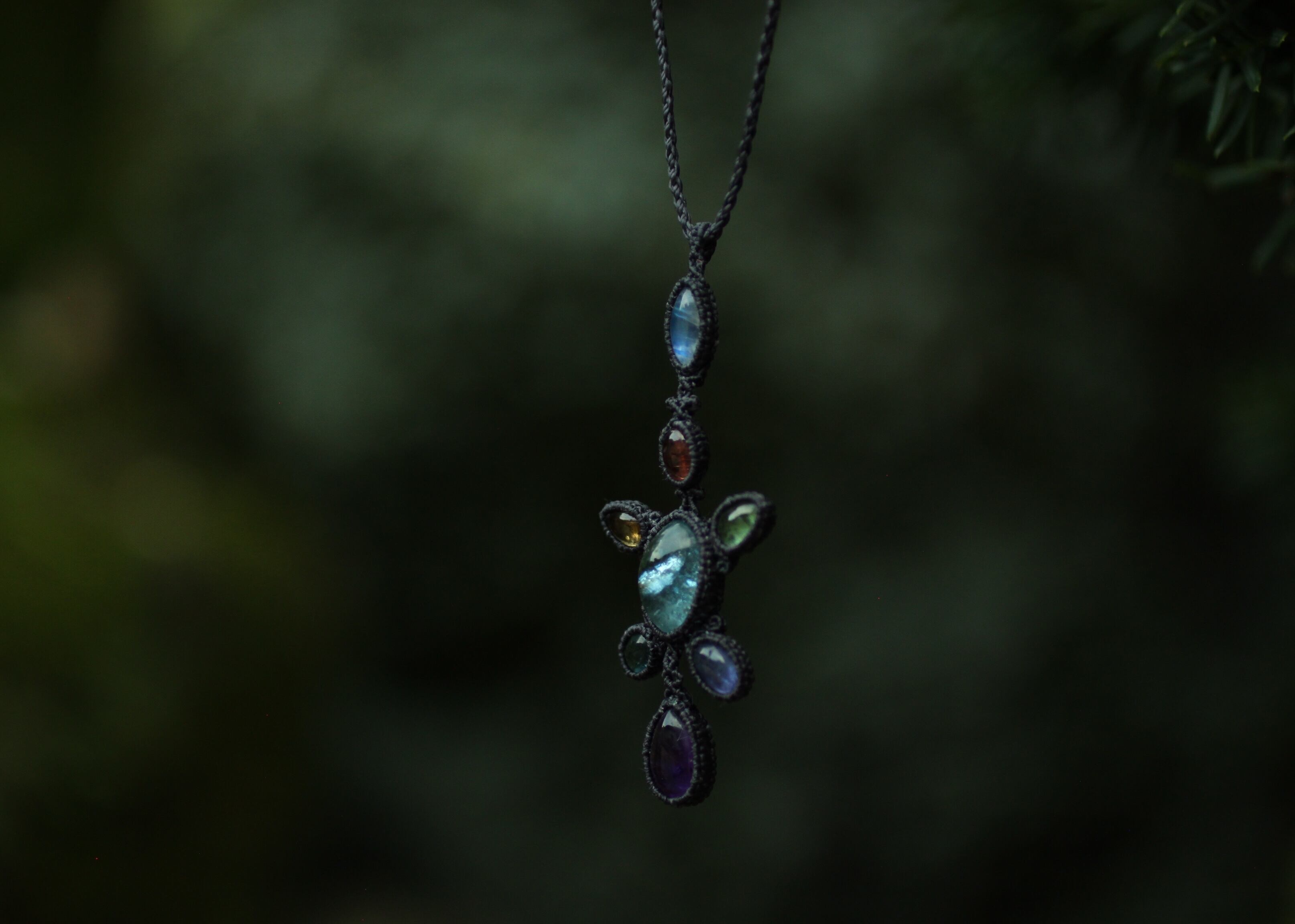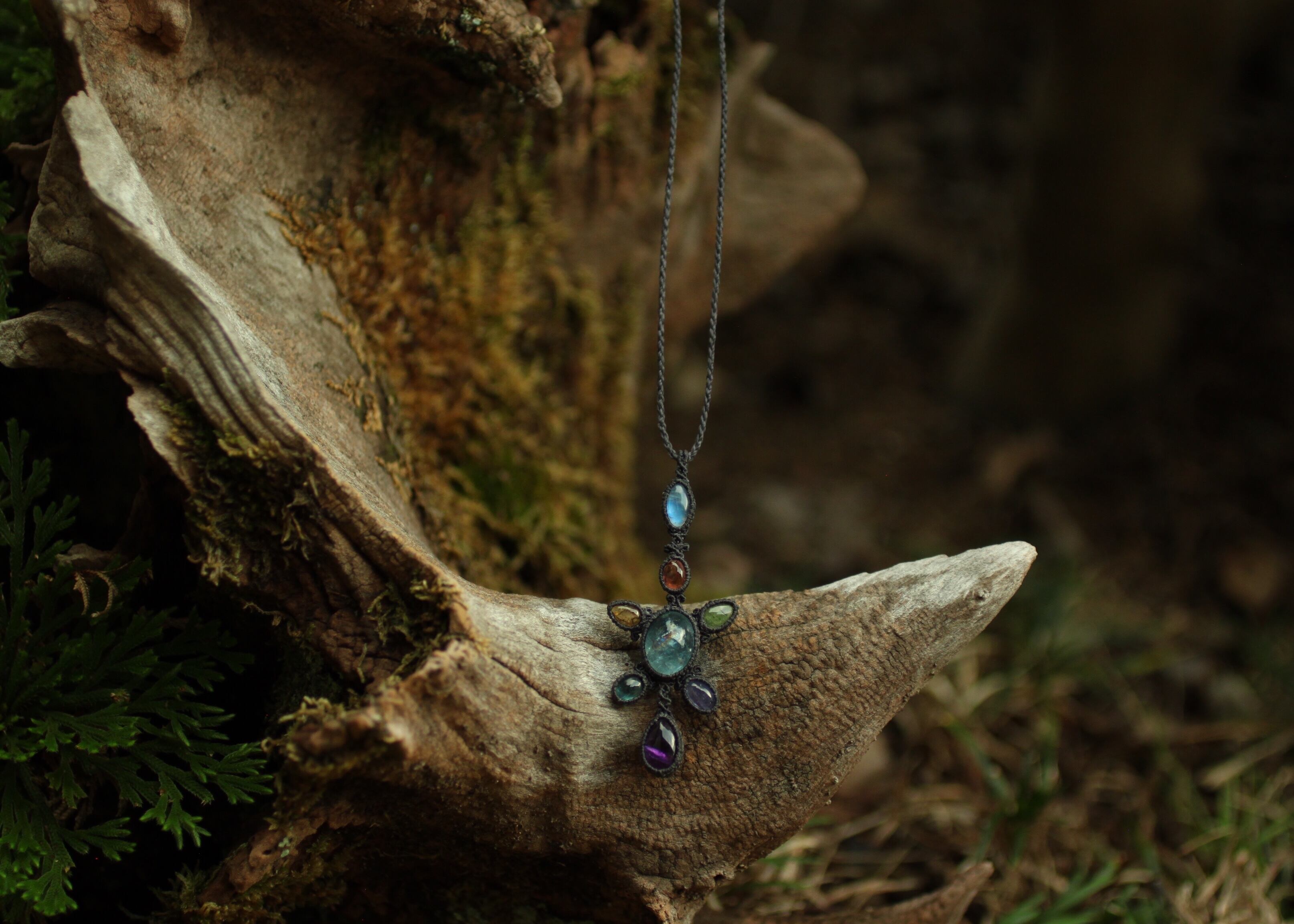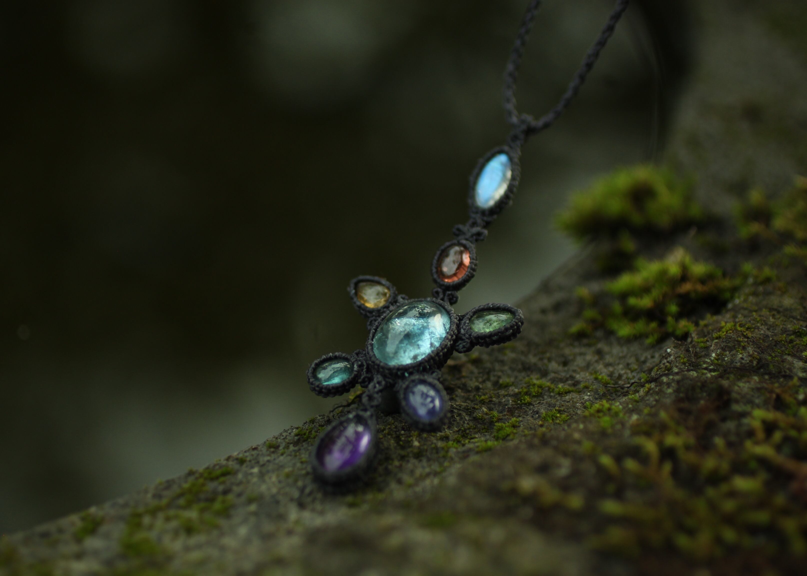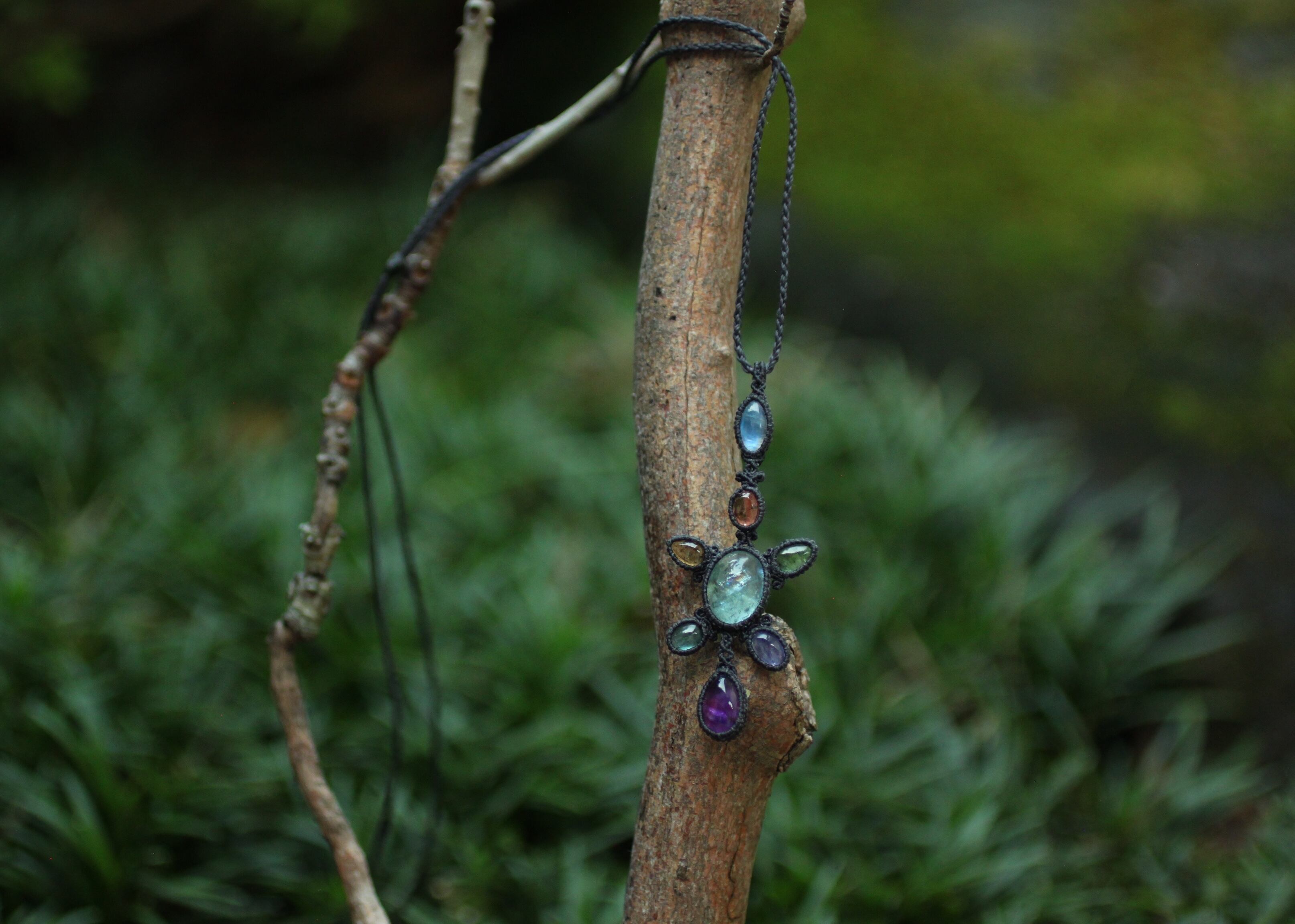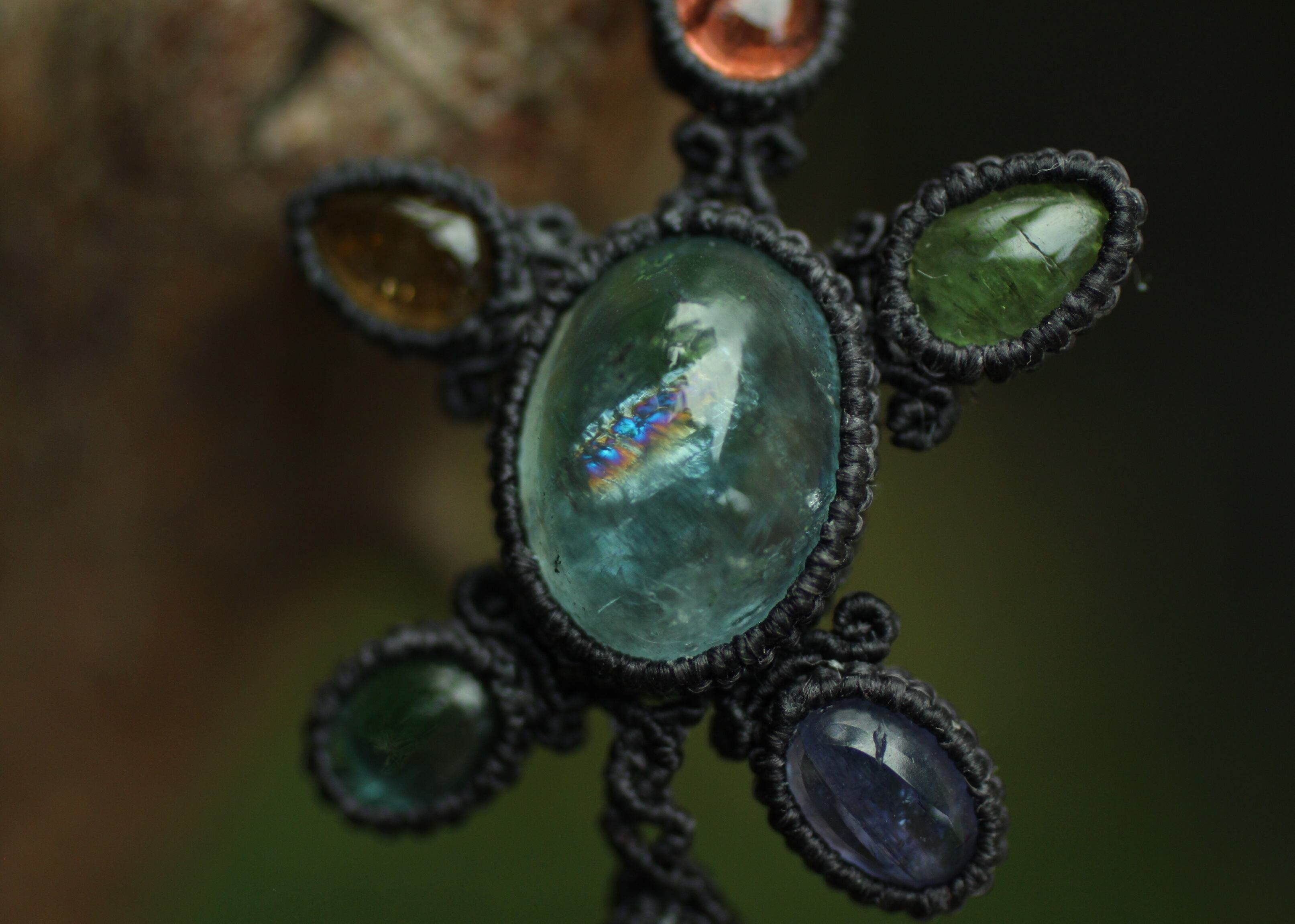 ※ 全ての天然石を包むコードを始めトップ部分に使用したマクラメ編みコードは、手縫い糸ほどの細いコードを使い出来る限り天然石の表情と繊細な仕上がりを重視し時間をかけ丁寧に編みました。