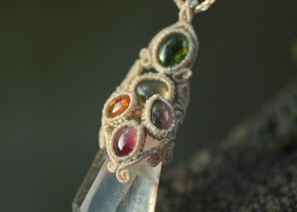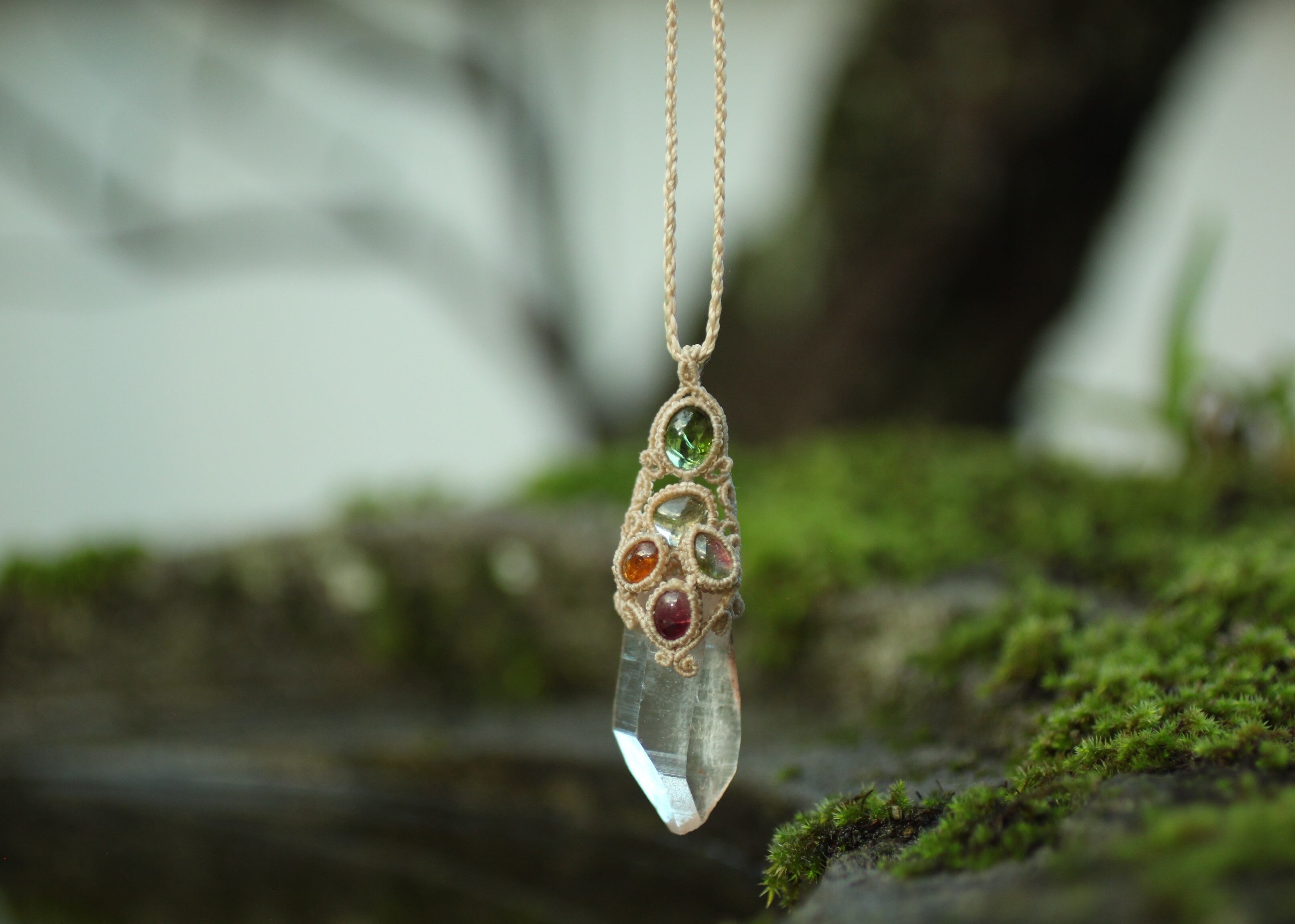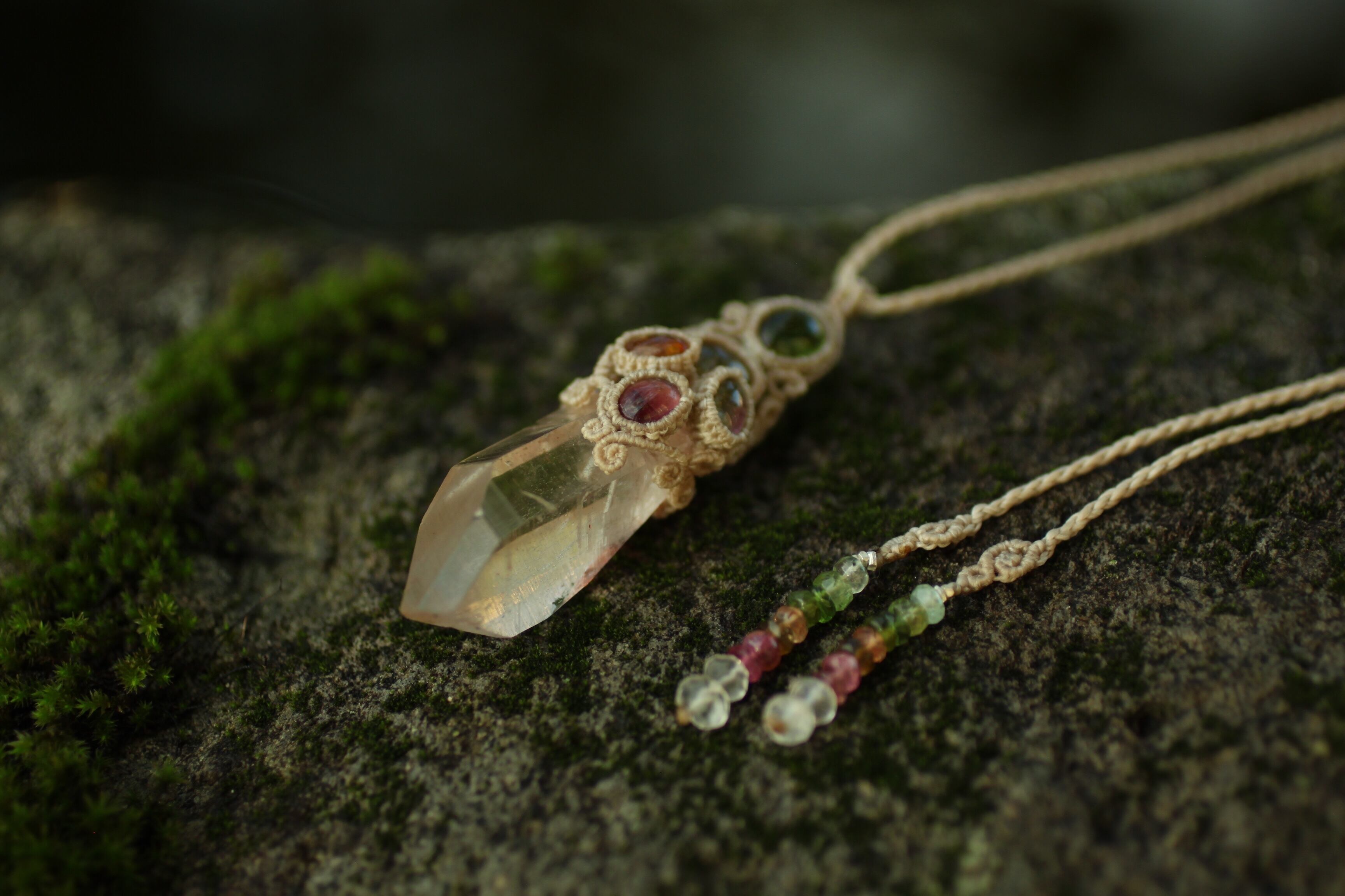 ※ 全て天然石を包むコードを始めトップ部分に使用したマクラメ編みコードは、手縫い糸ほどの細いコードを使い出来る限り天然石の表情と繊細な仕上がりを重視し時間をかけ丁寧に編みました。
