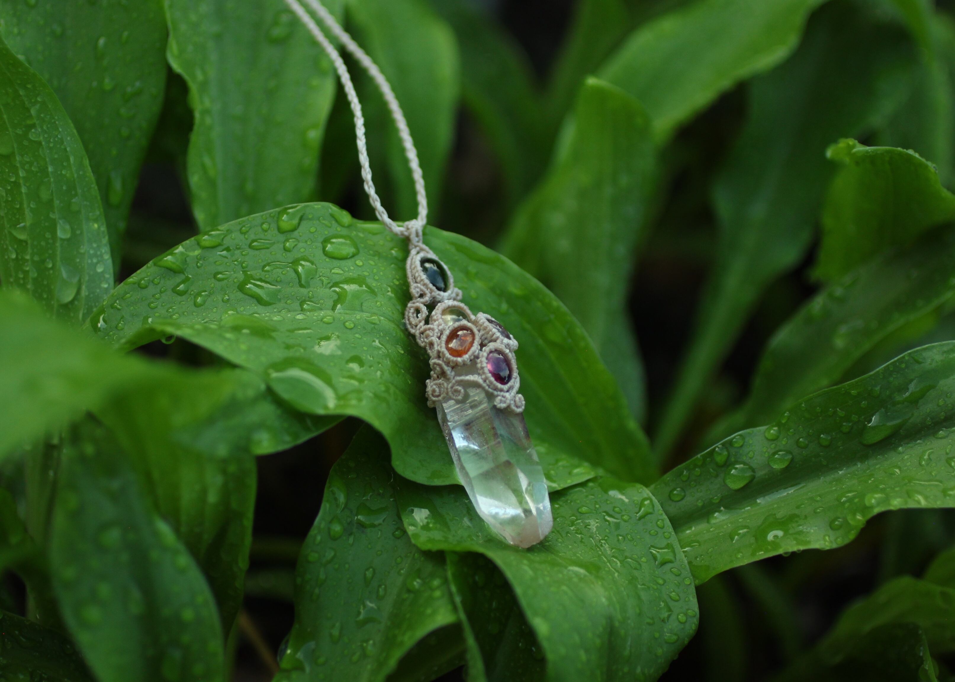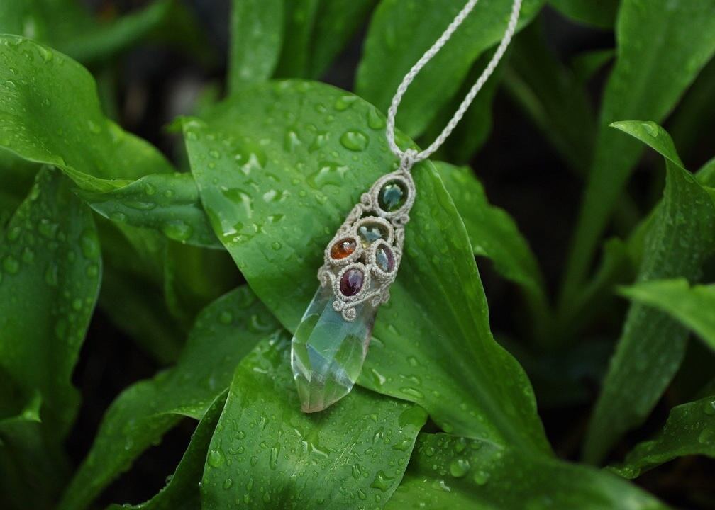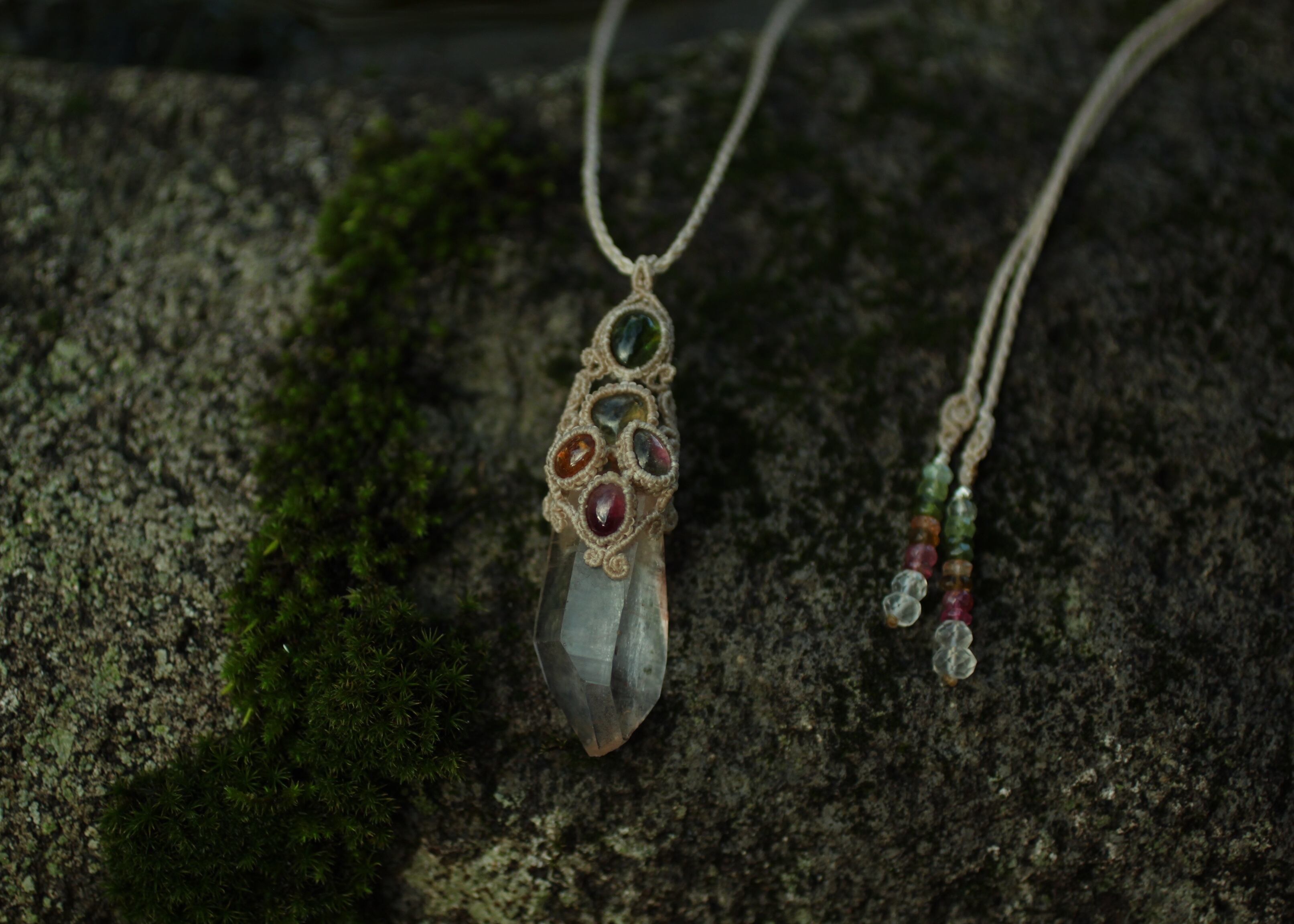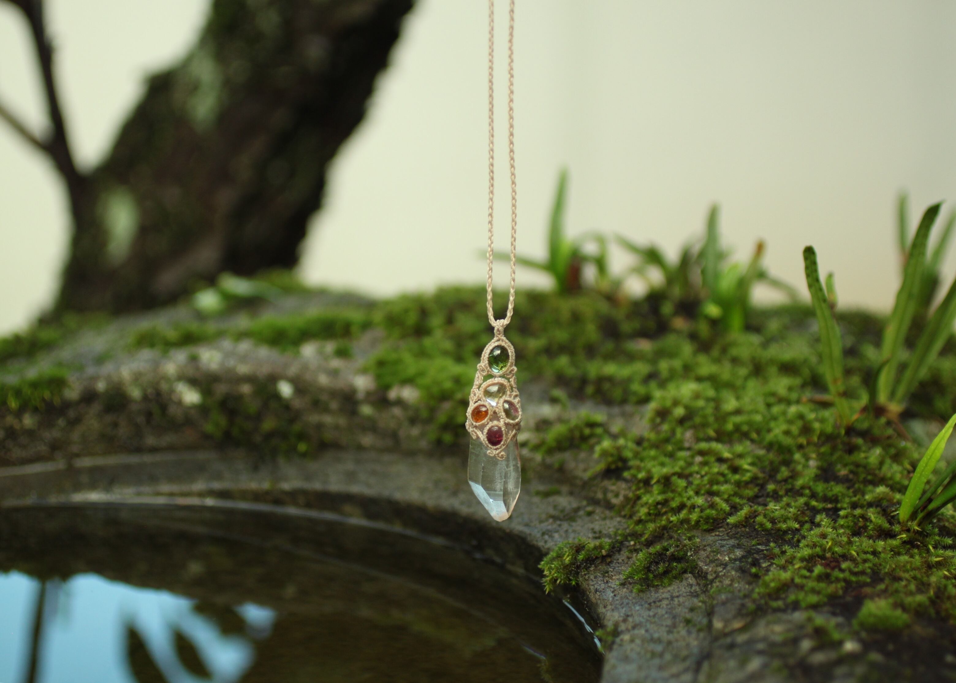 ※ 全て天然石を包むコードを始めトップ部分に使用したマクラメ編みコードは、手縫い糸ほどの細いコードを使い出来る限り天然石の表情と繊細な仕上がりを重視し時間をかけ丁寧に編みました。