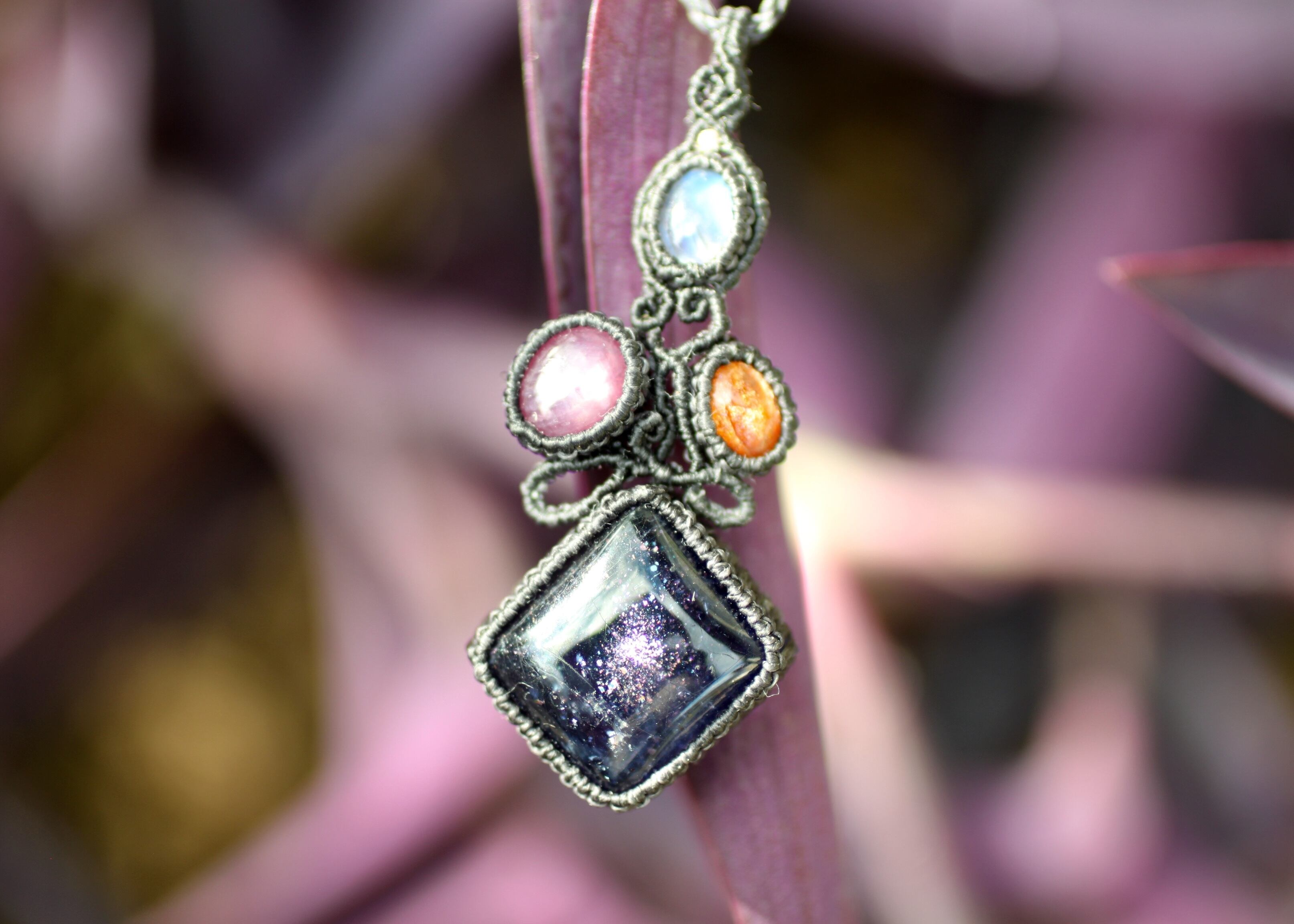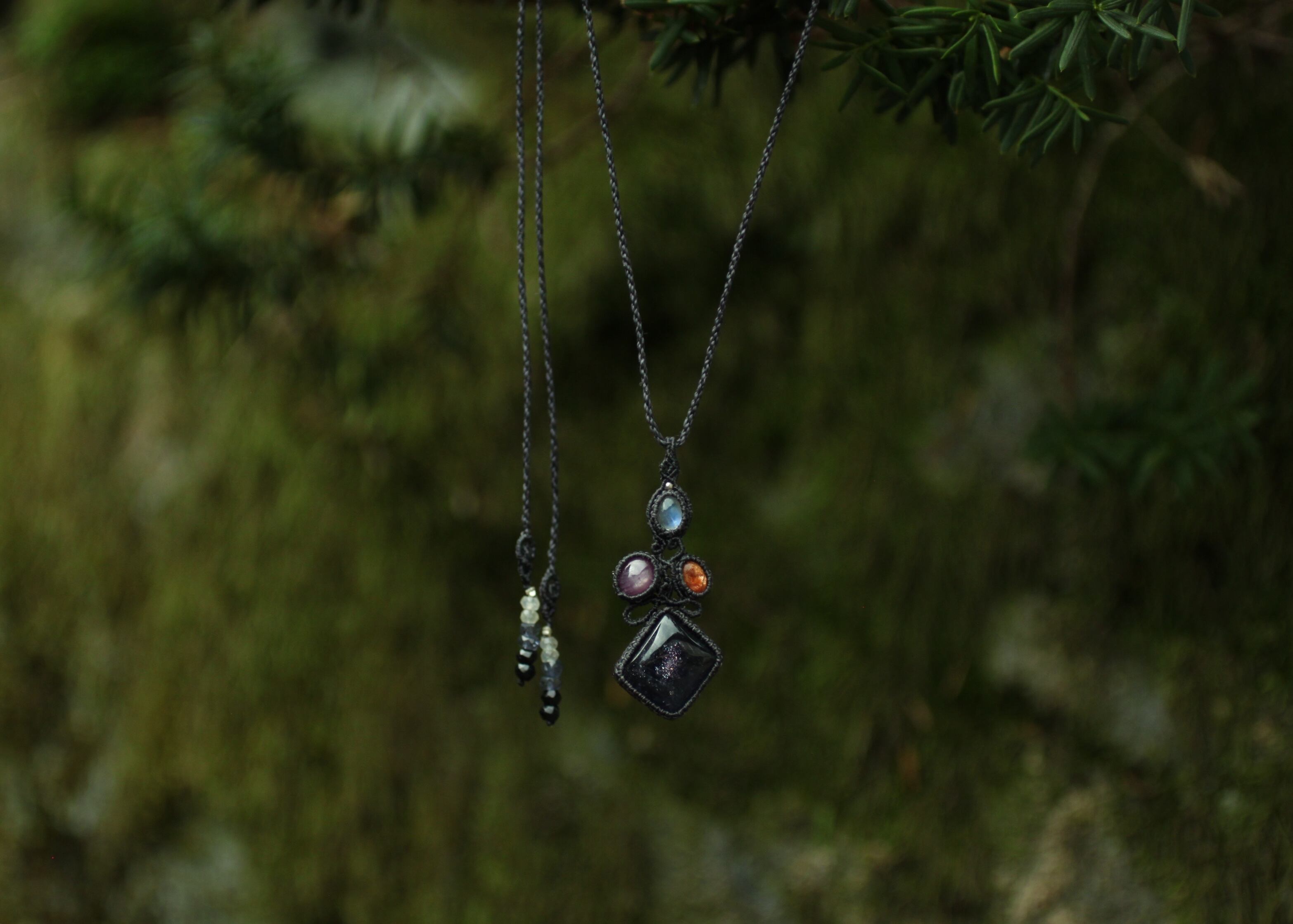 ※ 全ての天然石を包むコードを始めトップ部分に使用したマクラメ編みコードは、手縫い糸ほどの細いコードを使い出来る限り天然石の表情と繊細な仕上がりを重視し時間をかけ丁寧に編みました。