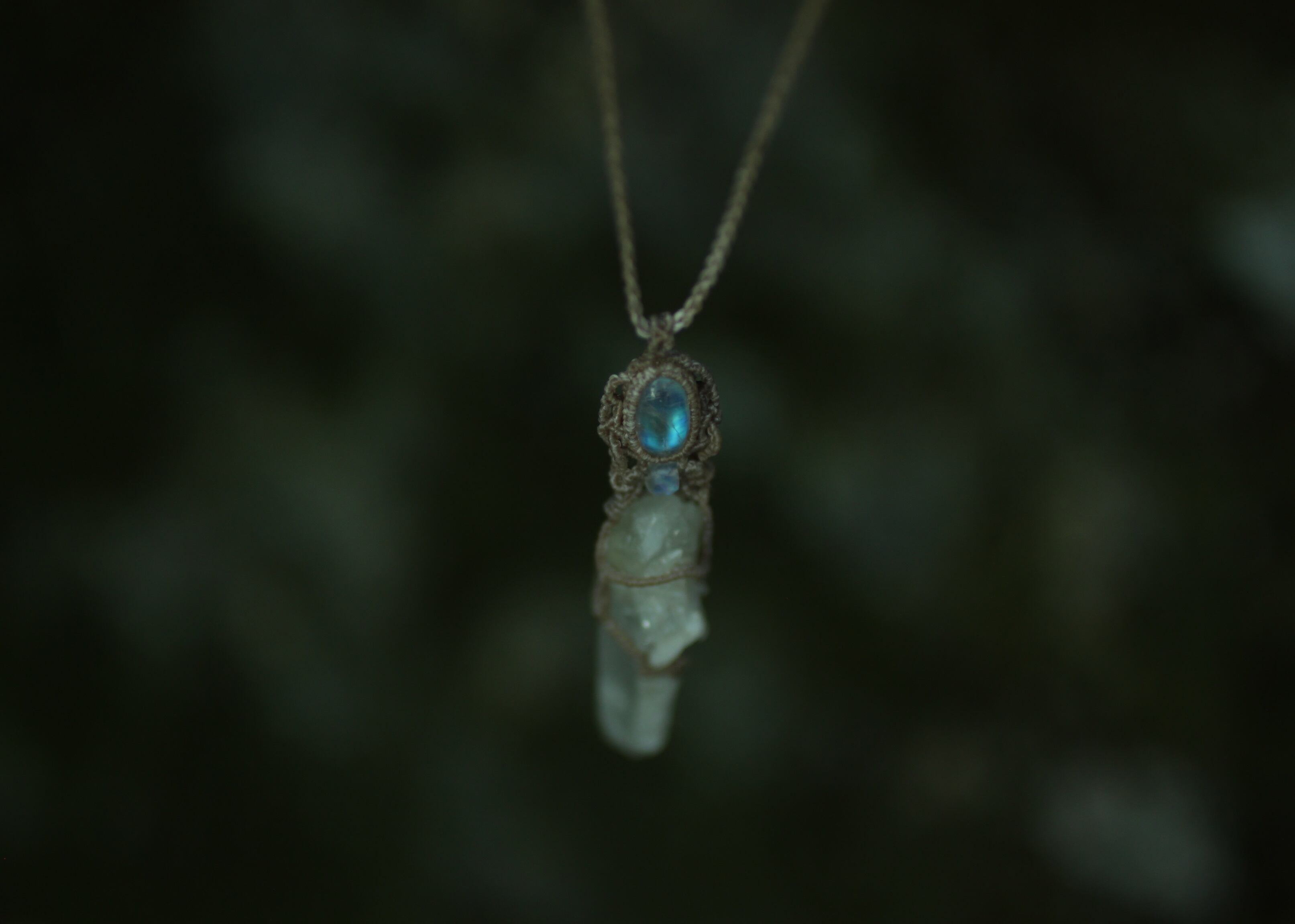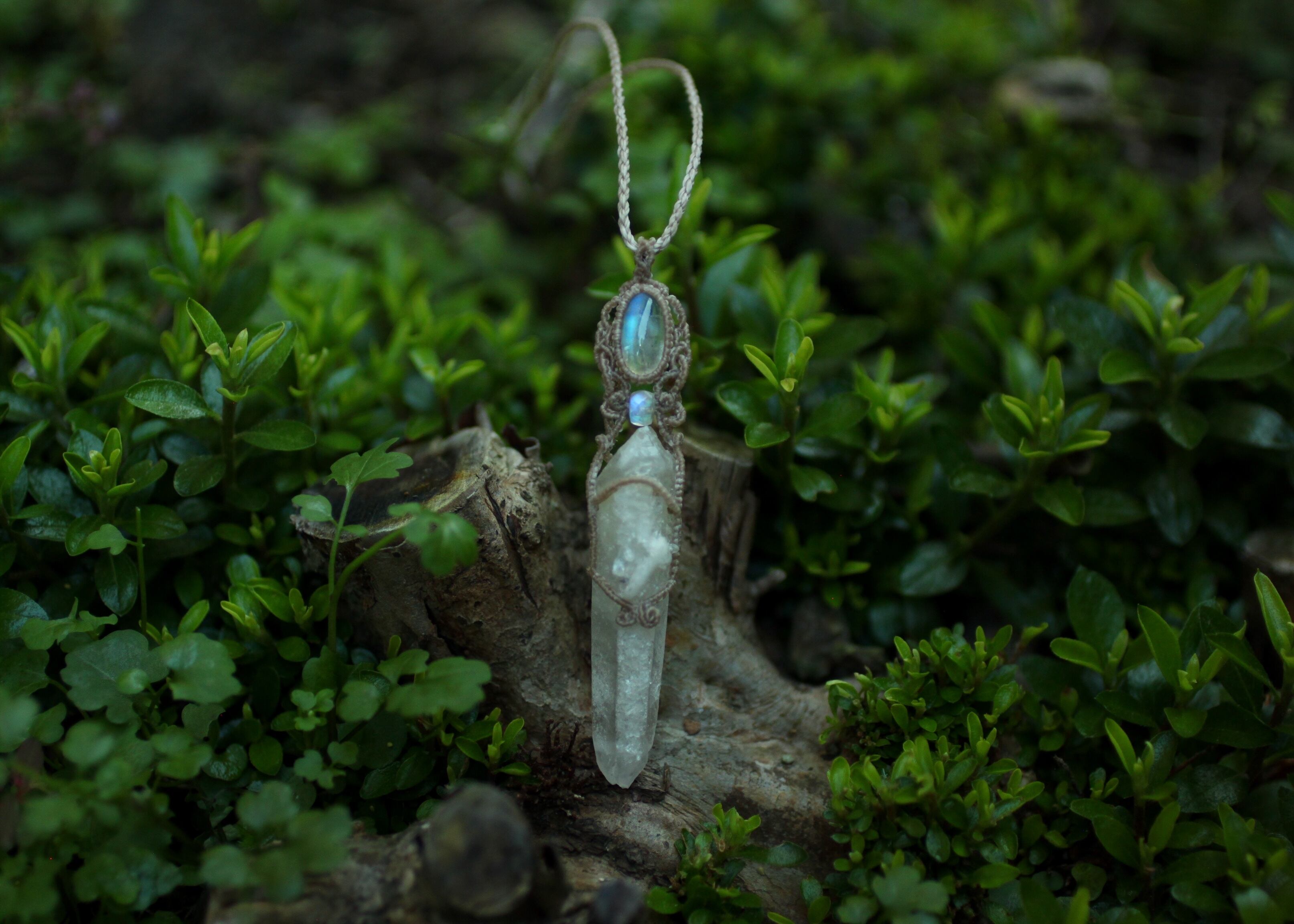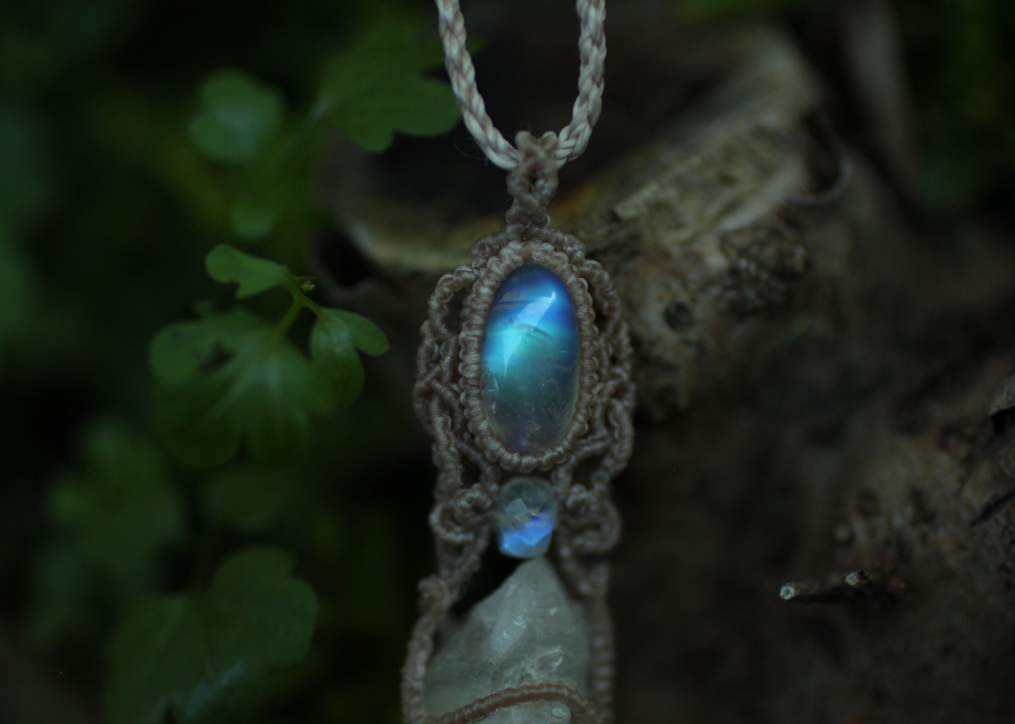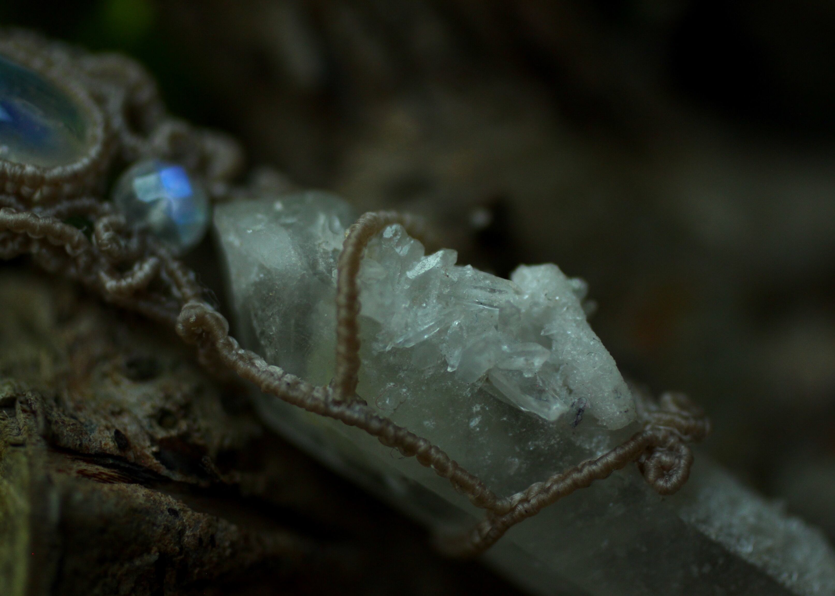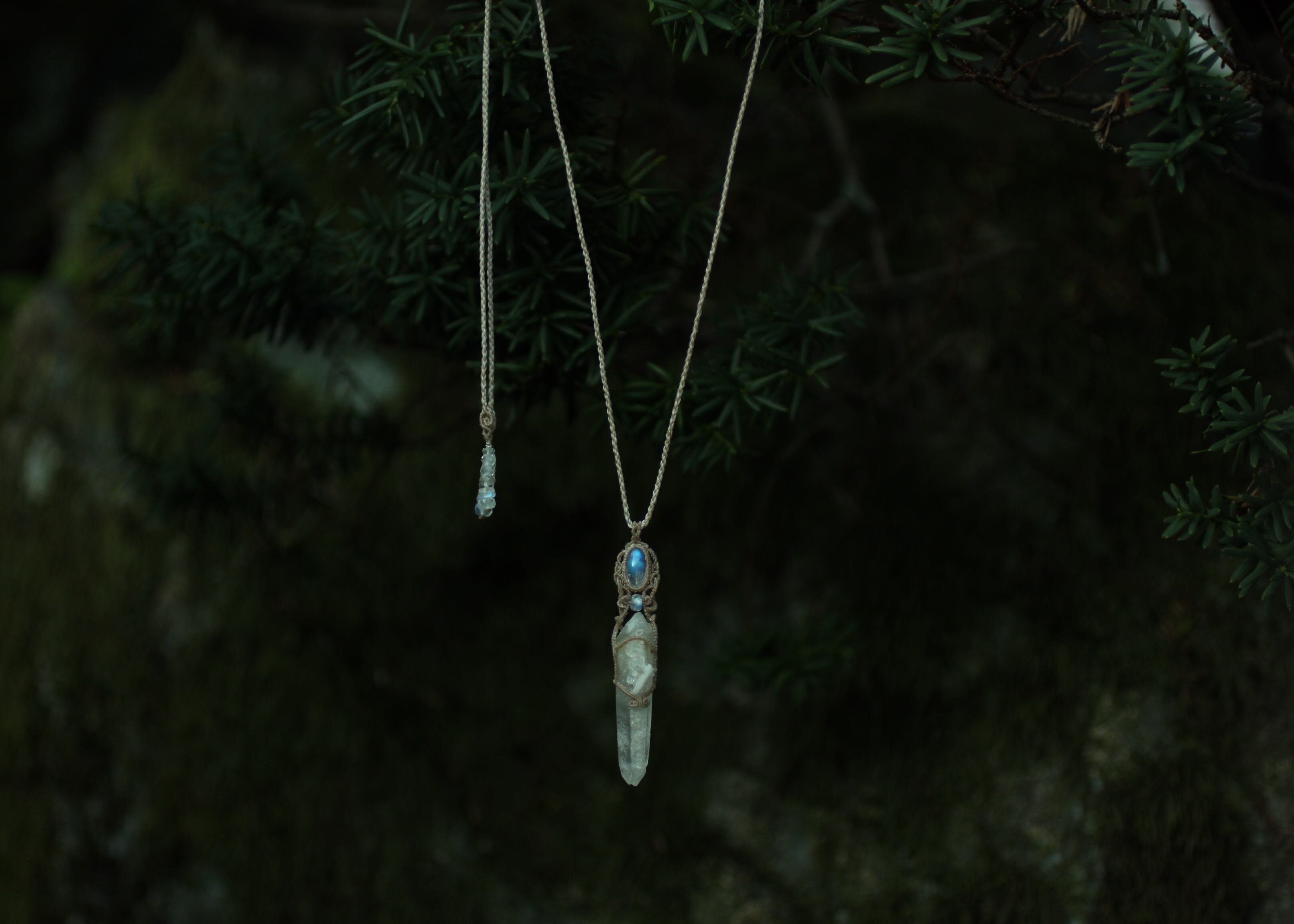 ※ 天然石を包むコードを始めトップ部分に使用したマクラメ編みコードは、手縫い糸ほどの細いコードを使い出来る限り天然石の表情と繊細な仕上がりを重視し時間をかけ丁寧に編みました。