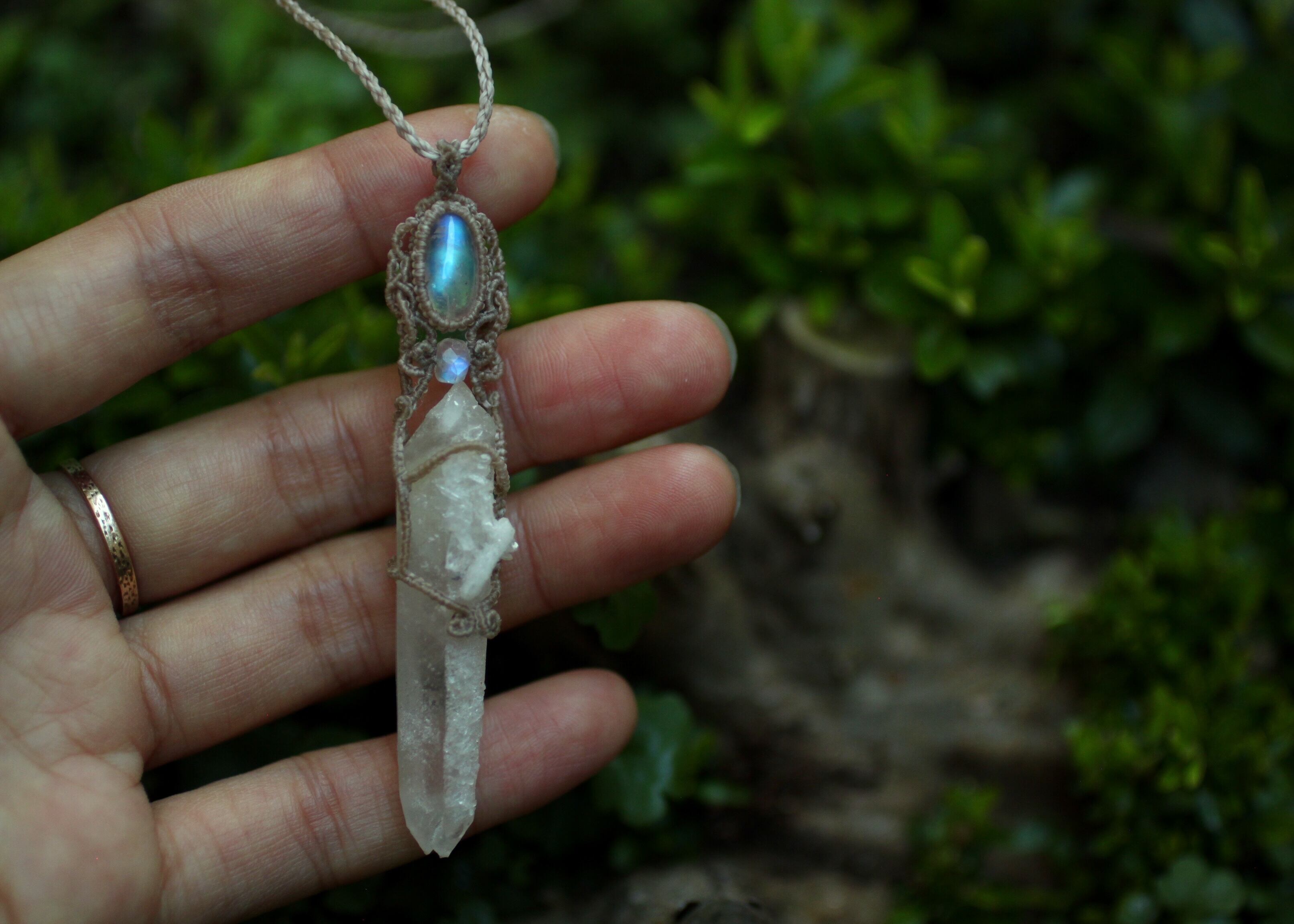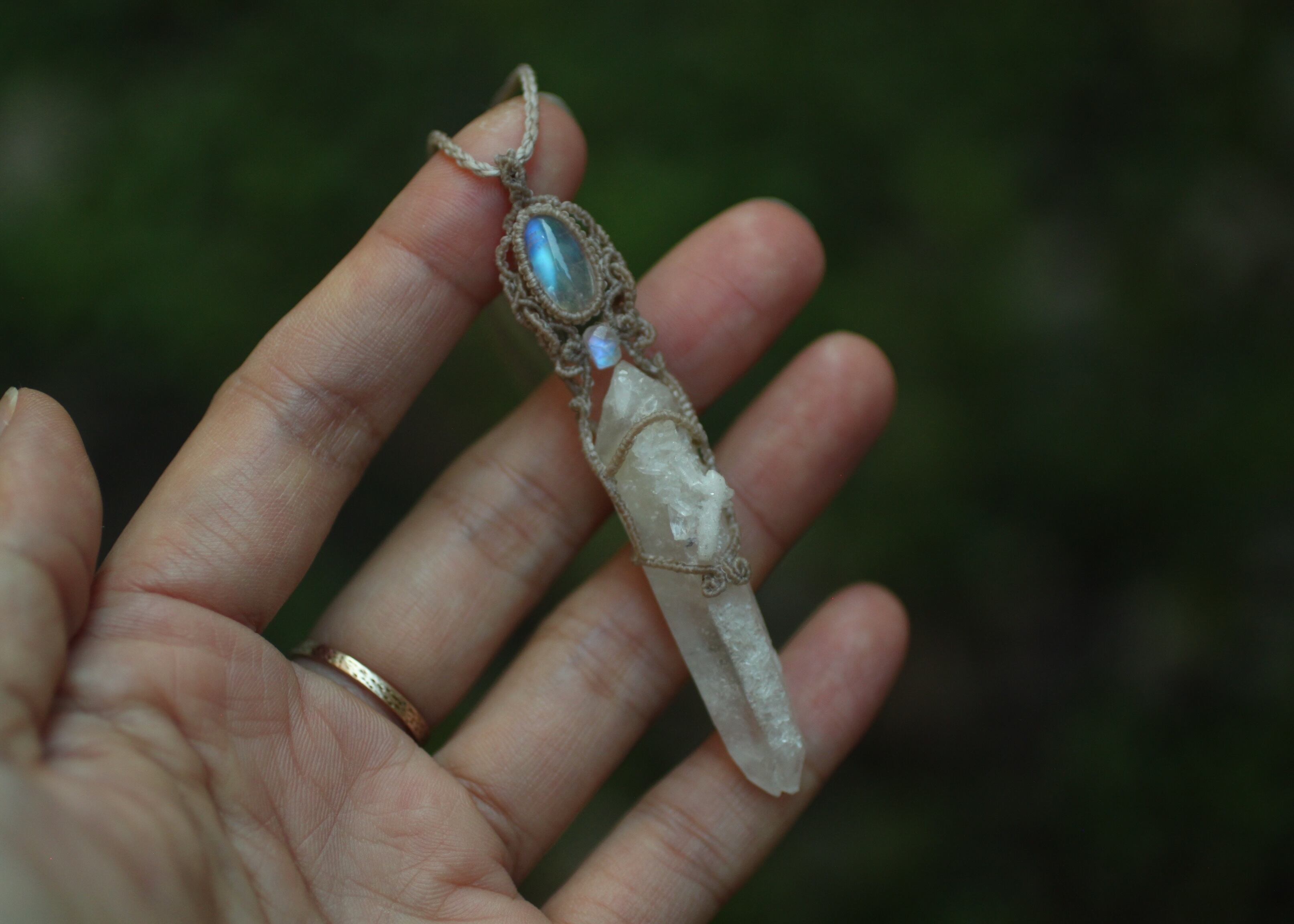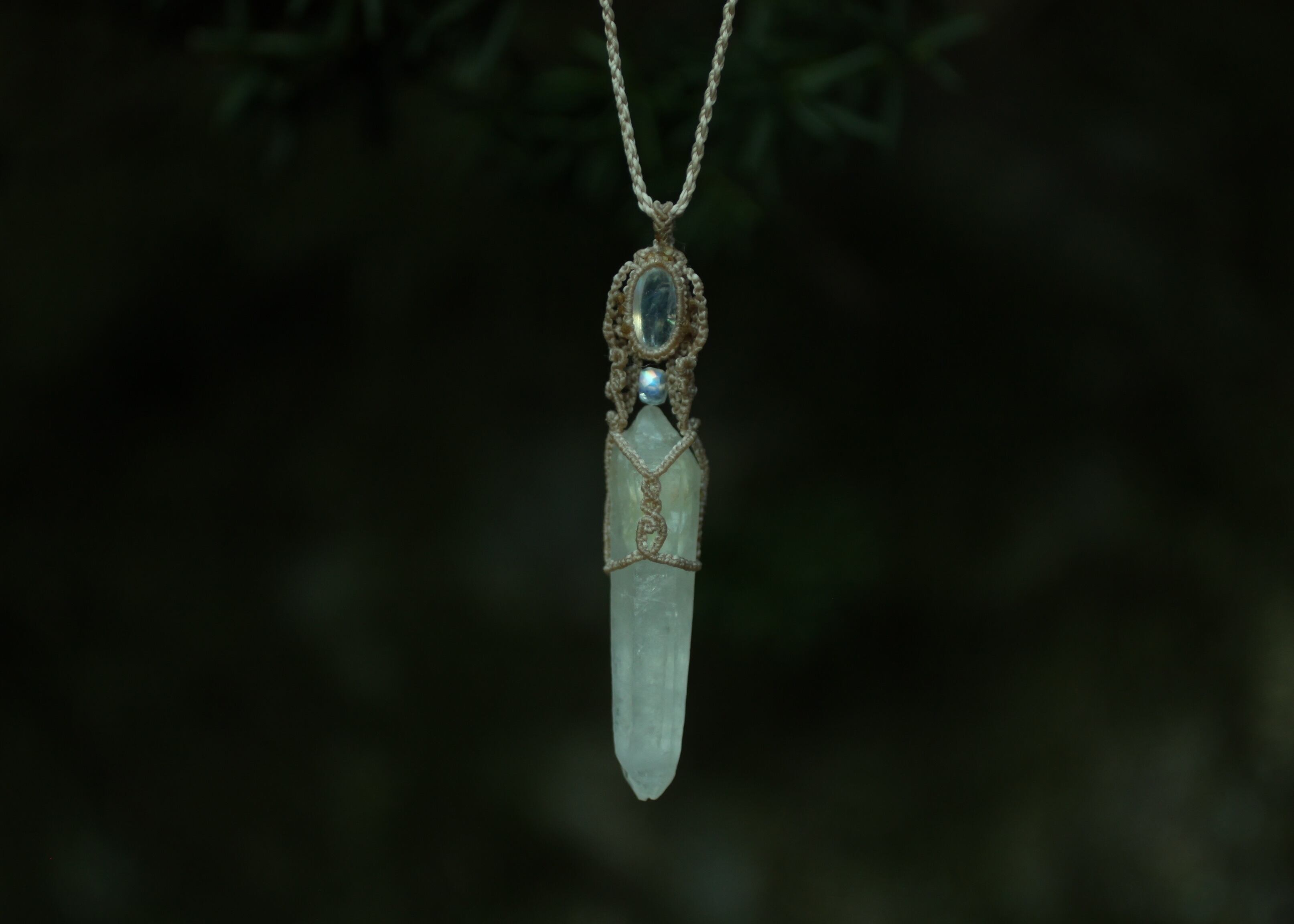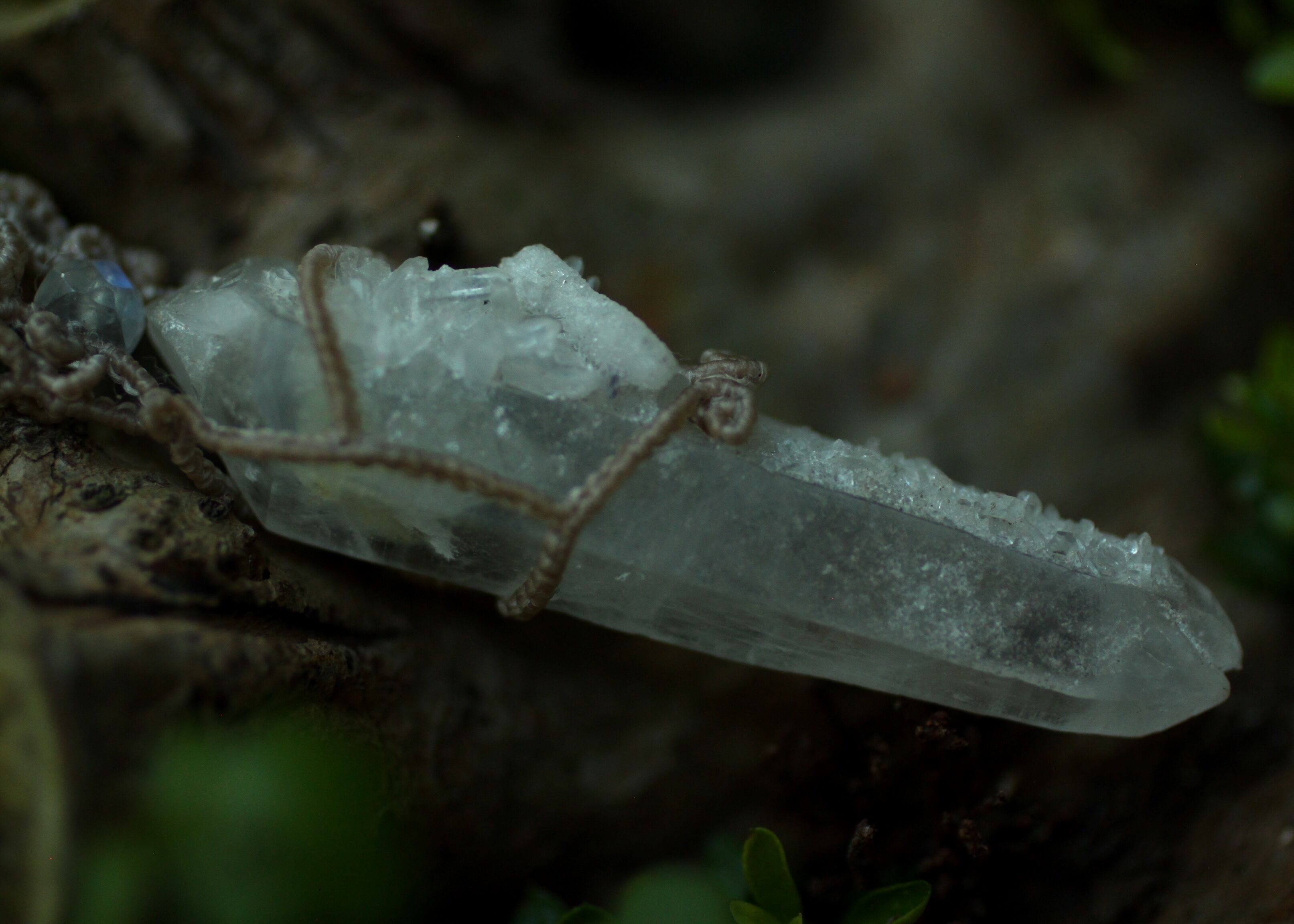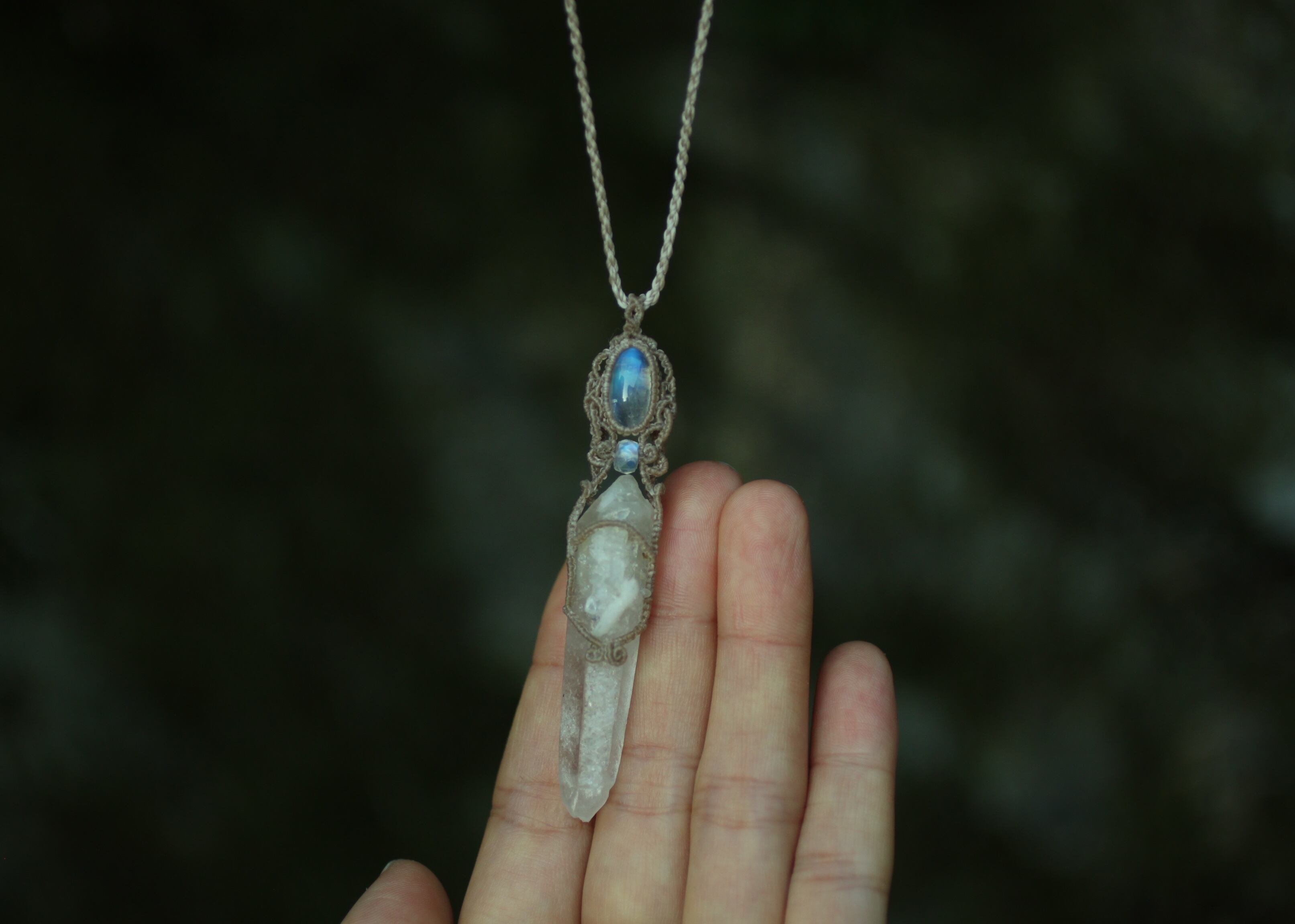 ※ 天然石を包むコードを始めトップ部分に使用したマクラメ編みコードは、手縫い糸ほどの細いコードを使い出来る限り天然石の表情と繊細な仕上がりを重視し時間をかけ丁寧に編みました。