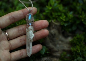 ひもの最後に . . . . . 水晶、レインボームーンストーン、シルバー925ビーズ 使用