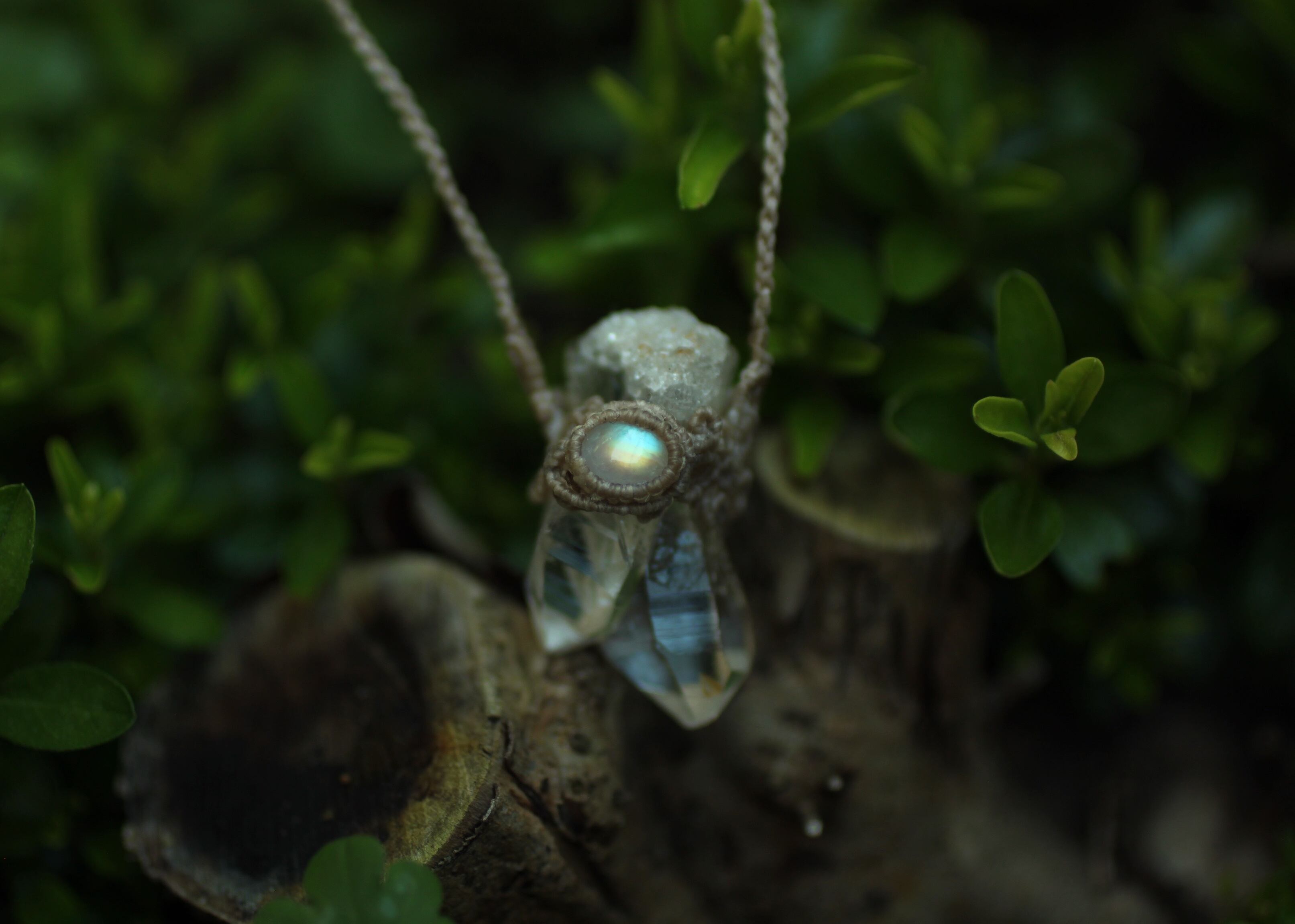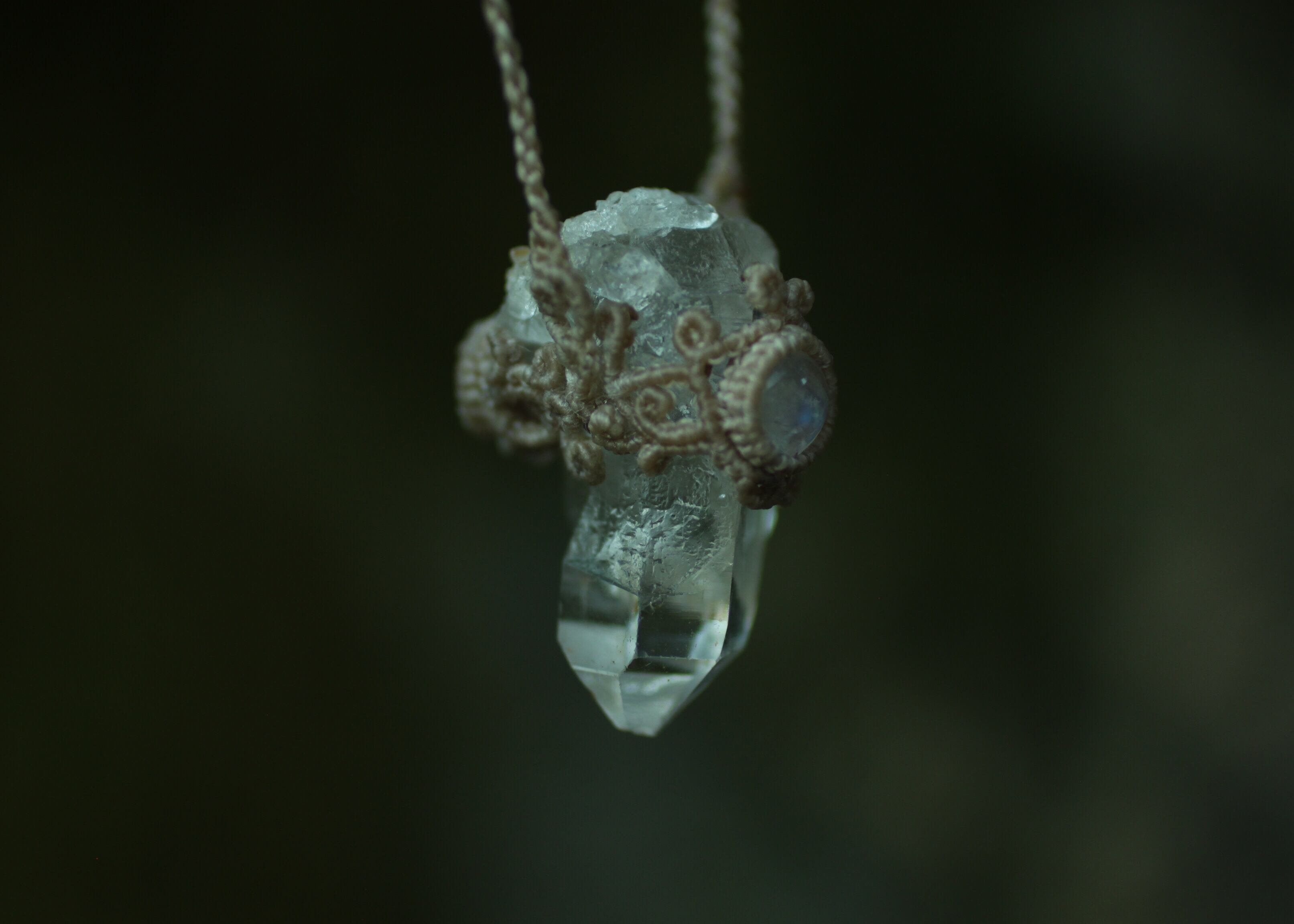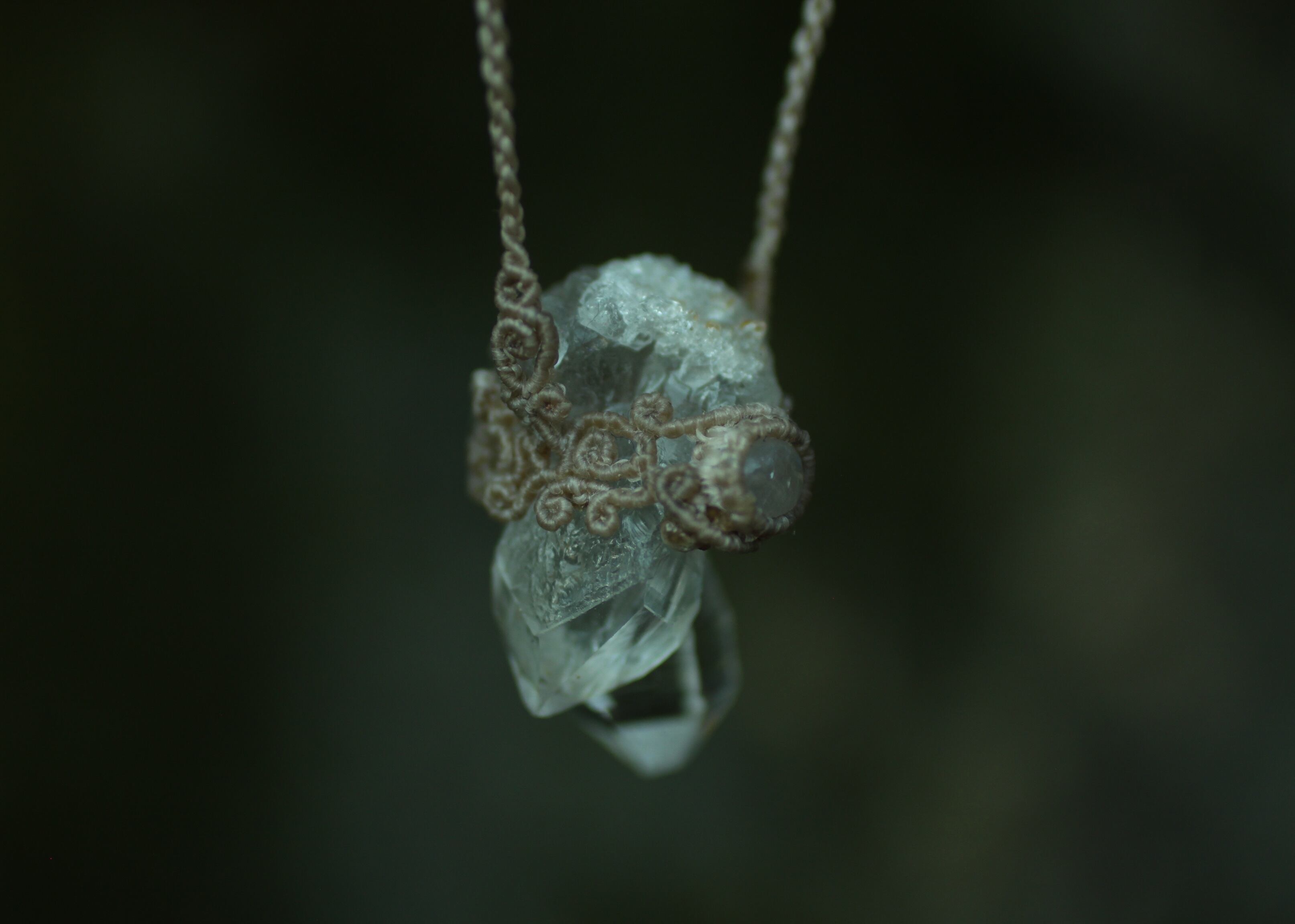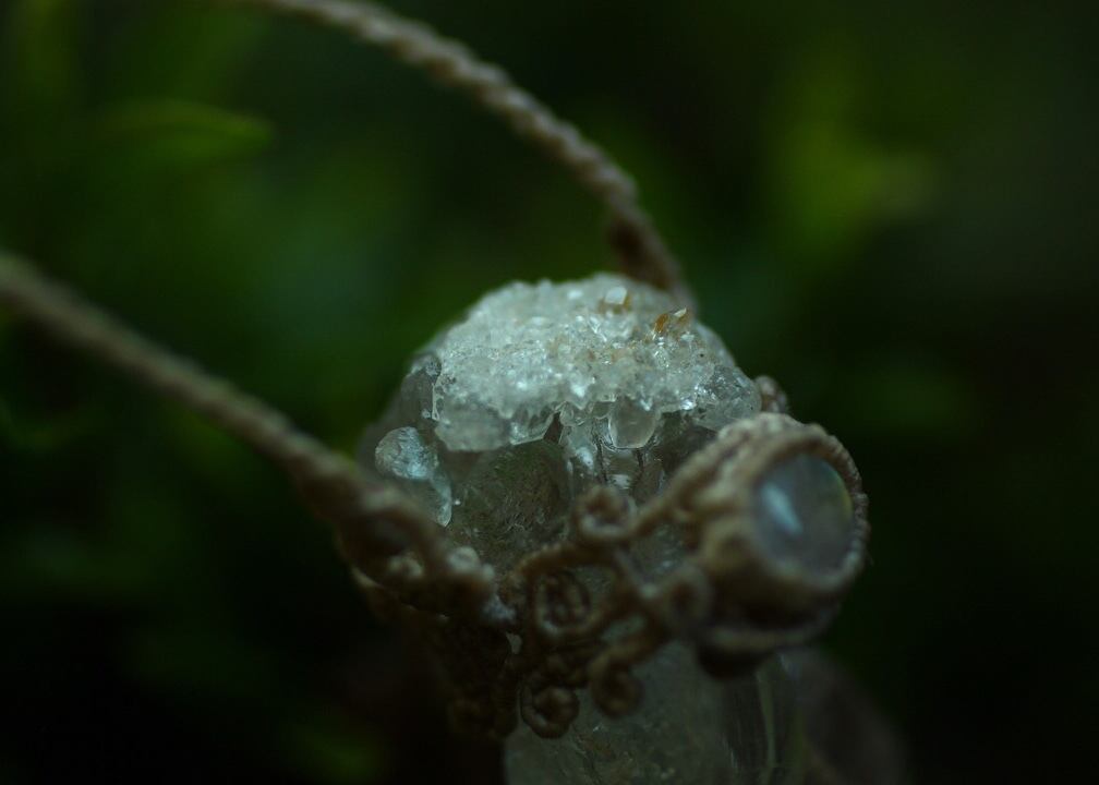 ※ 天然石を包むコードを始めトップ部分に使用したマクラメ編みコードは、手縫い糸ほどの細いコードを使い出来る限り天然石の表情と繊細な仕上がりを重視し時間をかけ丁寧に編みました。