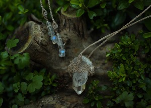 ムーンストーン2種を1つづつあしらいふた通りで楽しめネックレスへと仕上げました。