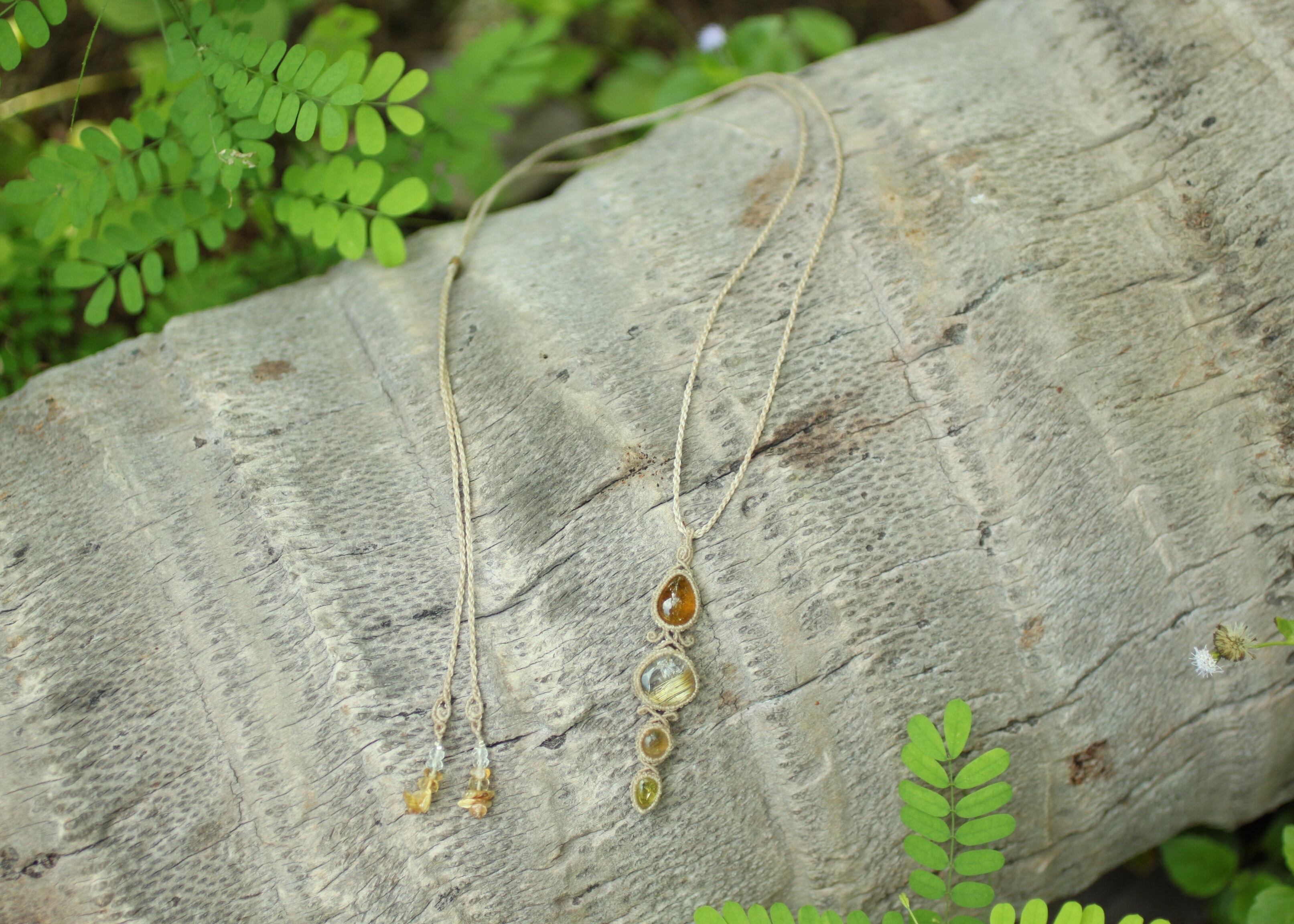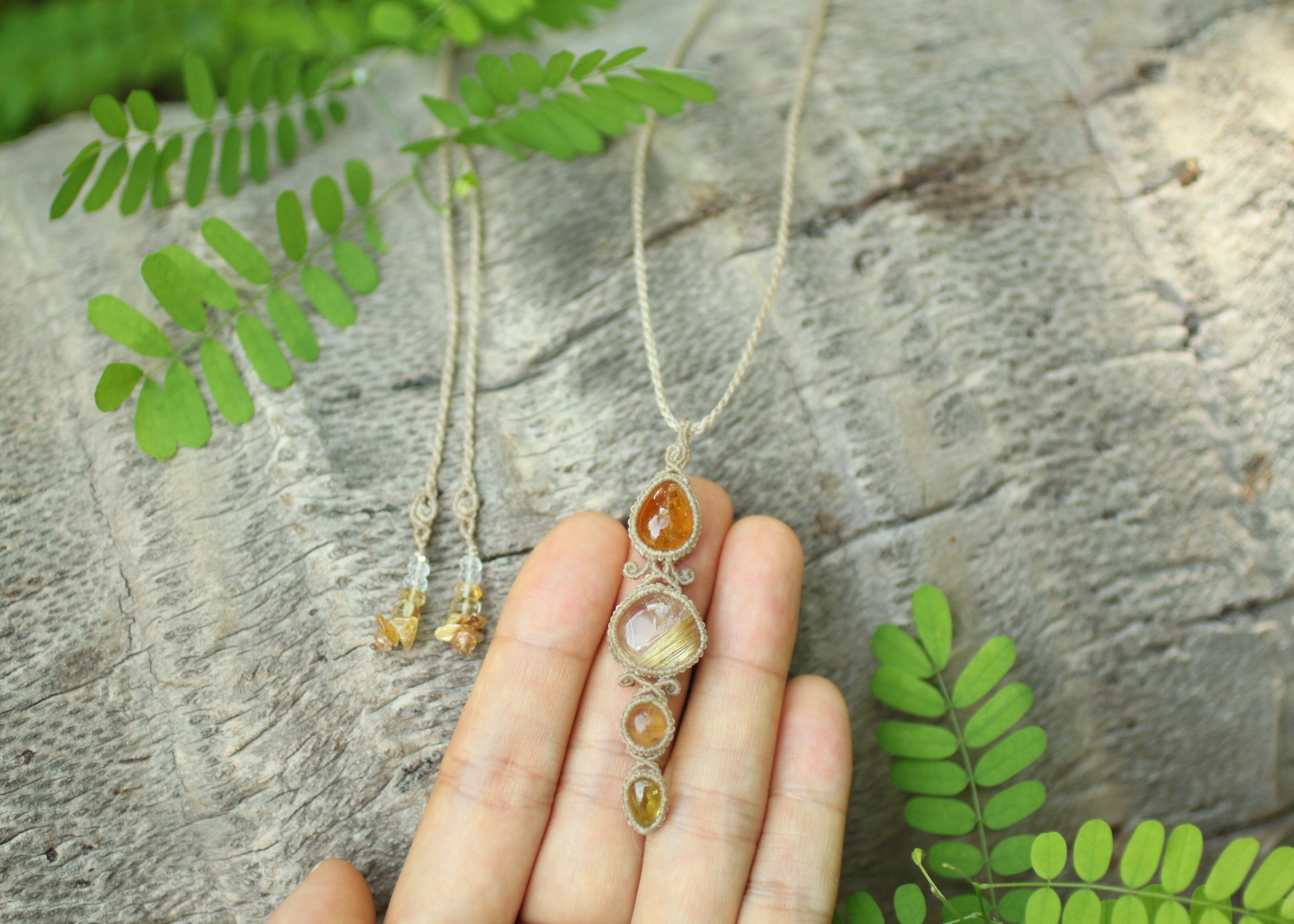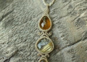 ※ 天然石を包むコードを始めトップ部分に使用したマクラメ編みコードは、