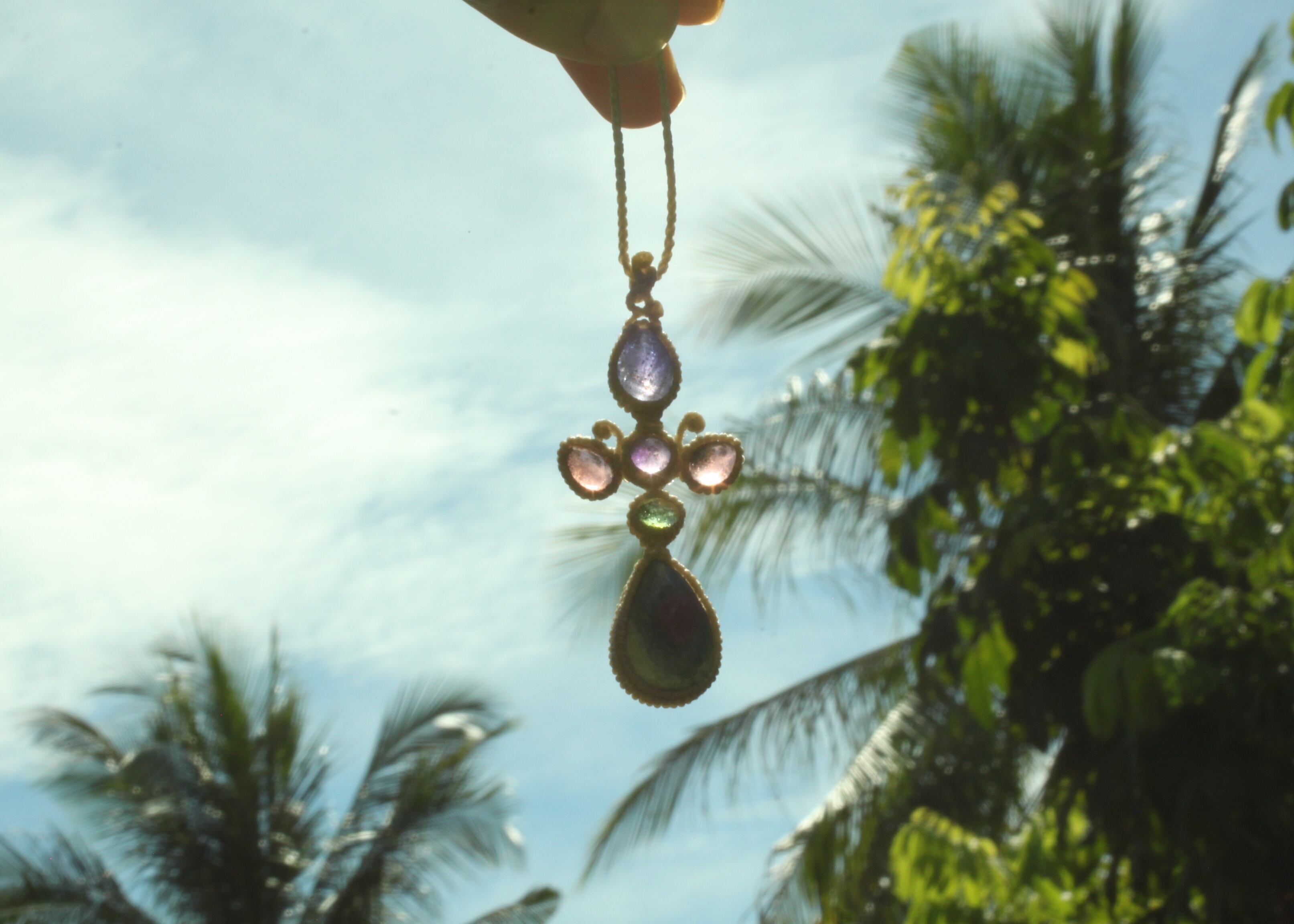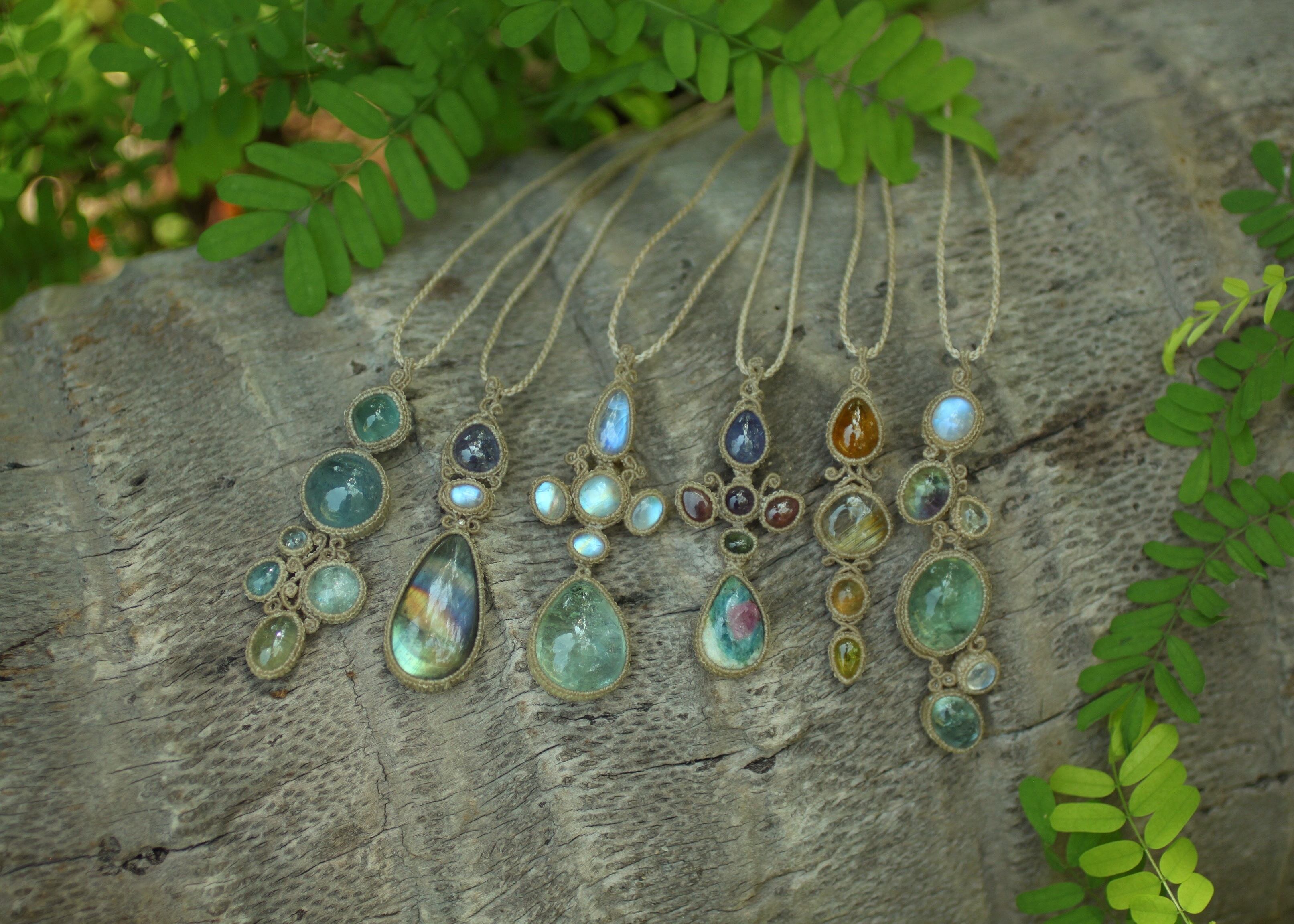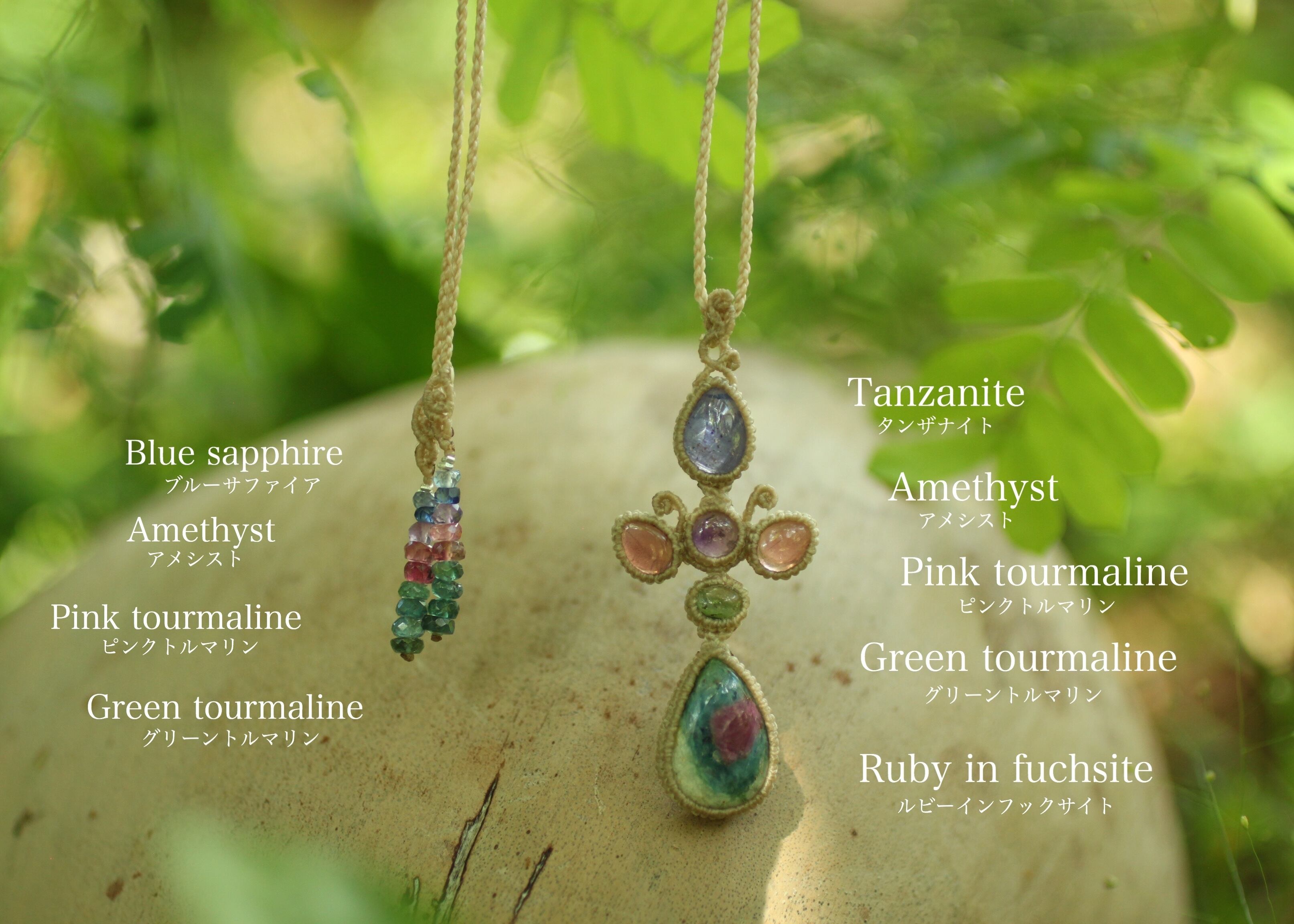 ※ 天然石を包むコードを始めトップ部分に使用したマクラメ編みコードは、