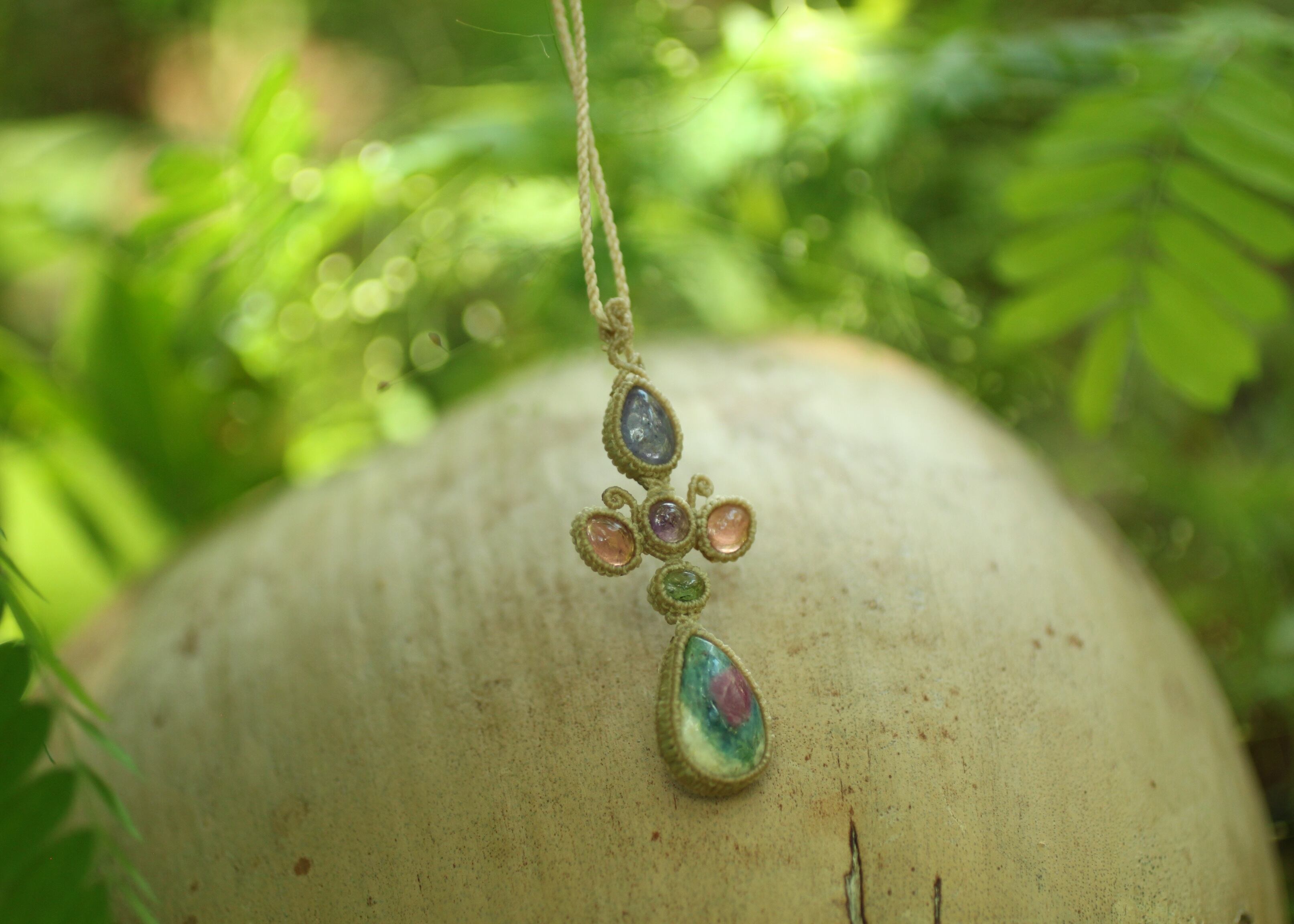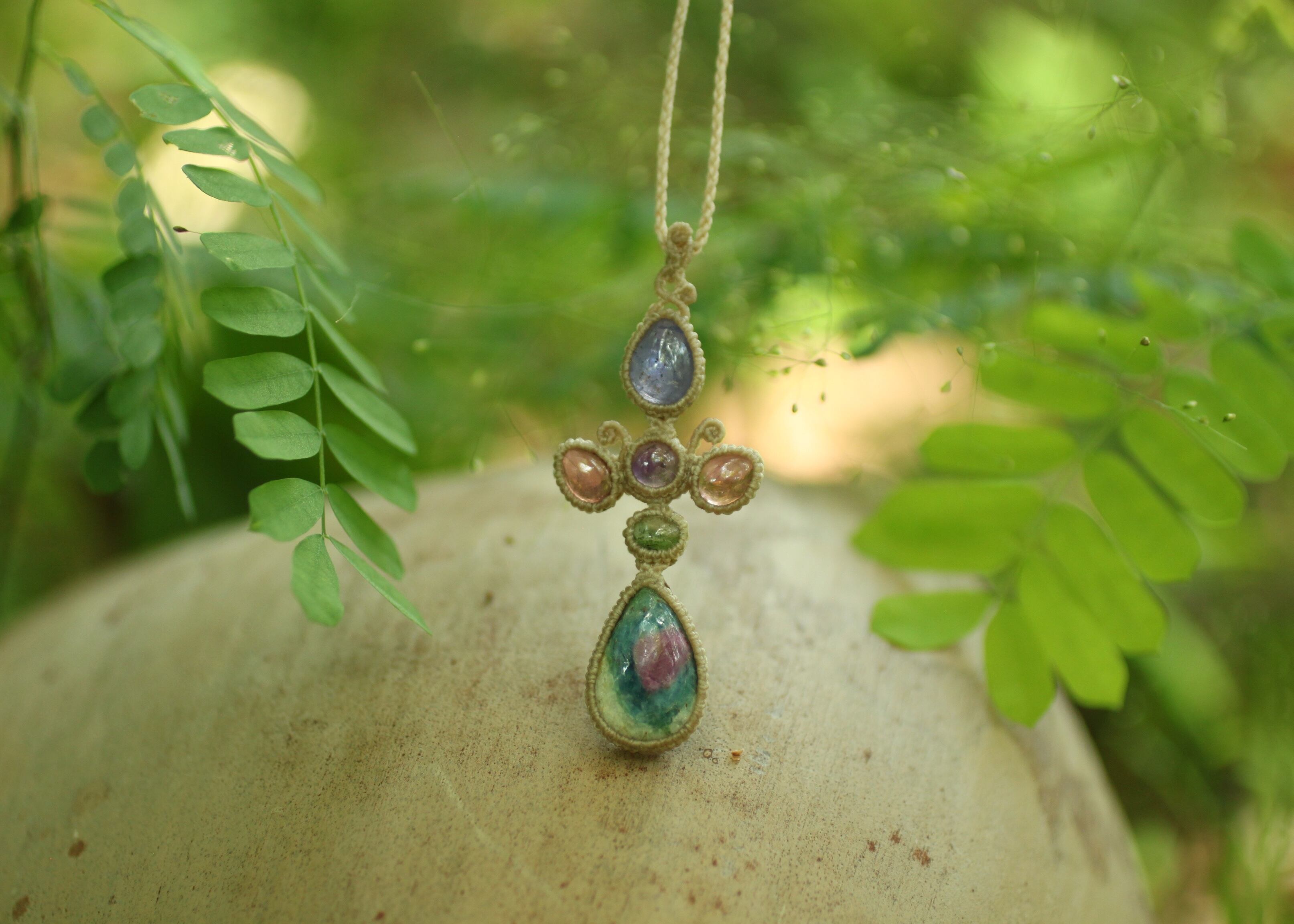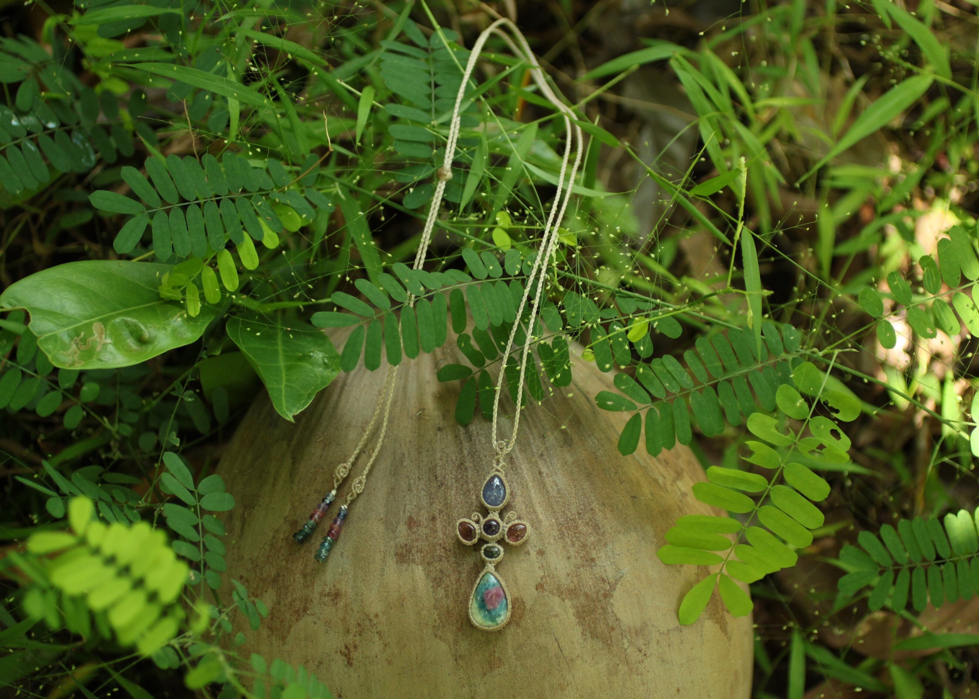 ※ 天然石を包むコードを始めトップ部分に使用したマクラメ編みコードは、
