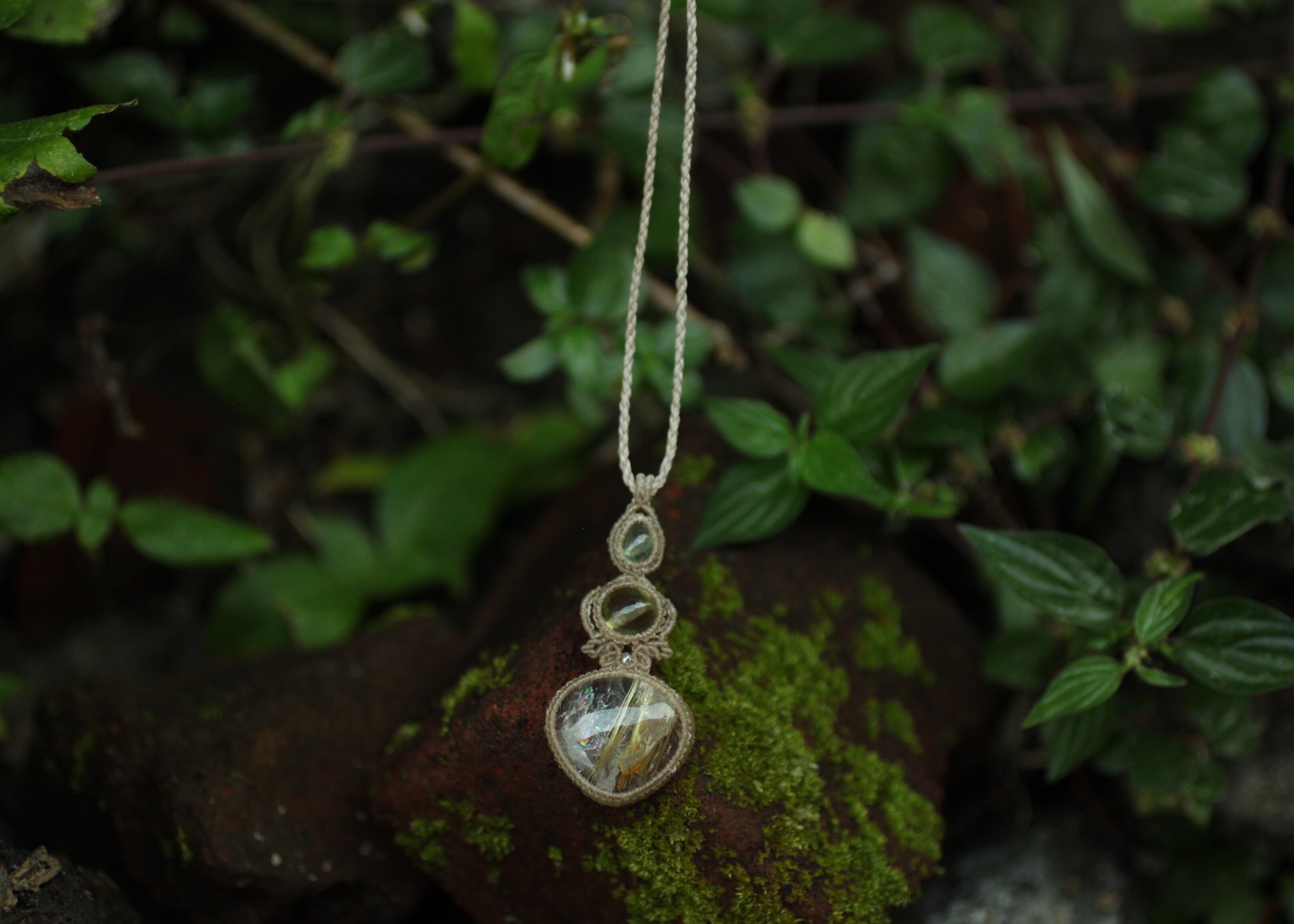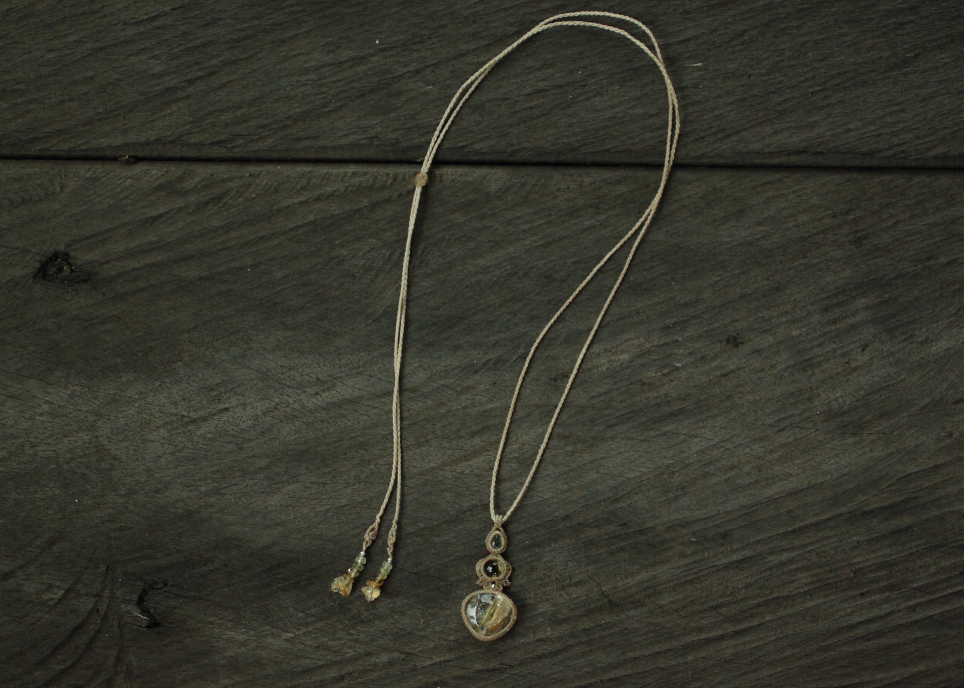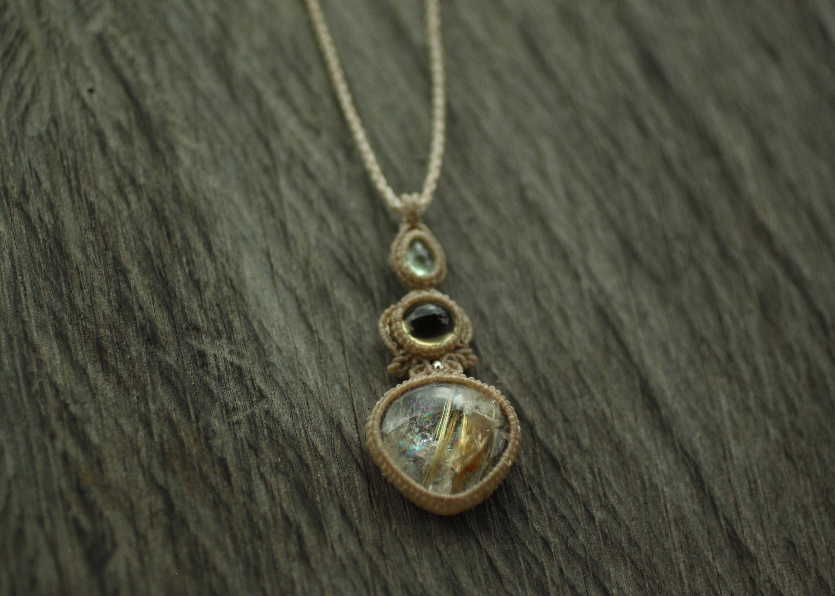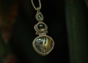 ※ 天然石を包むコードを始めトップ部分に使用したマクラメ編みコードは、