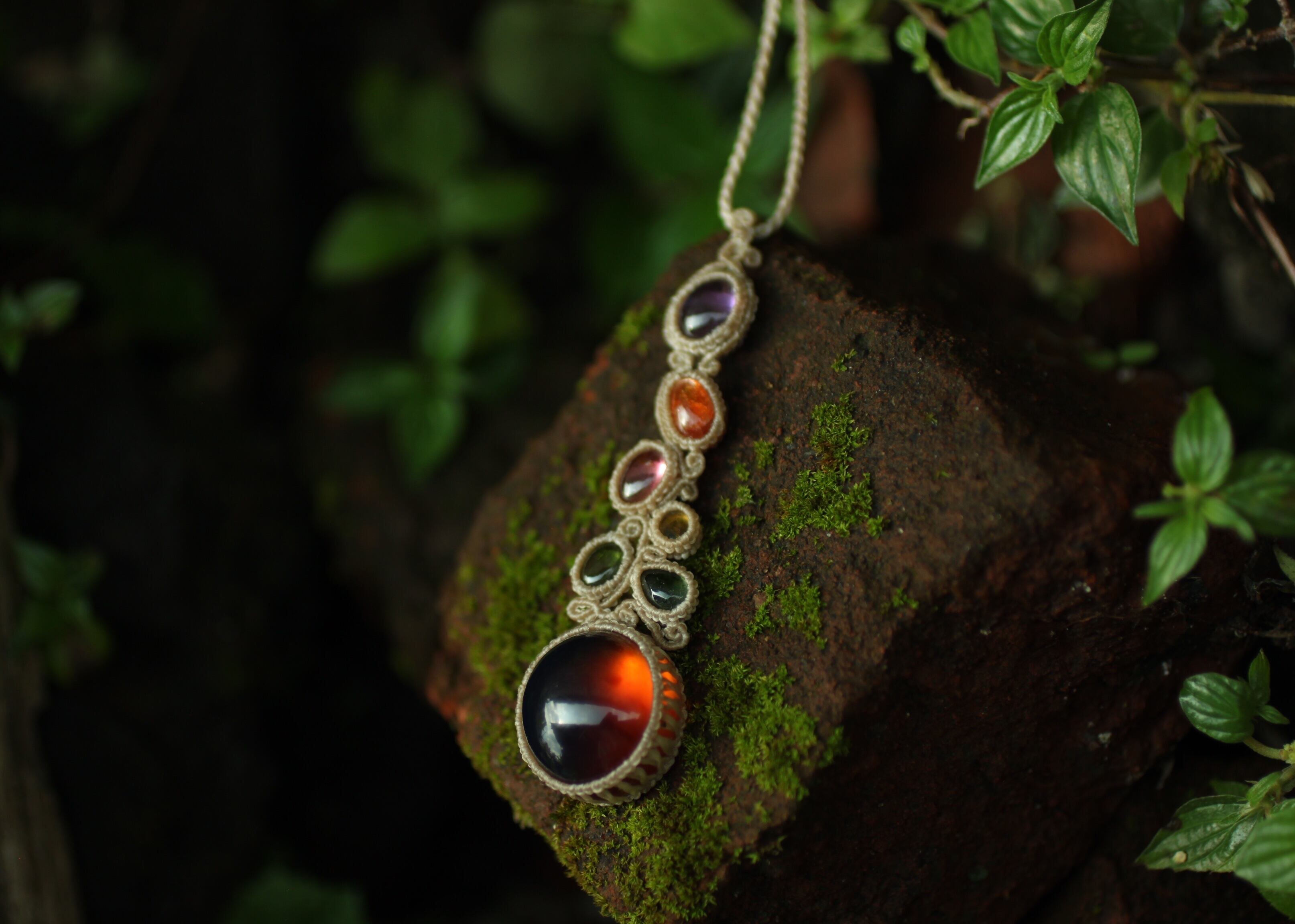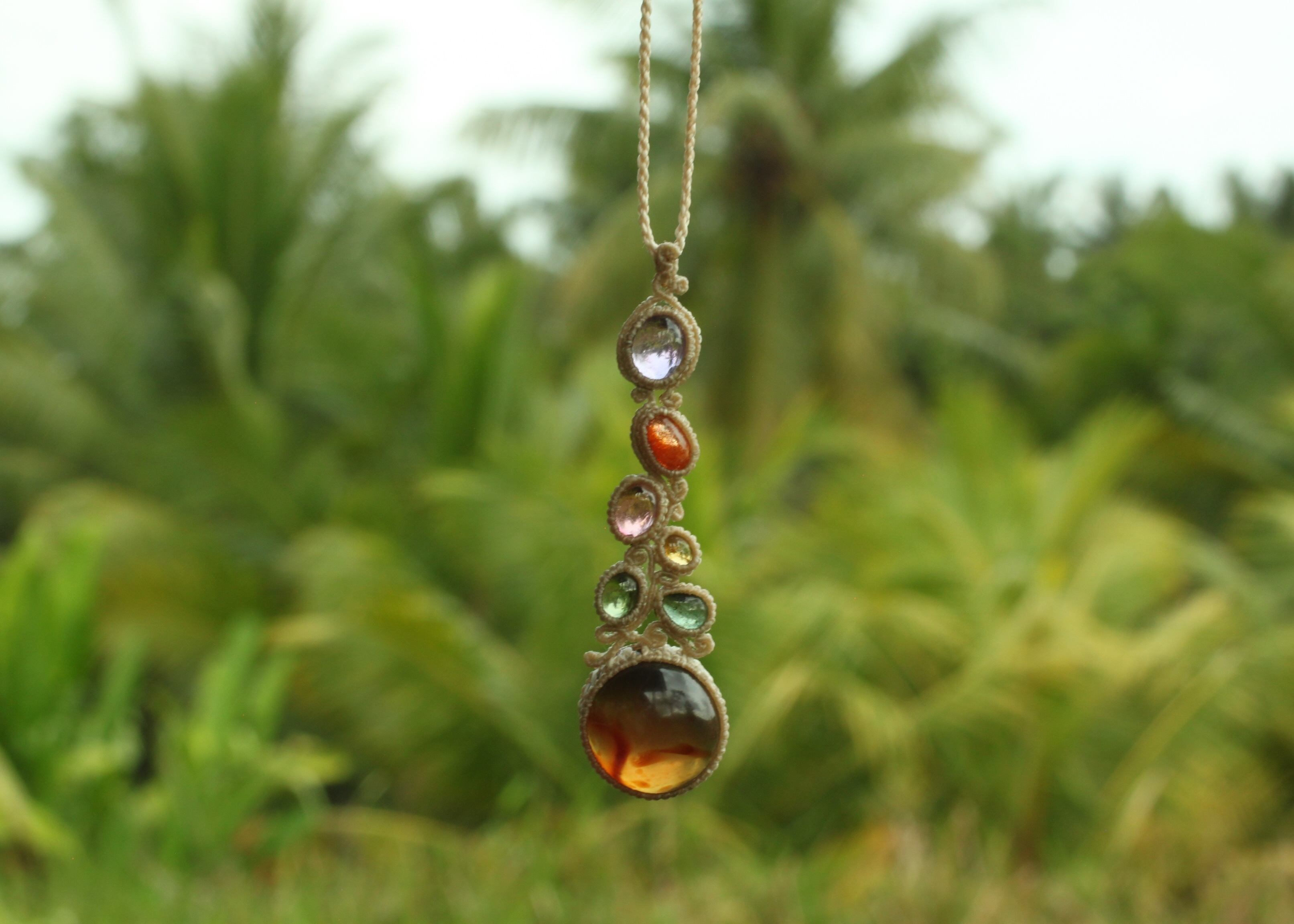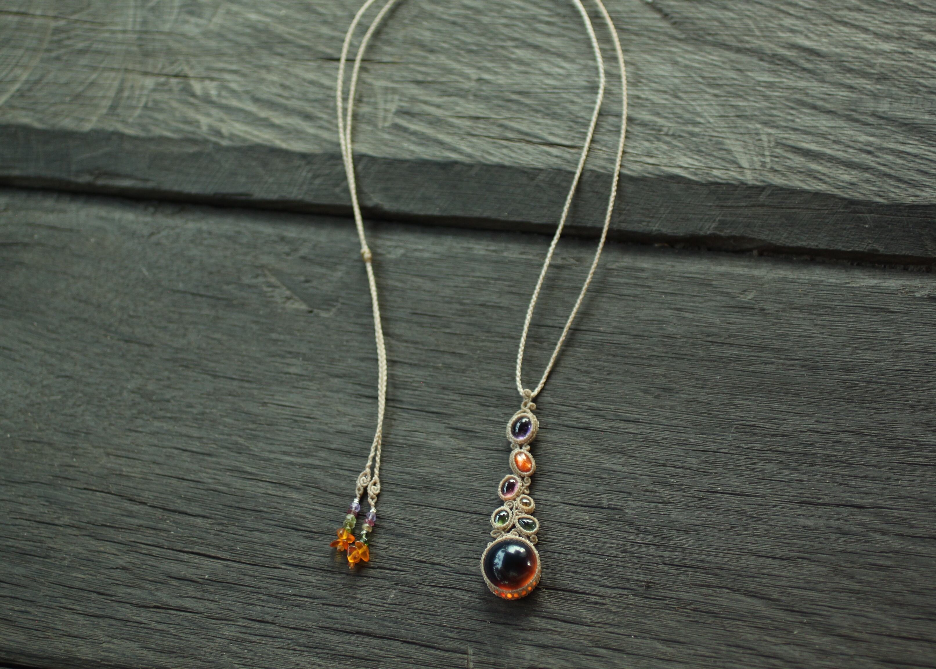 ※ アンバーを包むマクラメ編みは、初めて試んだ編み方なのですが、