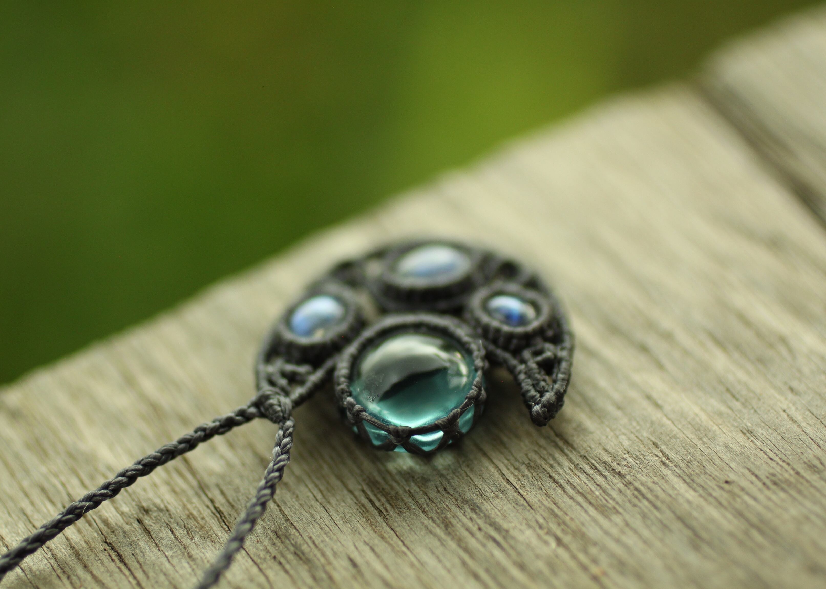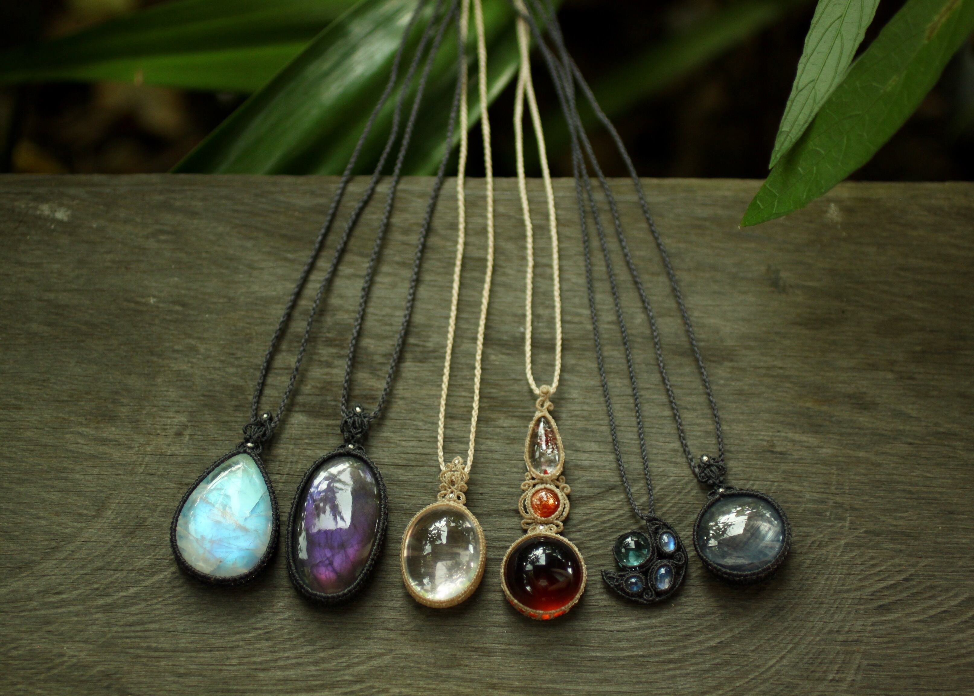 ※ 天然石を包むコードを始めトップ部分に使用したマクラメ編みコードは、