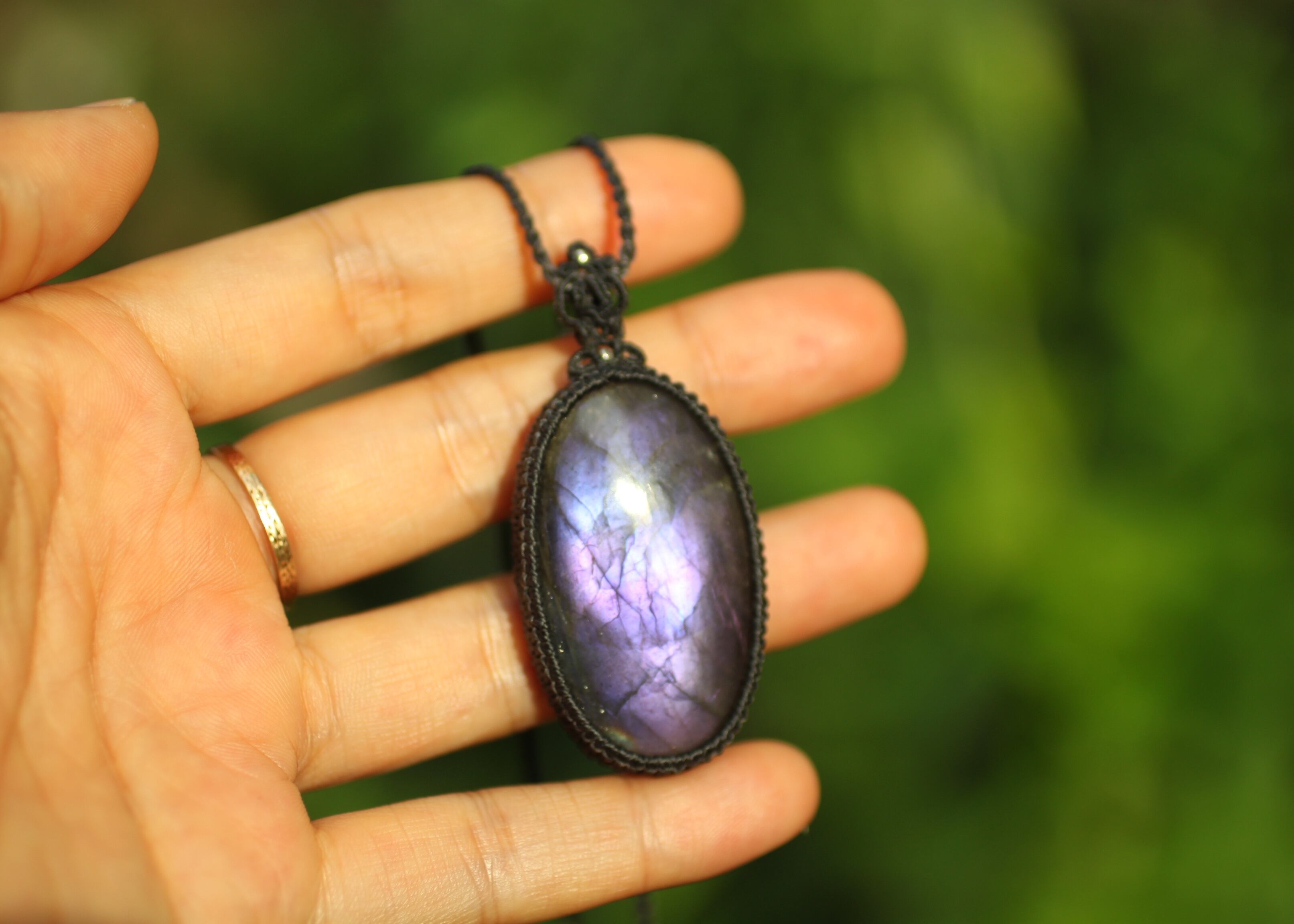 全面に艶やかな紫のシラーを放つラブラドライト。