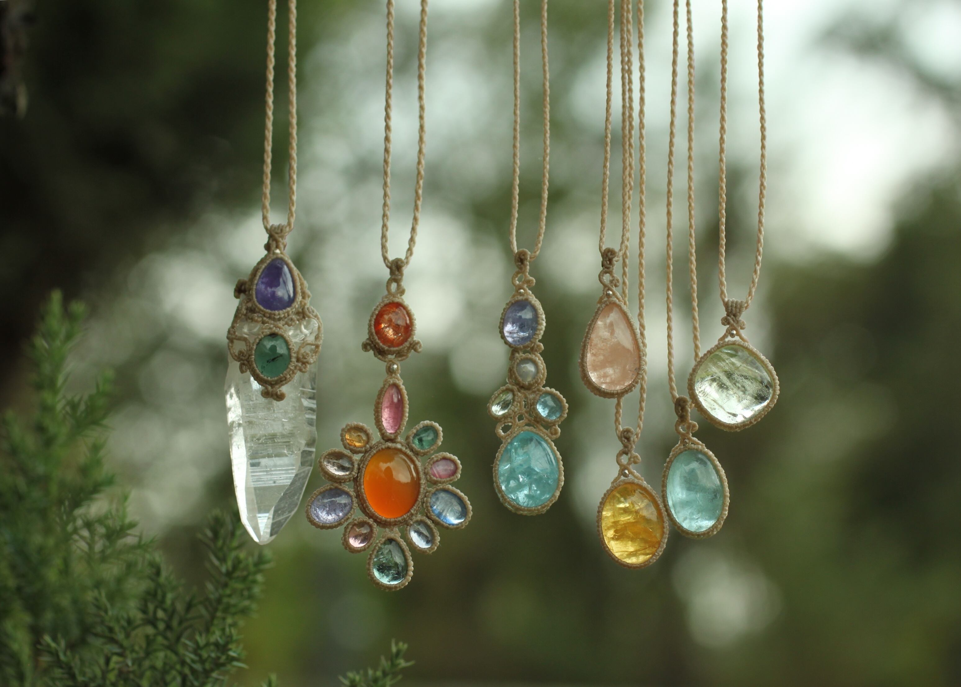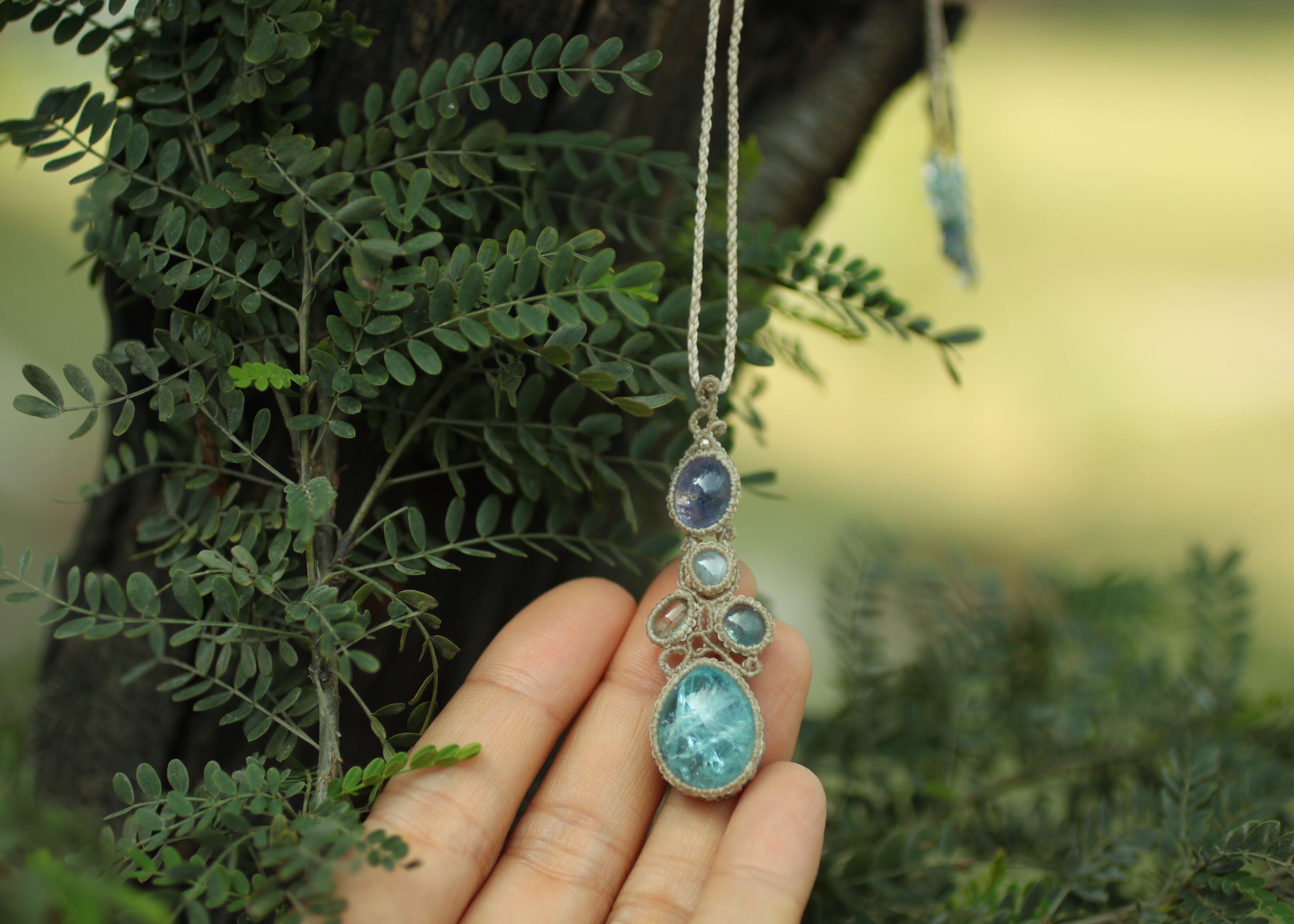 ※ 天然石を包むコードを始めトップ部分に使用したマクラメ編みコードは、